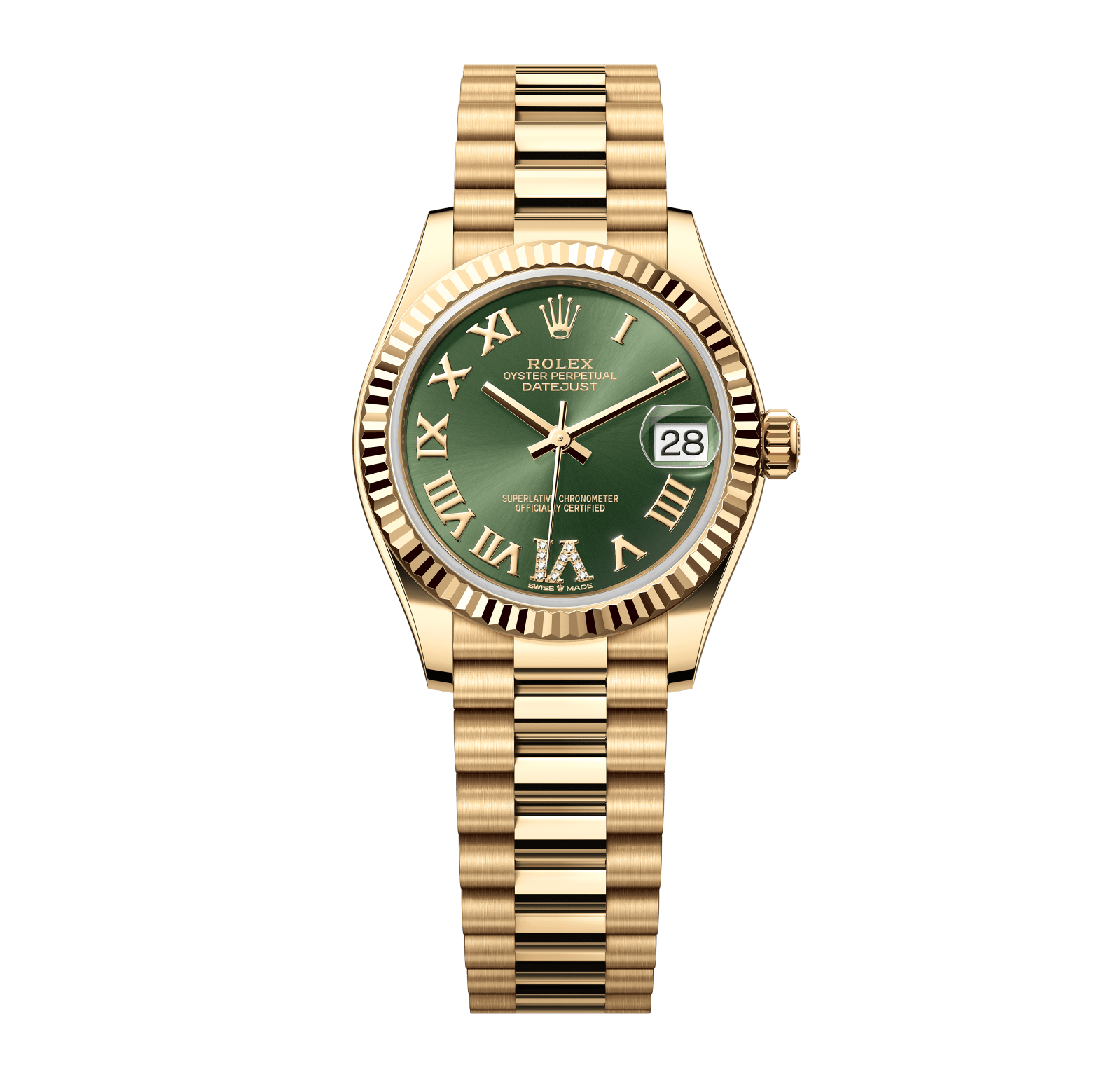 Rolex Datejust – 31 mm – זהב צהוב רצועת ג'ובילי באזל משוהנן לוח רומי ירוק גימור קצה