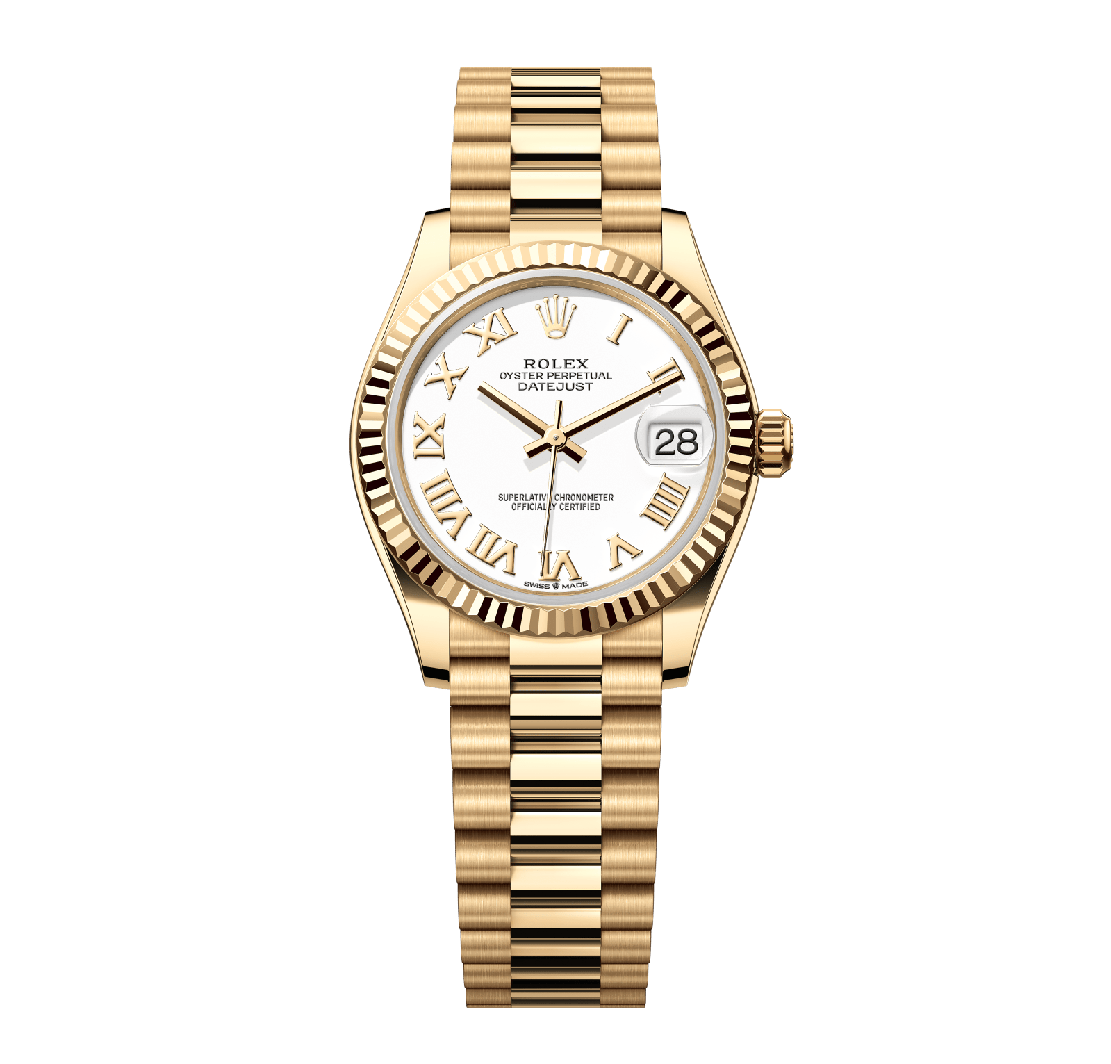 Rolex Datejust – 31 mm – זהב צהוב רצועת ג'ובילי באזל משונן לוח רומי לבן גימור קצה