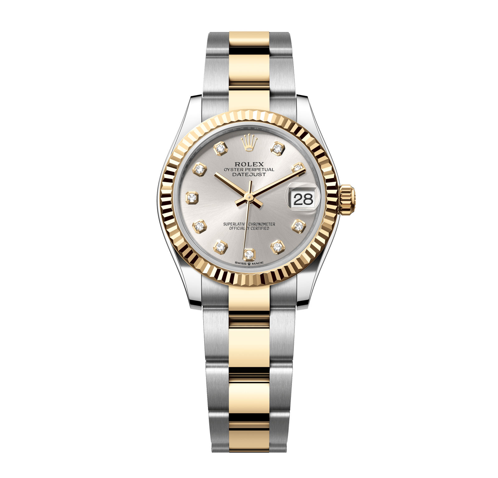 Rolex Datejust – 31 mm – טו טון זהב צהוב רצועת אויסטר באזל משונן לוח סילבר יהלומים גימור שוויצרי