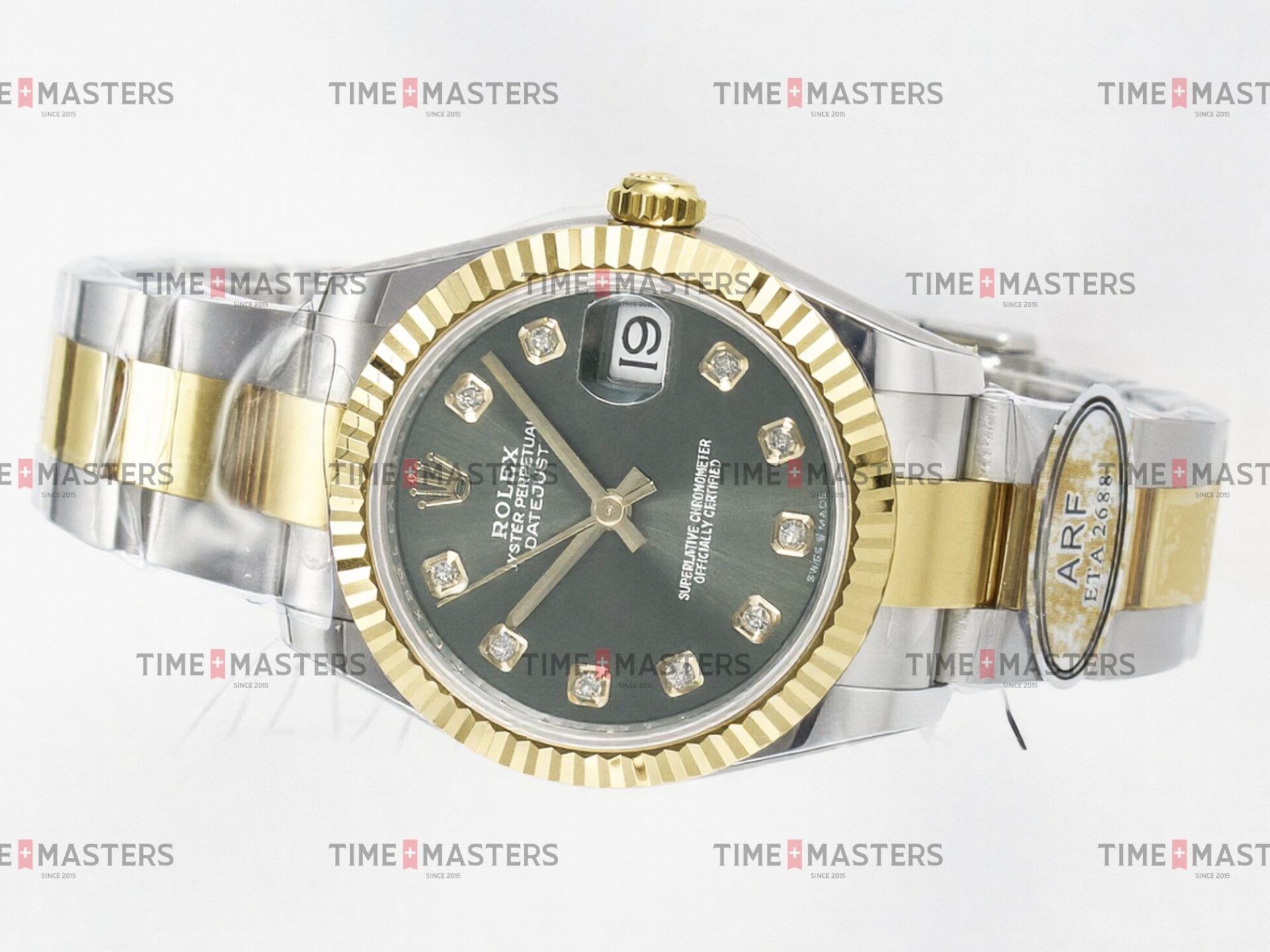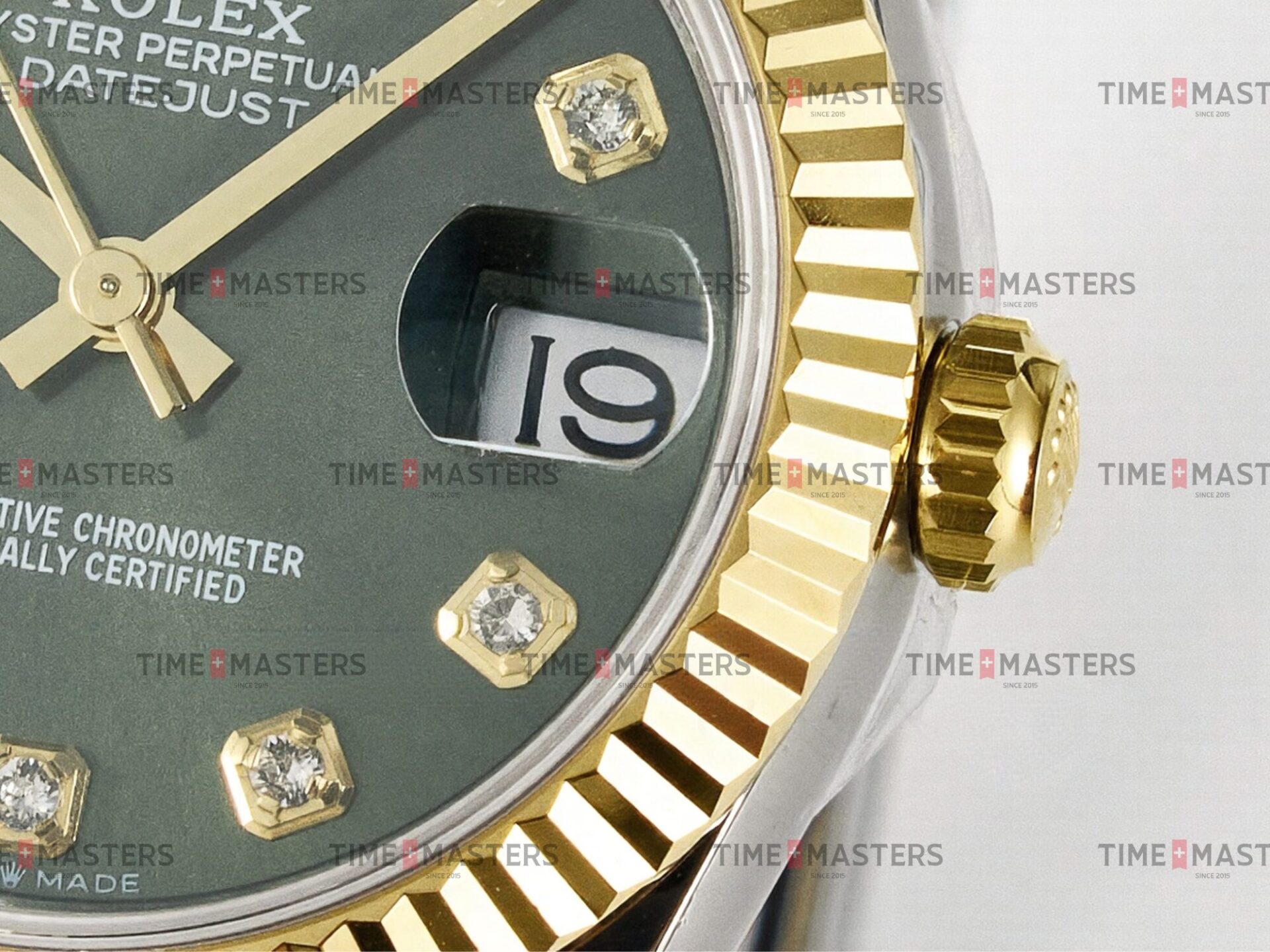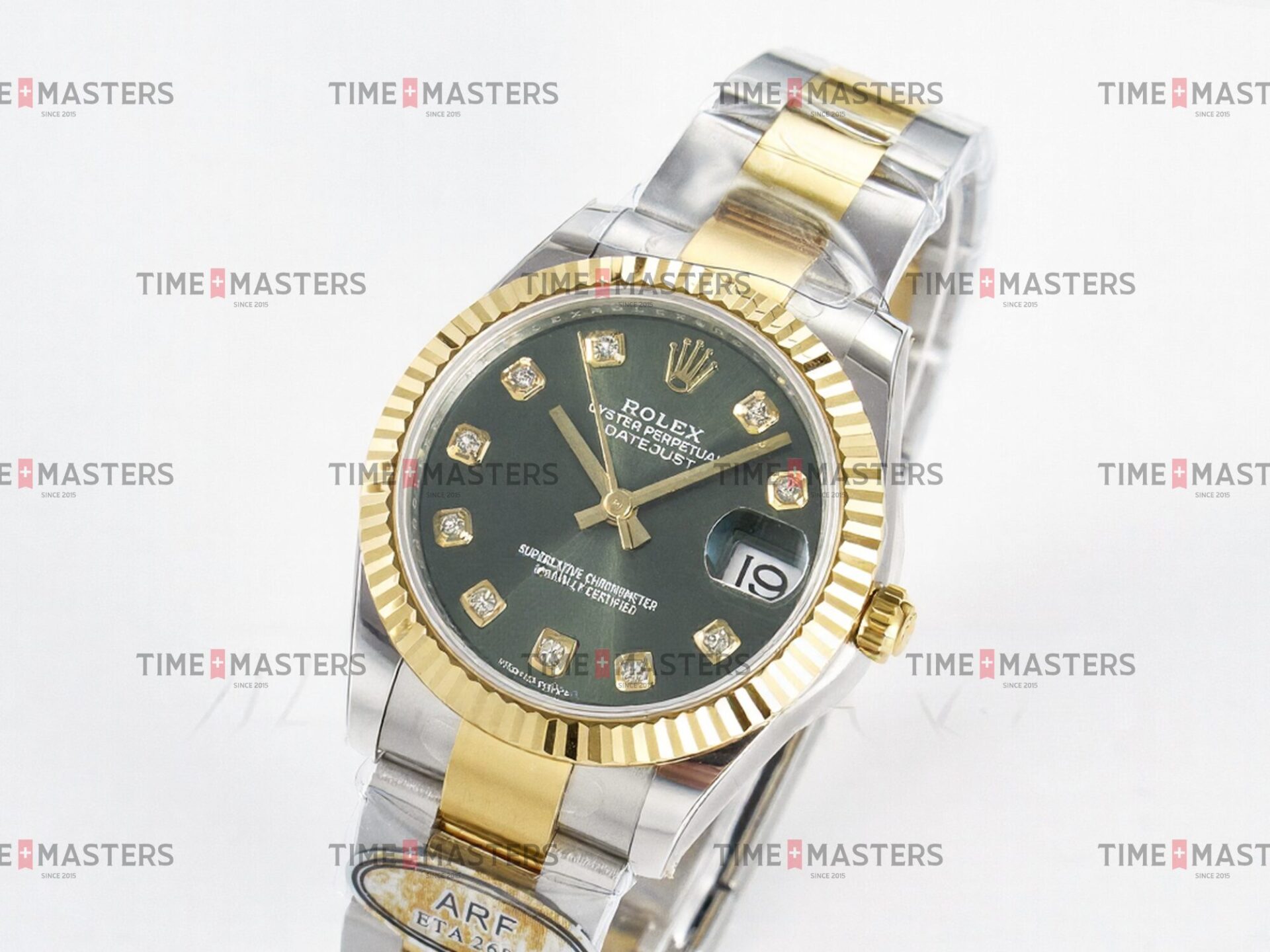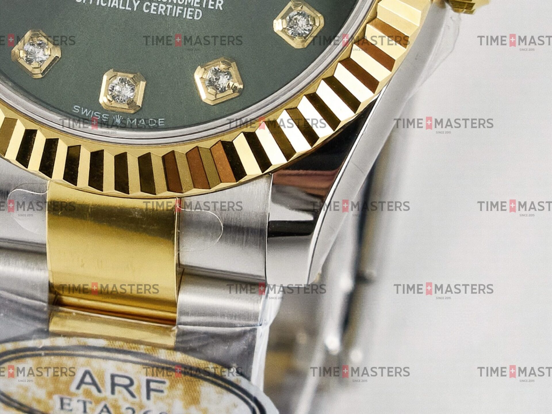 Rolex Datejust – 31 mm – טו טון זהב צהוב רצועת אויסטר באזל משונן לוח ירוק יהלומים גימור קצה