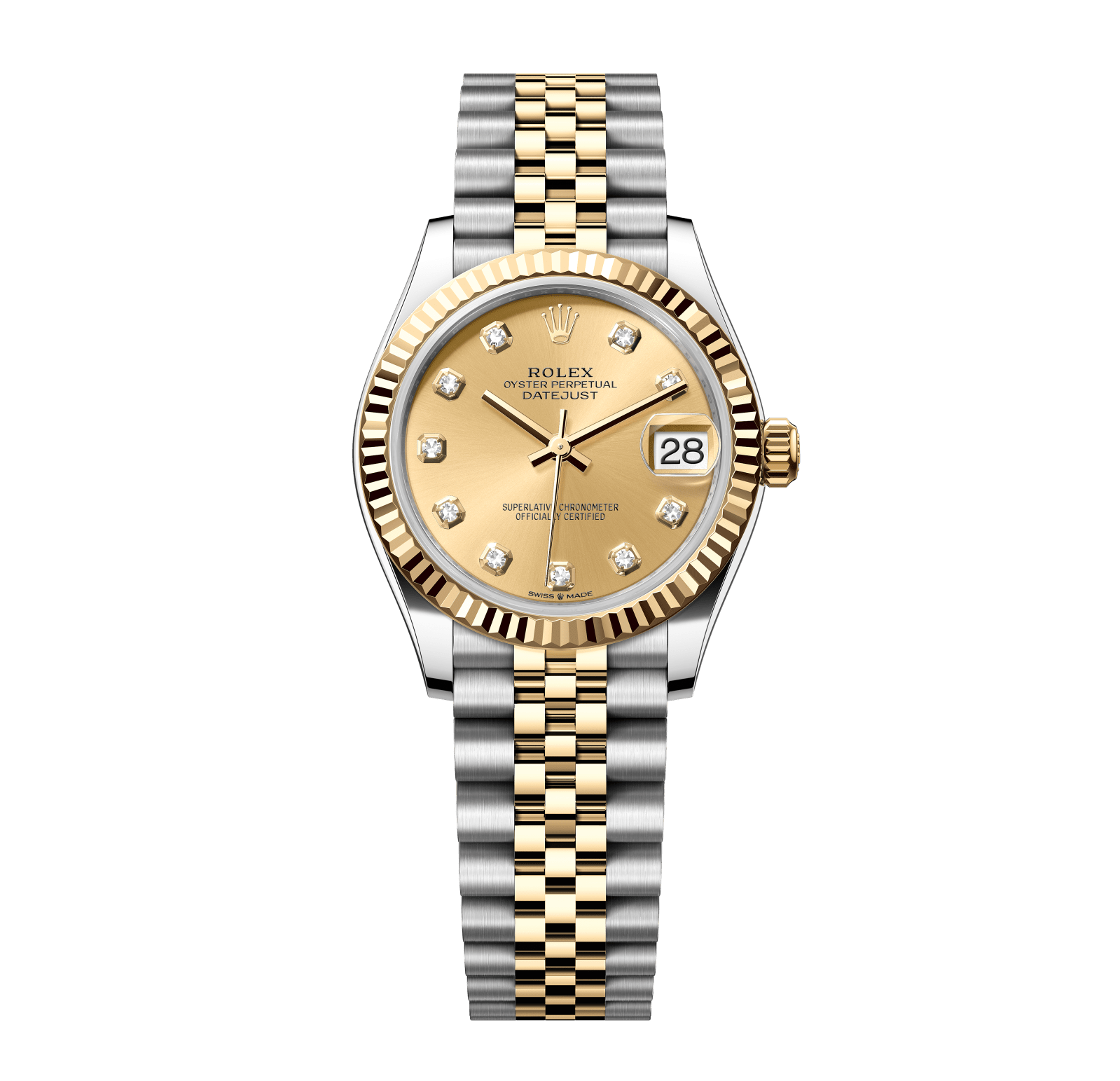 Rolex Datejust – 31 mm – טו טון זהב צהוב רצועת ג'ובילי באזל משונן לוח זהב יהלומים גימור שוויצרי