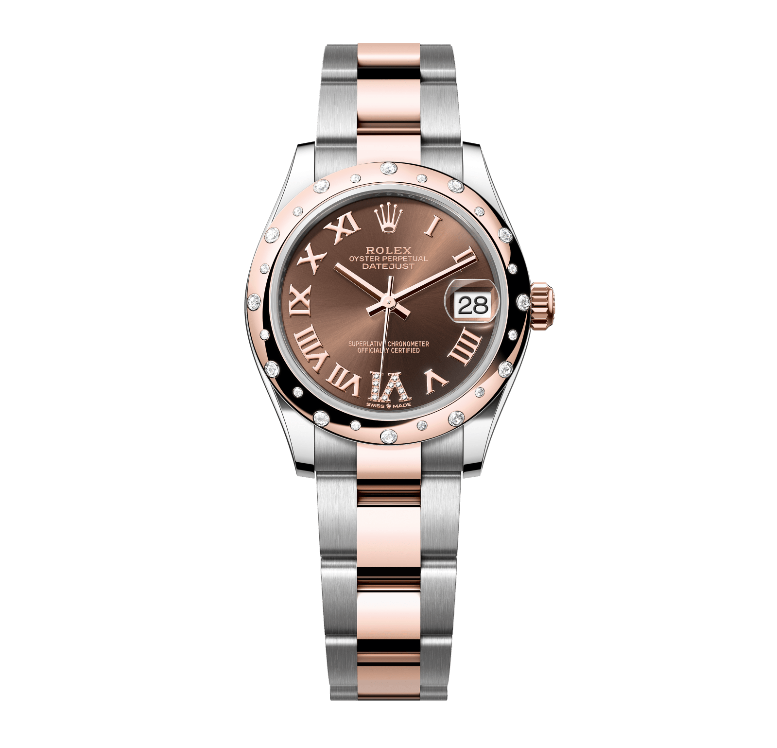 Rolex Datejust – 31 mm – טו טון רוז גולד רצועת אויסטר באזל חלק לוח רומי שוקולד גימור קצה