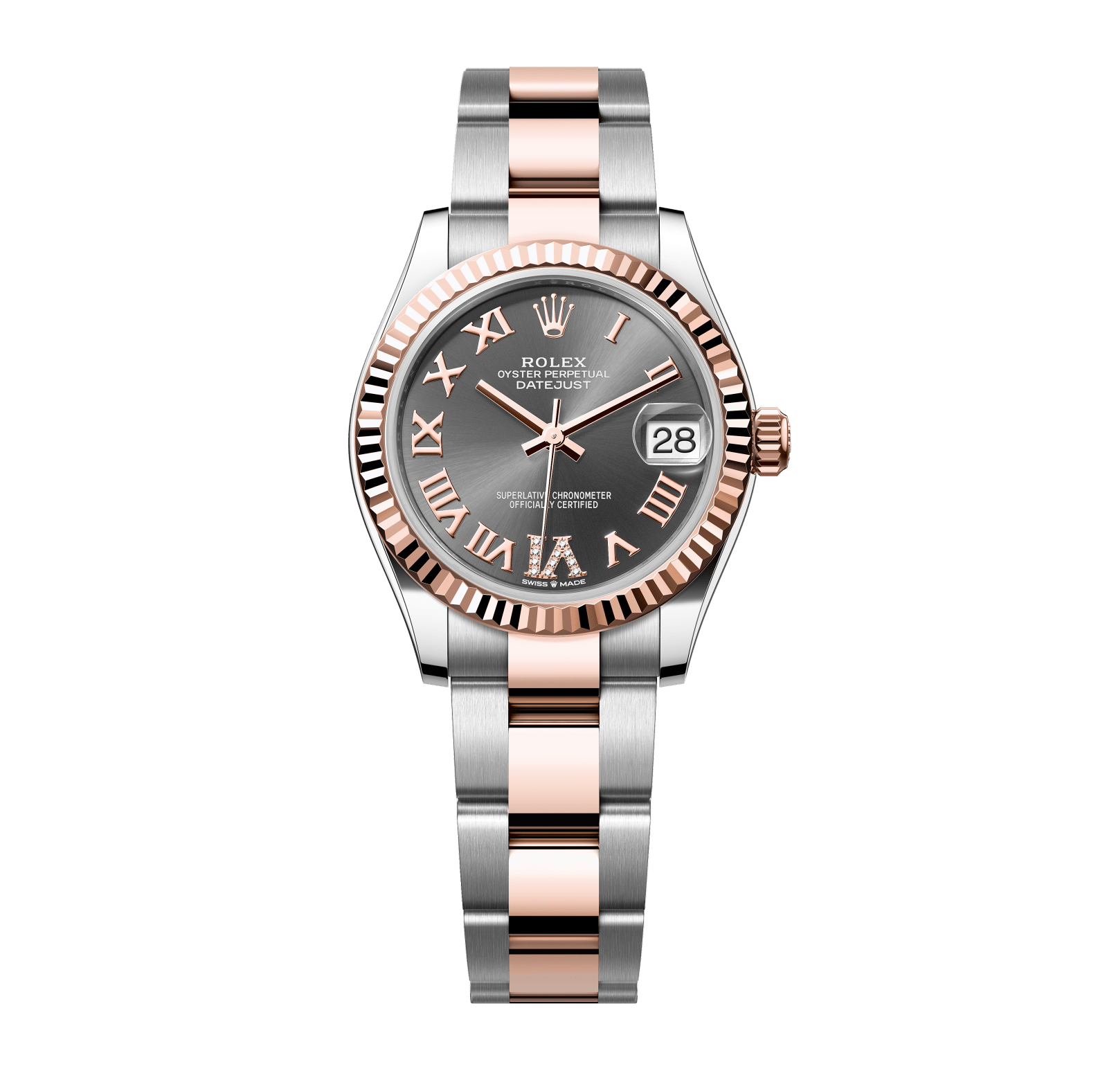 Rolex Datejust – 31 mm – טו טון רוז גולד רצועת אויסטר באזל משונן לוח רומי אפור גימור שוויצרי
