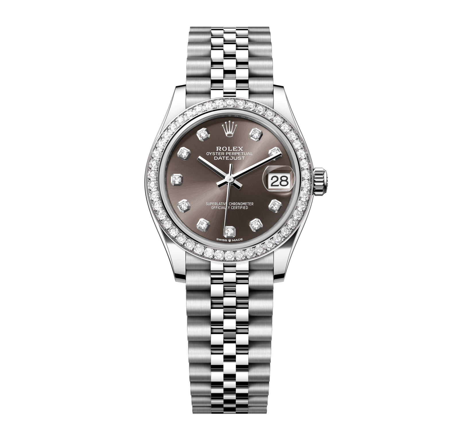 Rolex Datejust – 31 mm – פלדה רצועת ג'ובילי באזל יהלומים לוח אפור יהלומים גימור שוויצרי