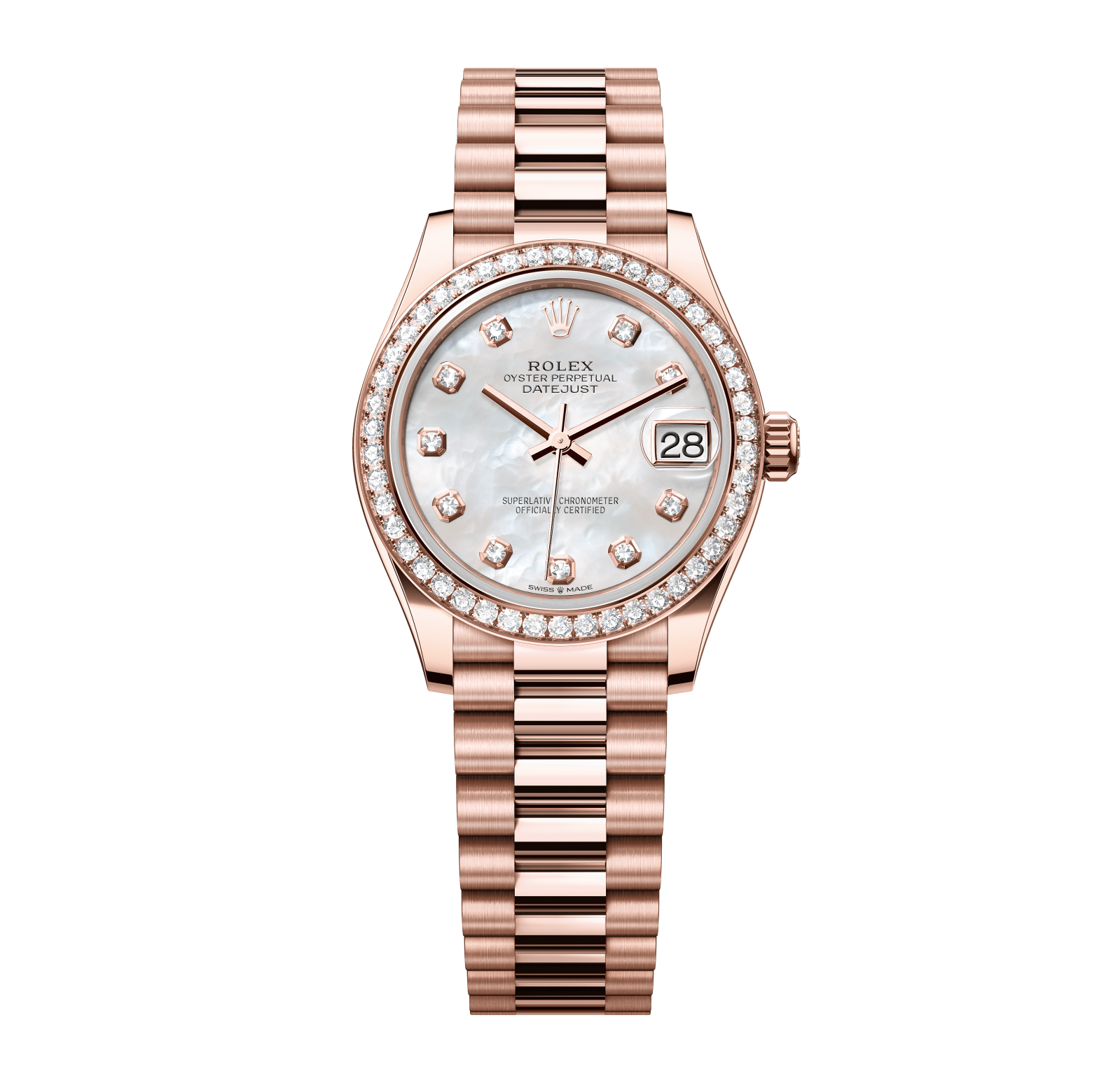 Rolex Datejust – 31 mm – רוז גולד רצועת ג'ובילי באזל יהלומים לוח לבן יהלומים גימור קצה