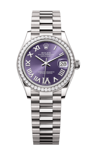 Rolex Datejust – 31 mm – פלדה רצועת אויסטר באזל יהלומים לוח רומי סגול