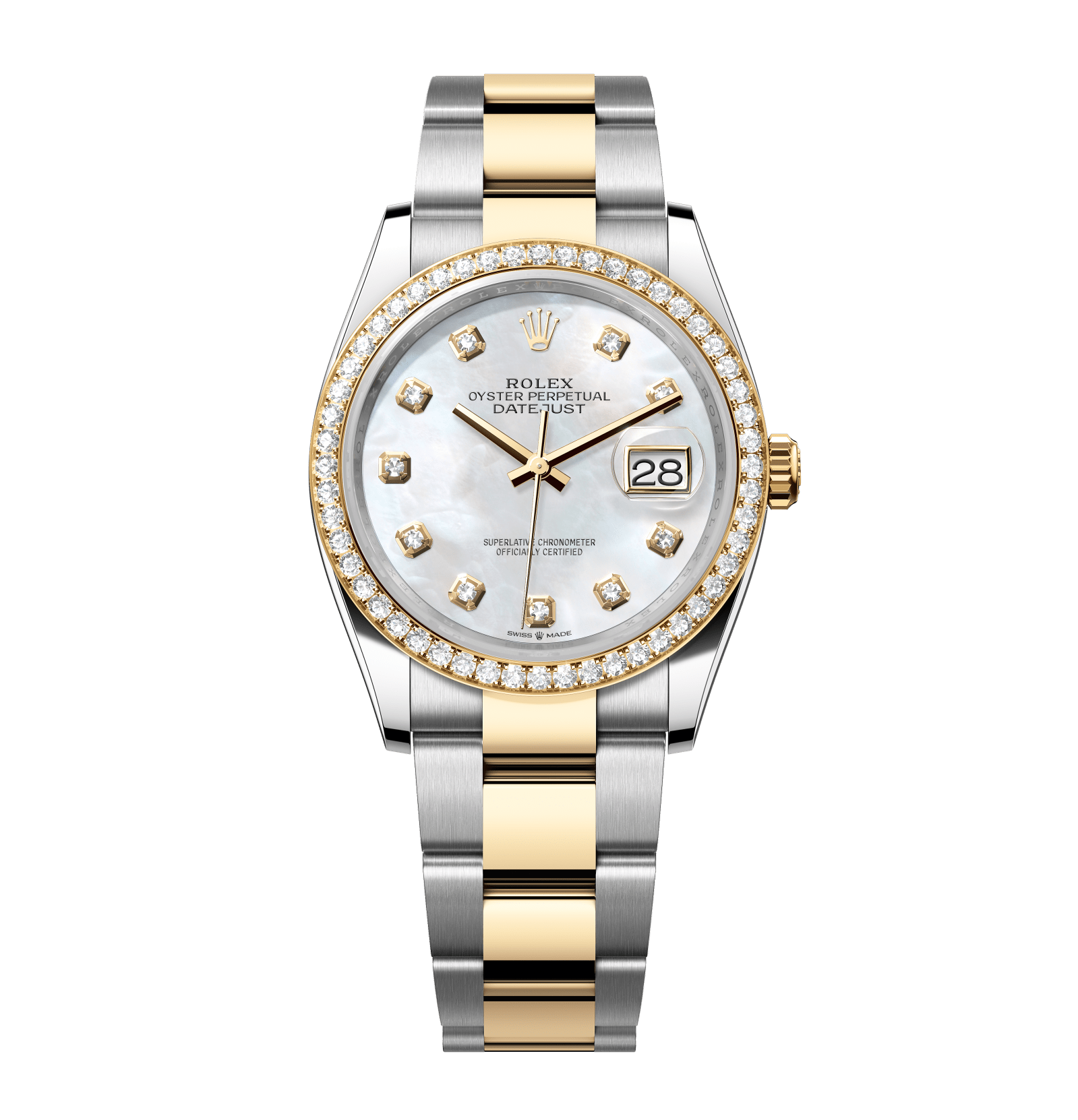 Rolex Datejust – 36 mm – טו טון זהב צהוב רצועת אויסטר באזל יהלומים לוח מטאור לבן יהלומים גימור שוויצרי