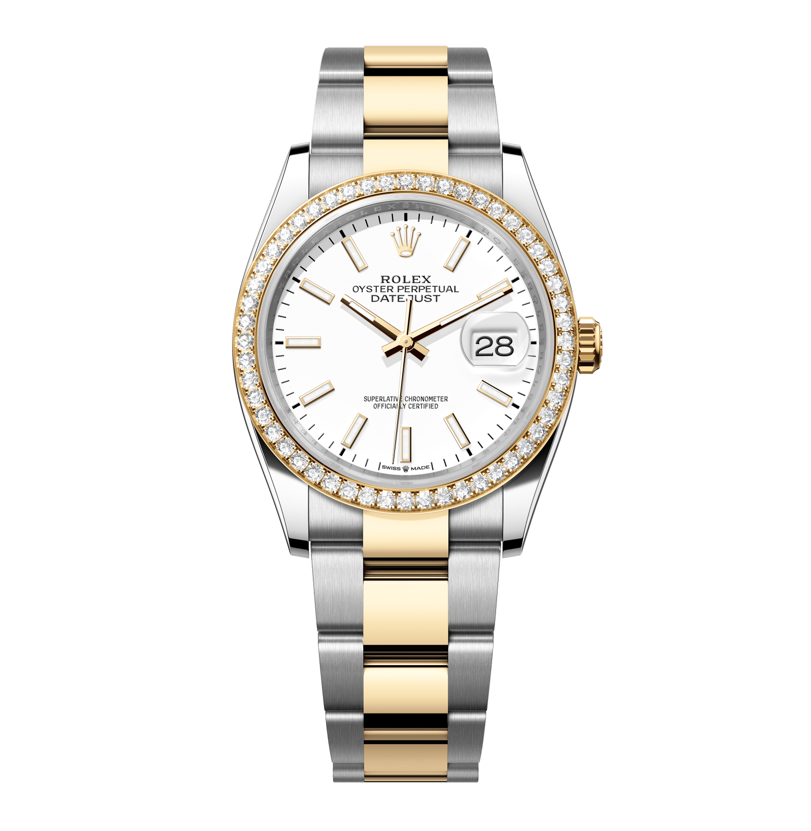 Rolex Datejust – 36 mm – טו טון זהב צהוב רצועת אויסטר באזל יהלומים לוח לבן גימור שוויצרי