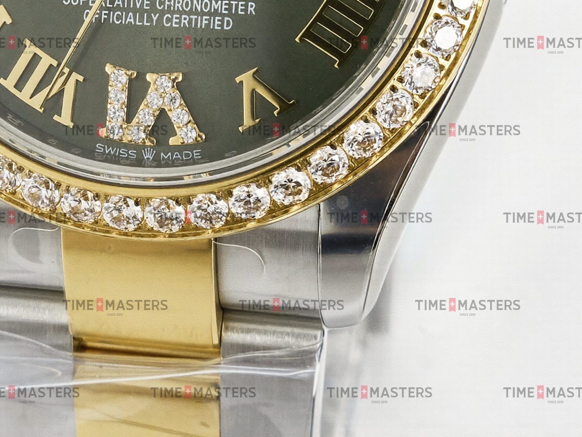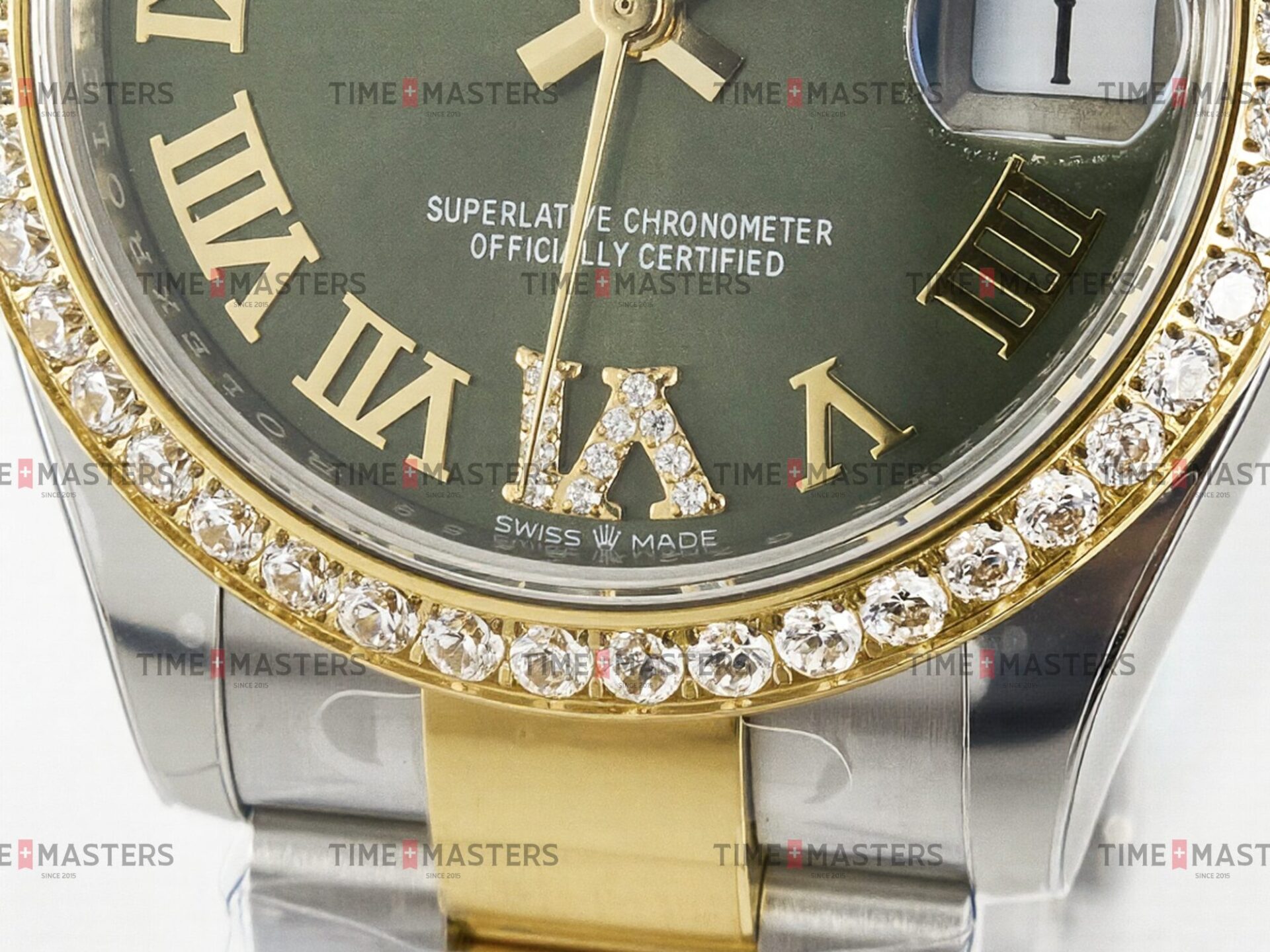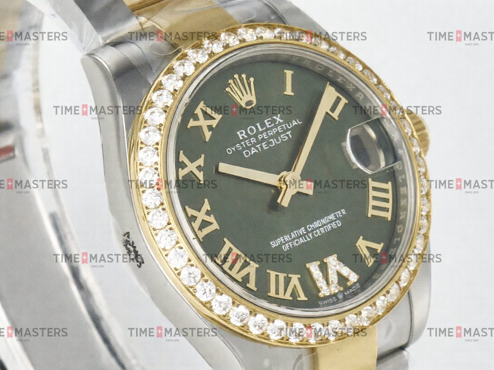 Rolex Datejust – 36 mm – טו טון זהב צהוב רצועת אויסטר באזל יהלומים לוח רומי ירוק גימור קצה