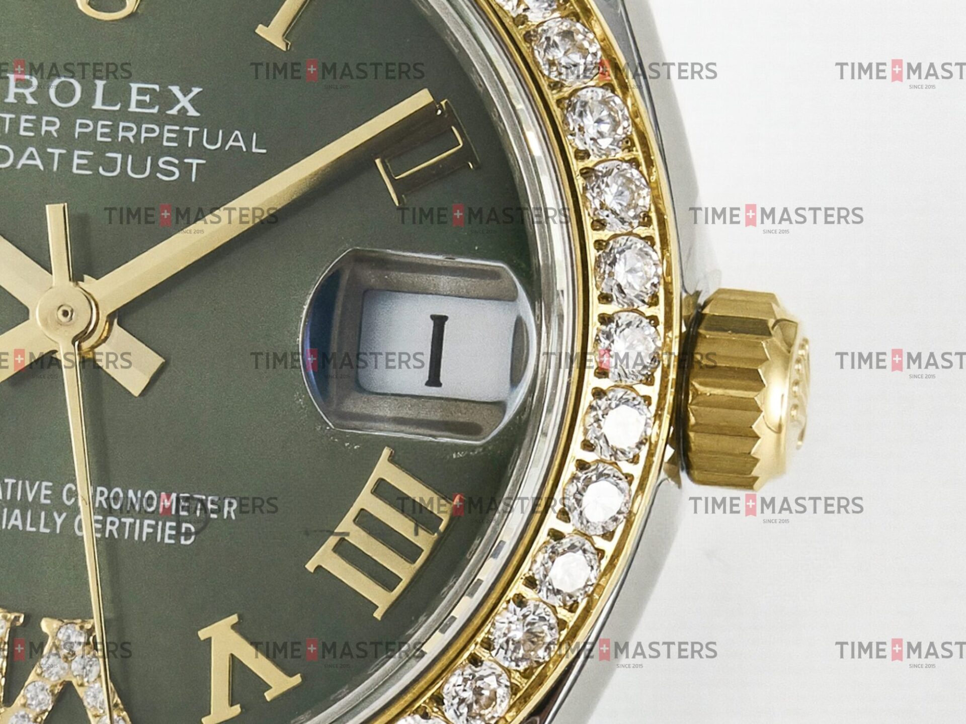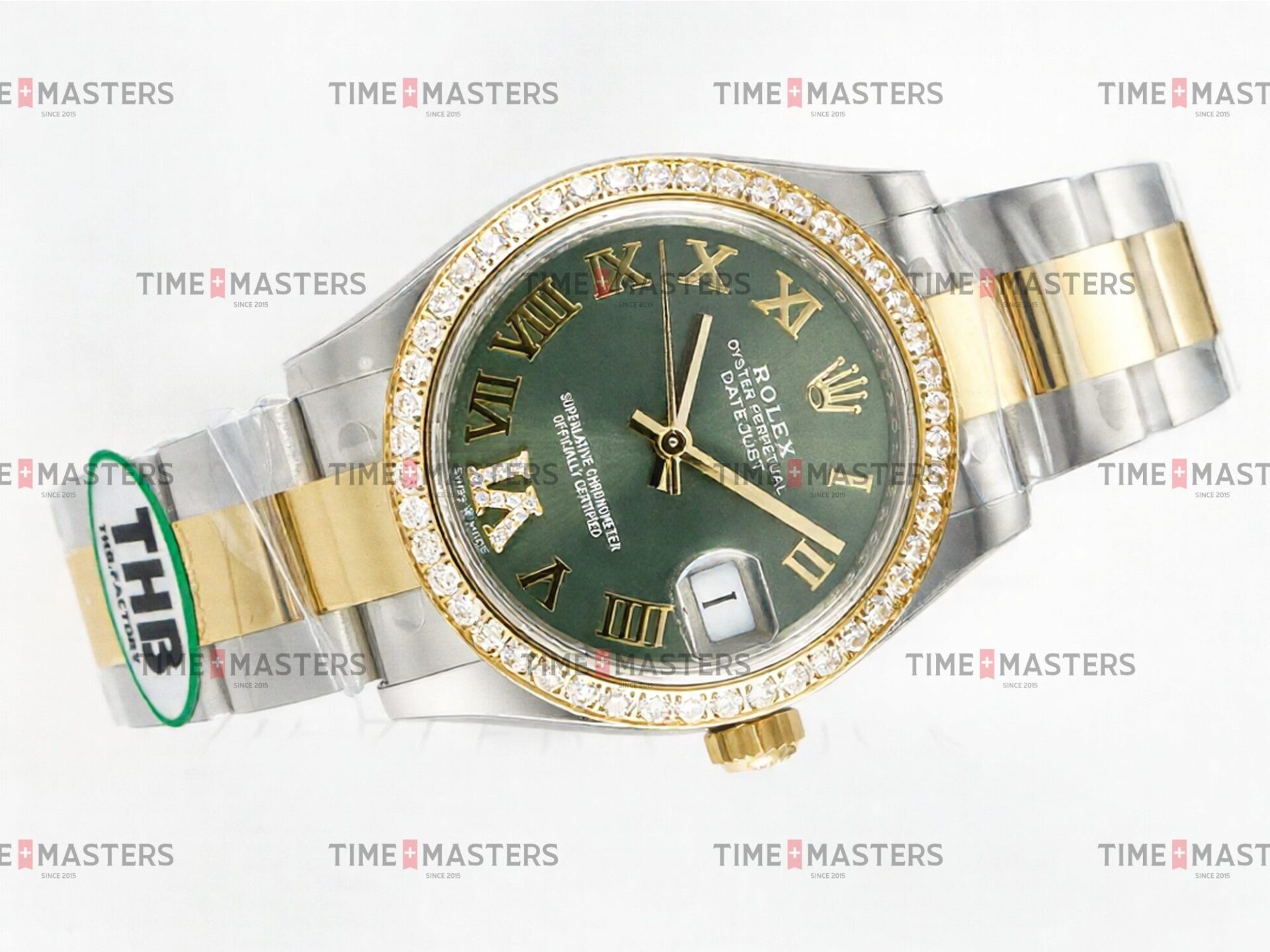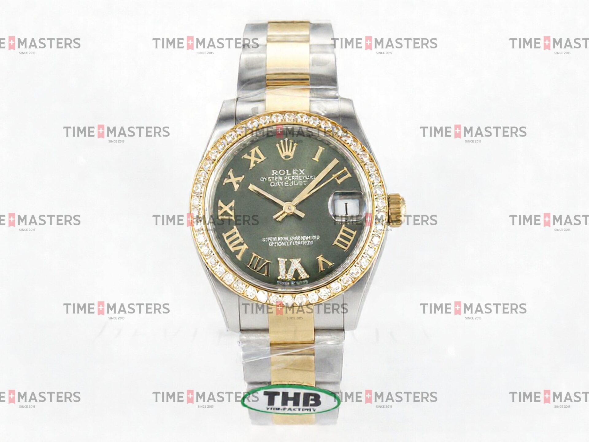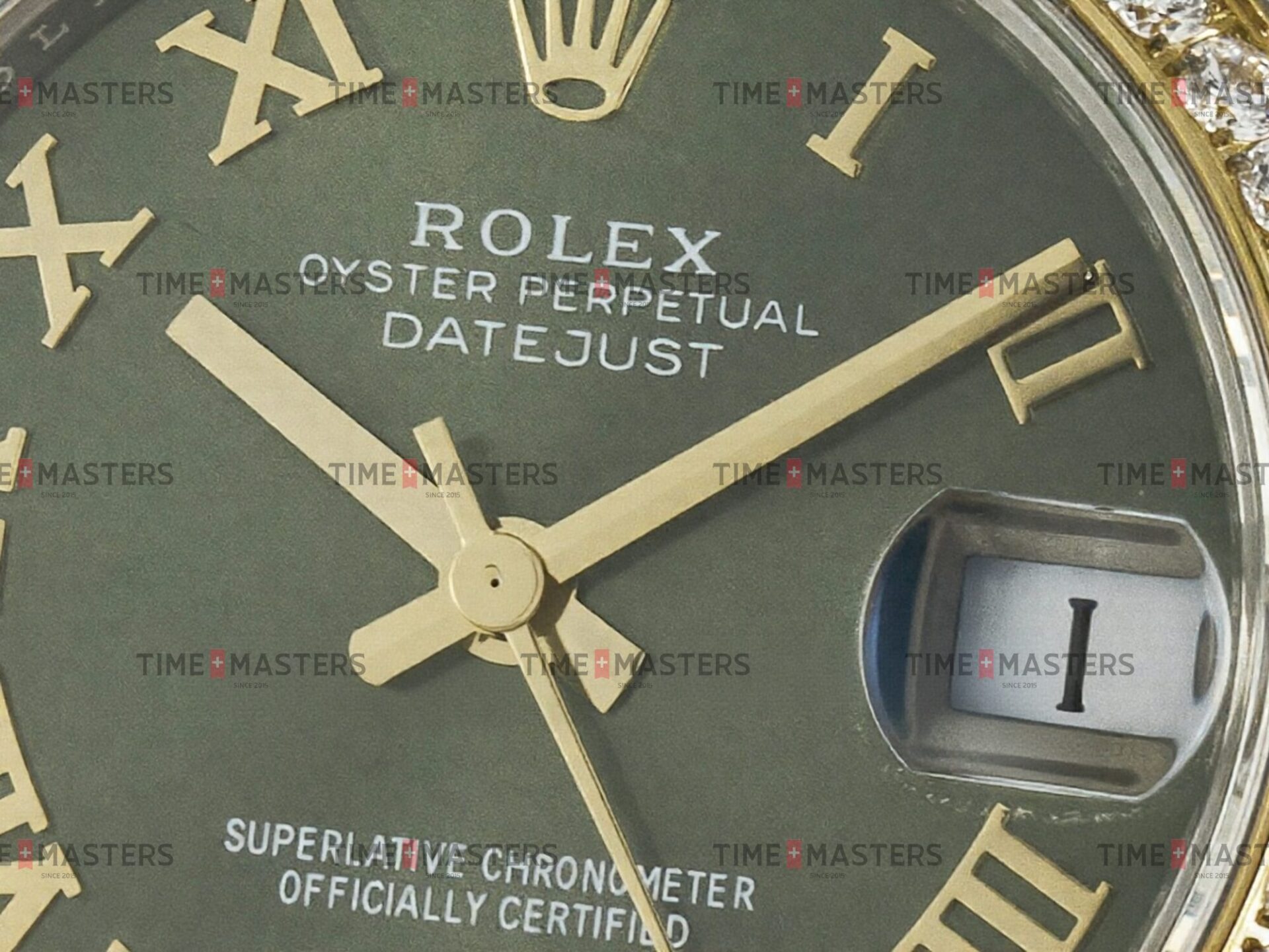 Rolex Datejust – 36 mm – טו טון זהב צהוב רצועת אויסטר באזל יהלומים לוח רומי ירוק גימור קצה