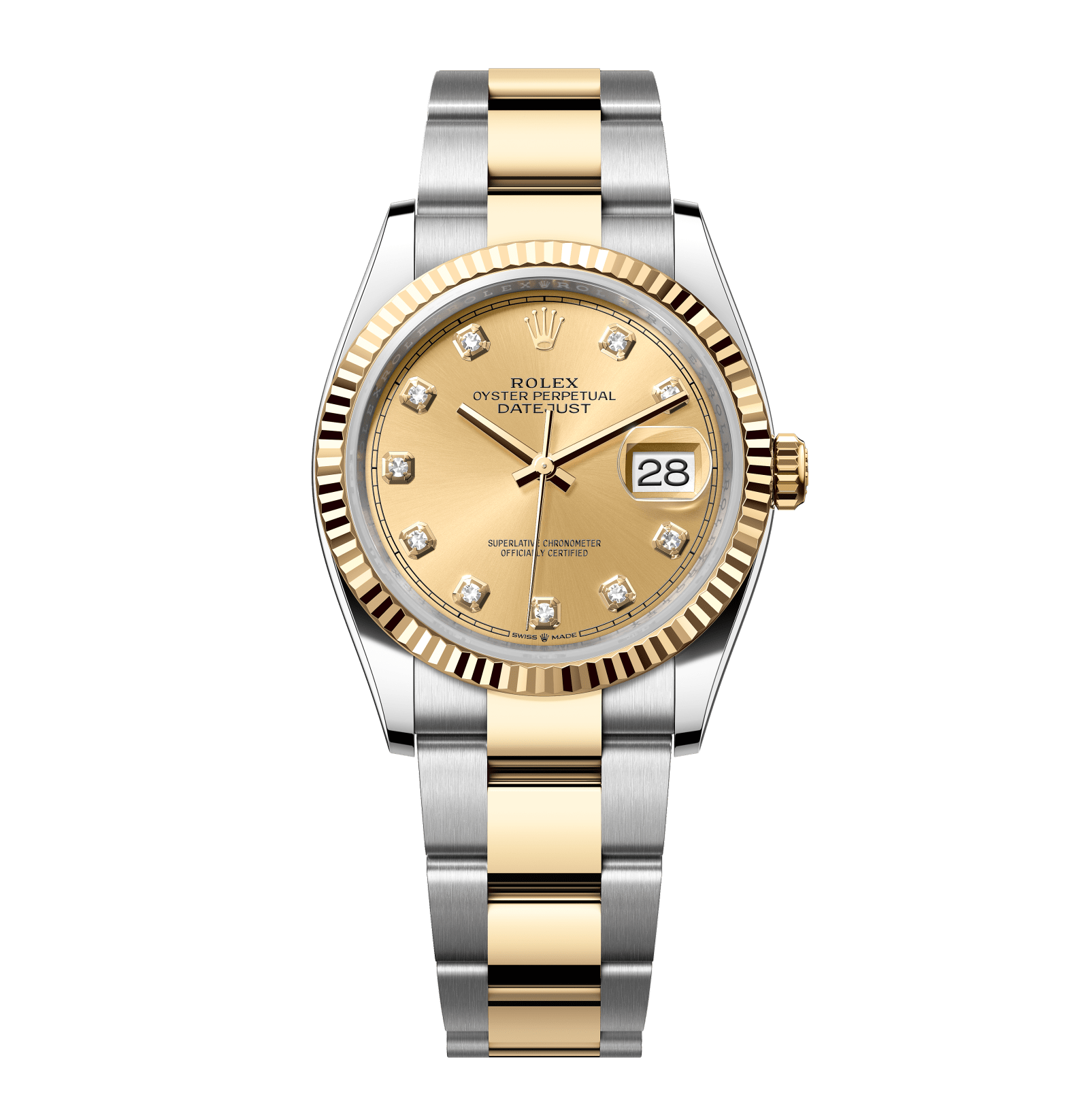 Rolex Datejust – 36 mm – טו טון זהב צהוב רצועת אויסטר באזל משונן לוח זהב יהלומים גימור קצה