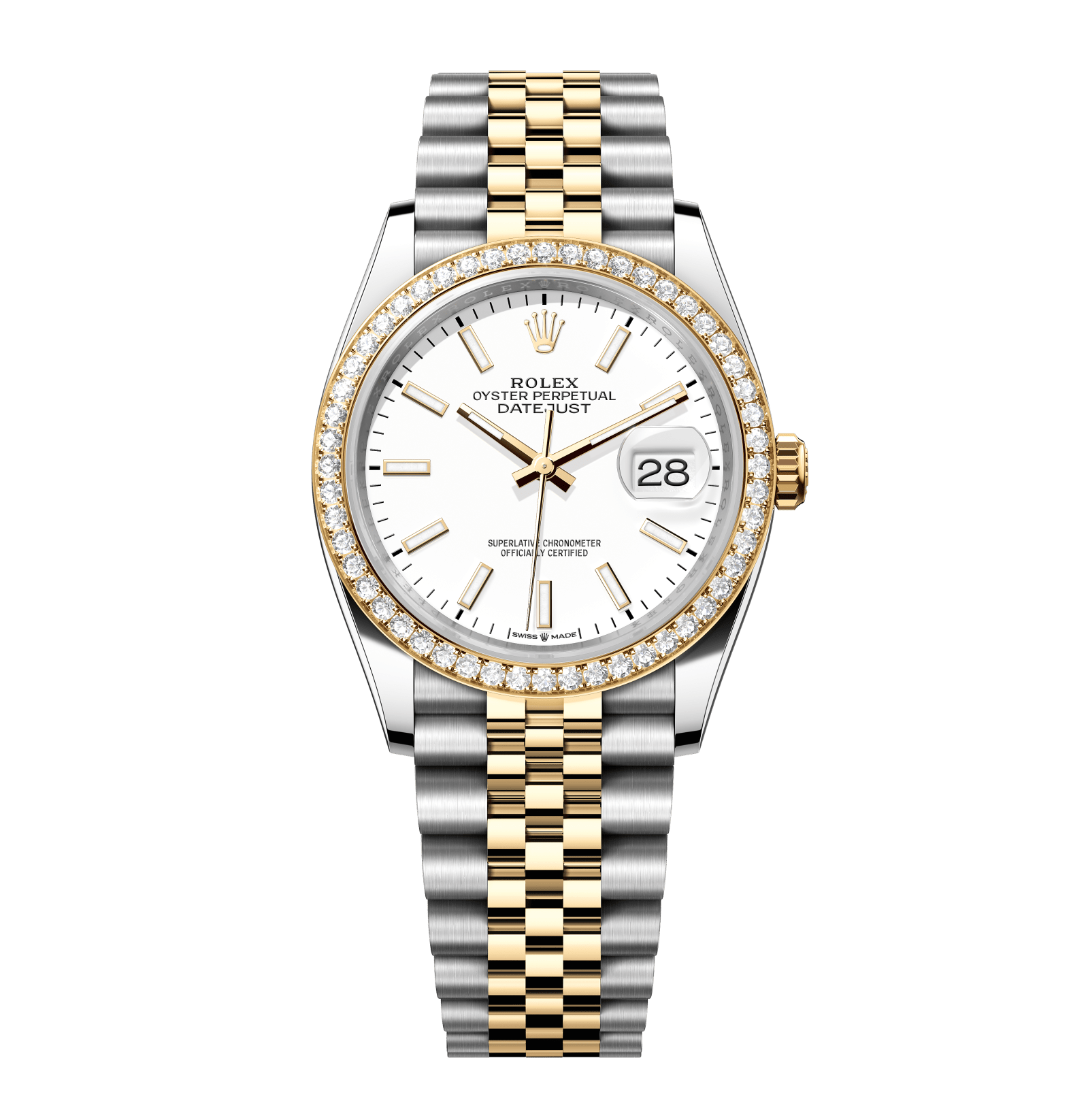 Rolex Datejust – 36 mm – טו טון זהב צהוב רצועת ג'ובילי באזל יהלומים לוח לבן גימור שוויצרי