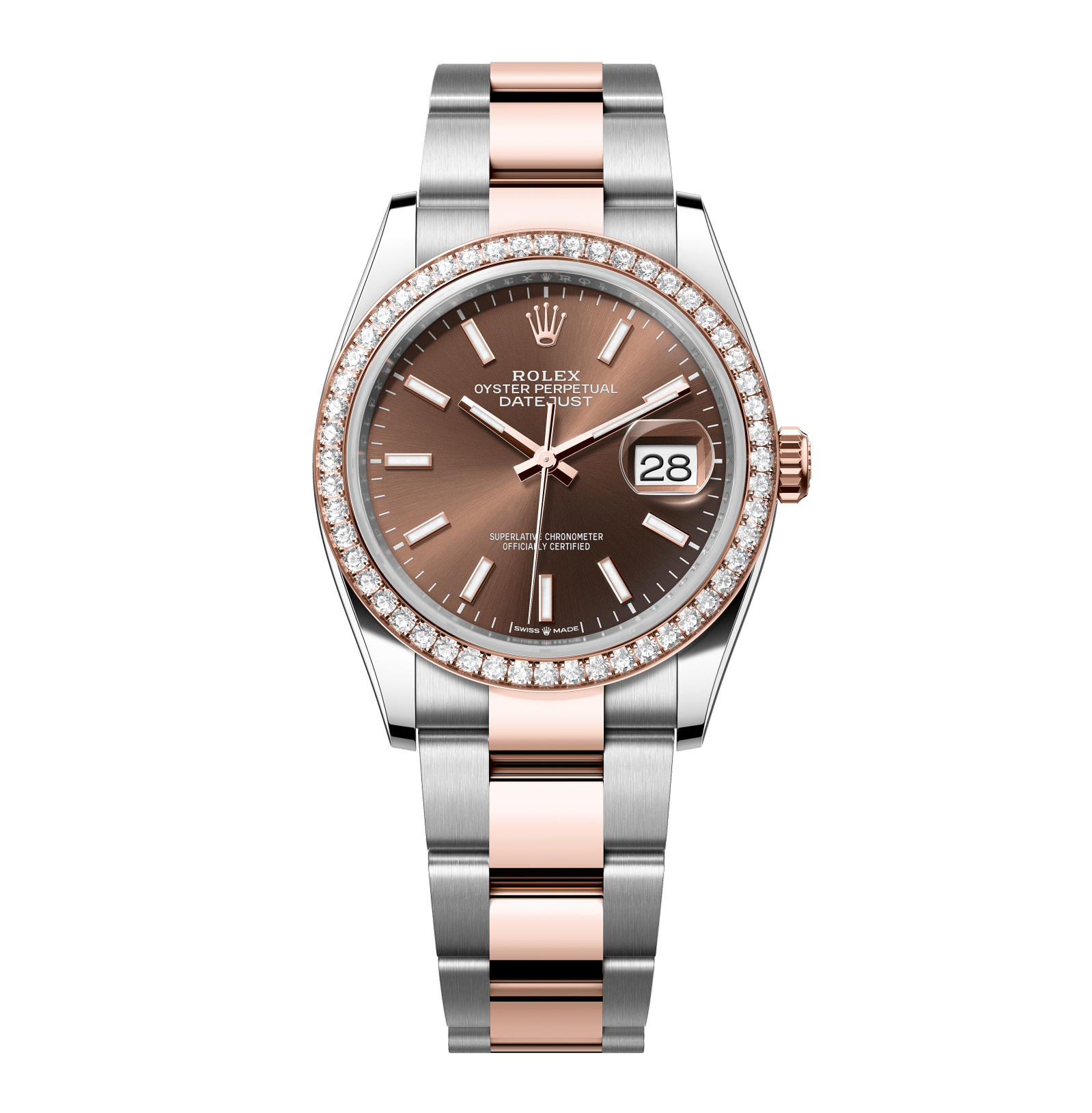Rolex Datejust – 36 mm – טו טון רוז גולד רצועת אויסטר באזל יהלומים לוח שוקולד גימור קצה