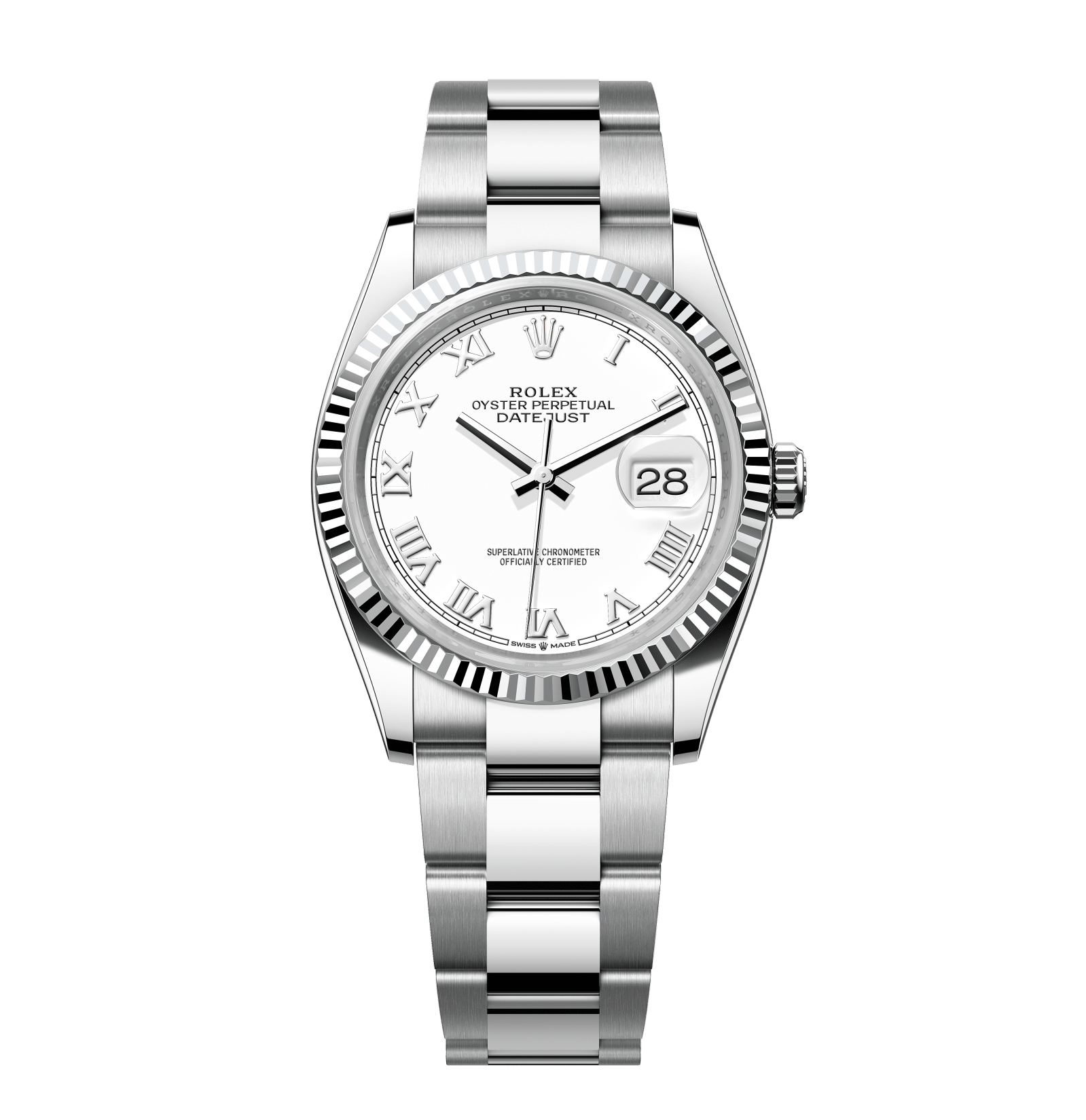Rolex Datejust – 36 mm – פלדה רצועת אויסטר באזל משונן לוח לבן רומי גימור שוויצרי