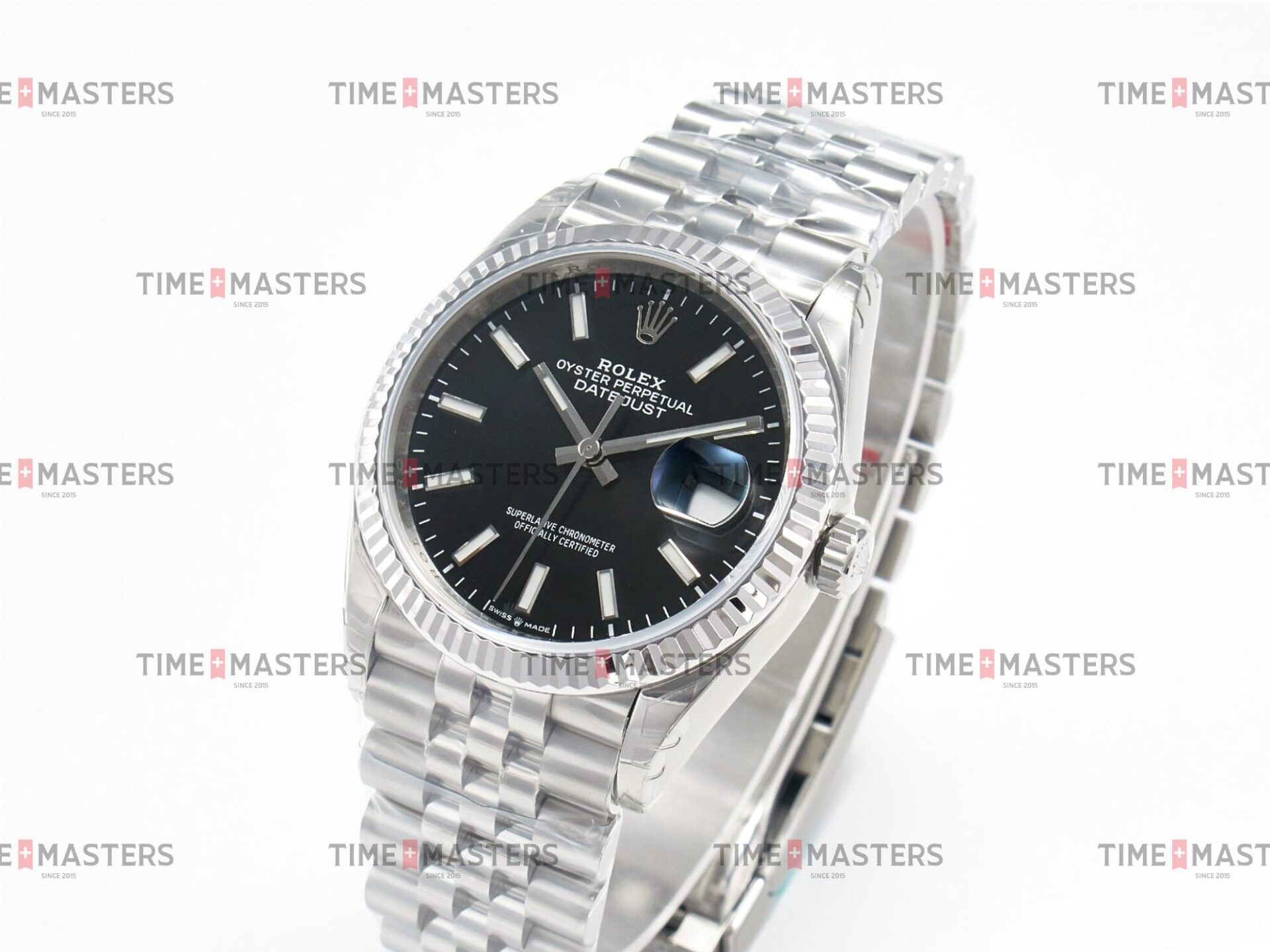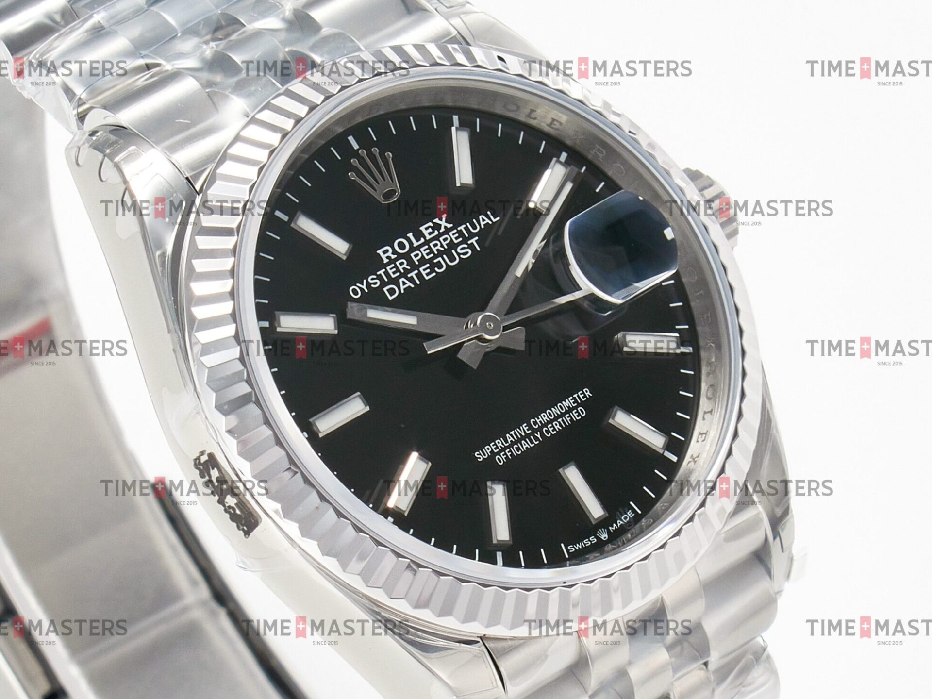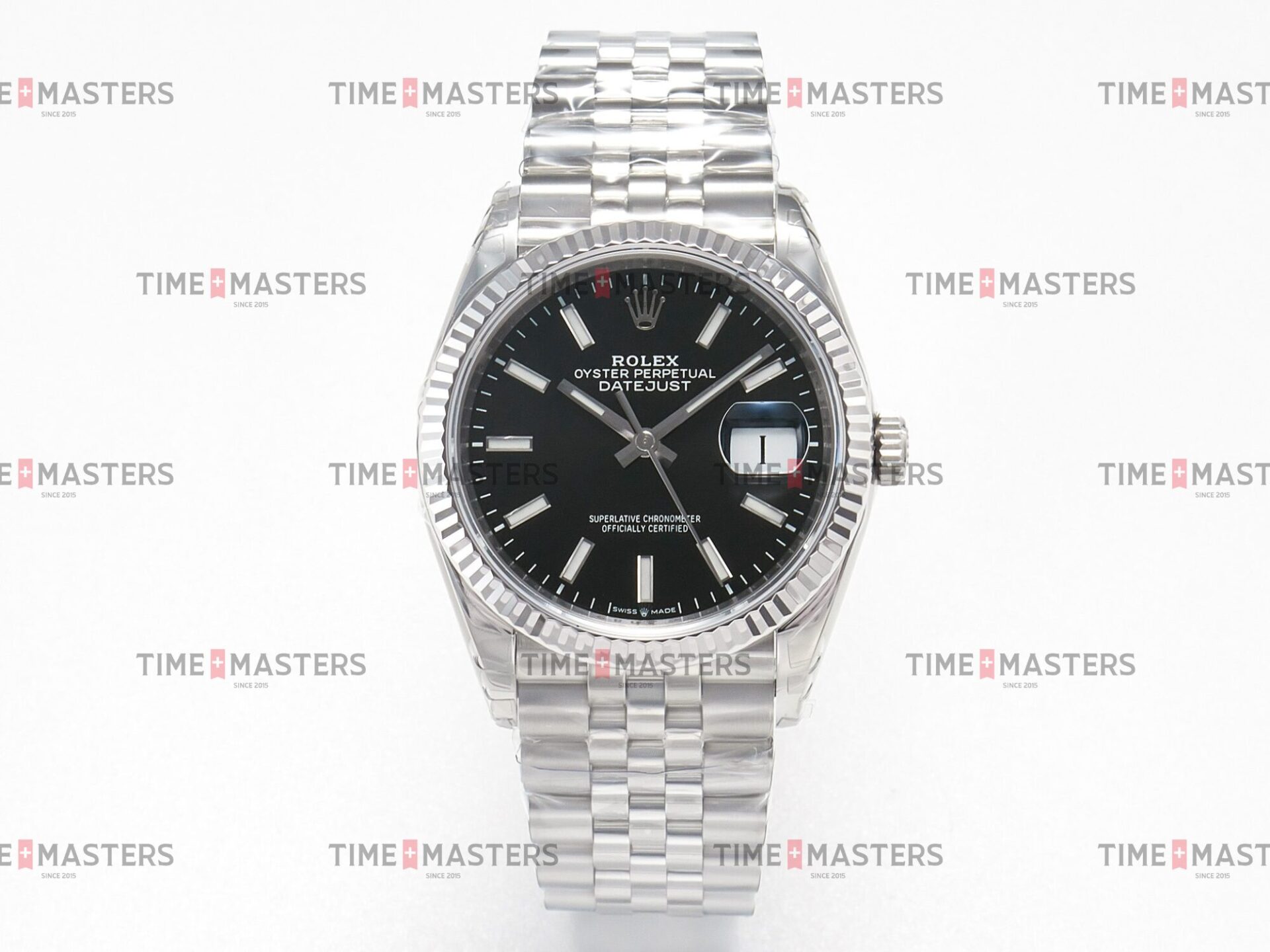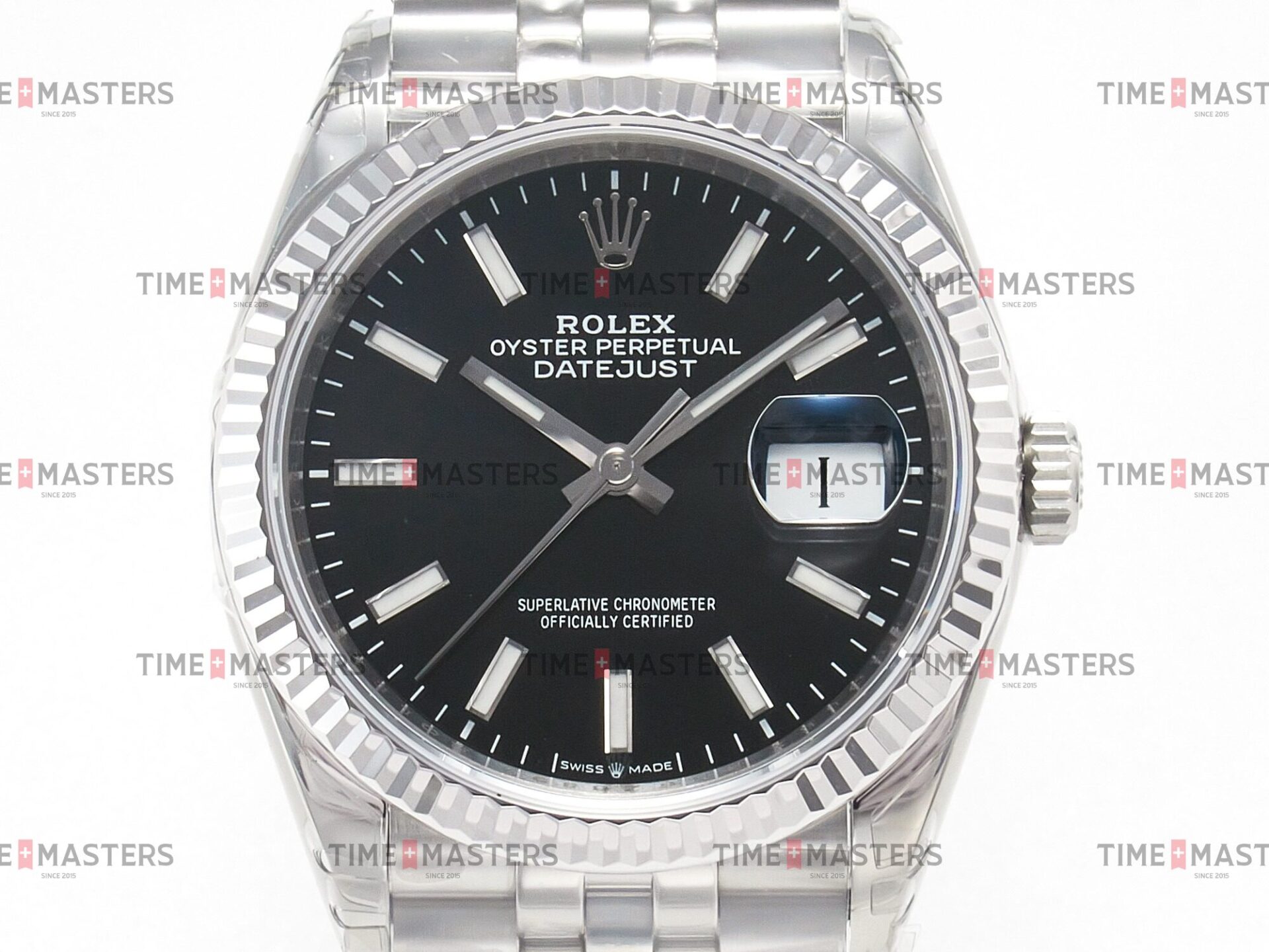 Rolex Datejust – 36 mm – פלדה רצועת ג'ובילי באזל חלק לוח שחור גימור קצה
