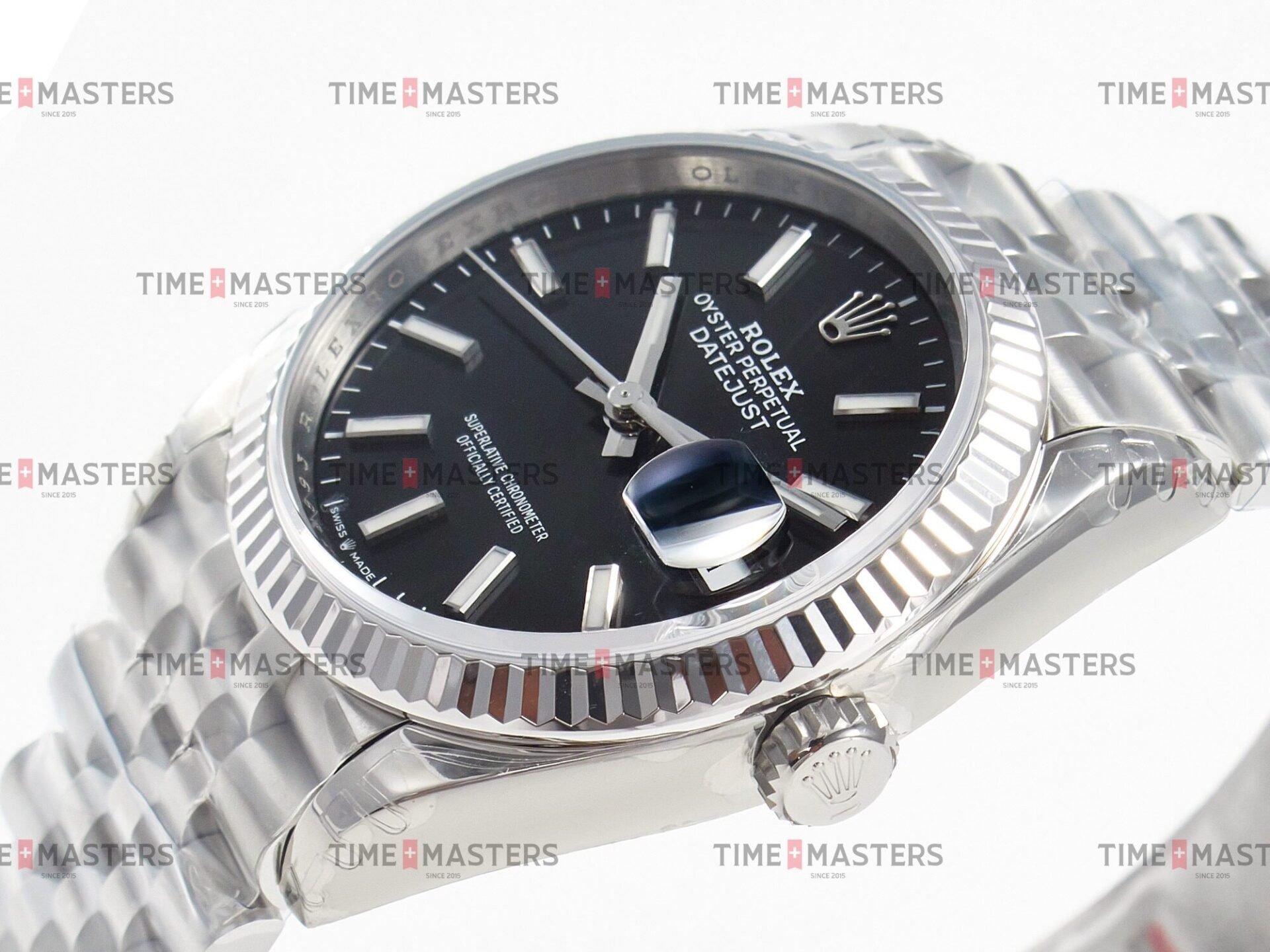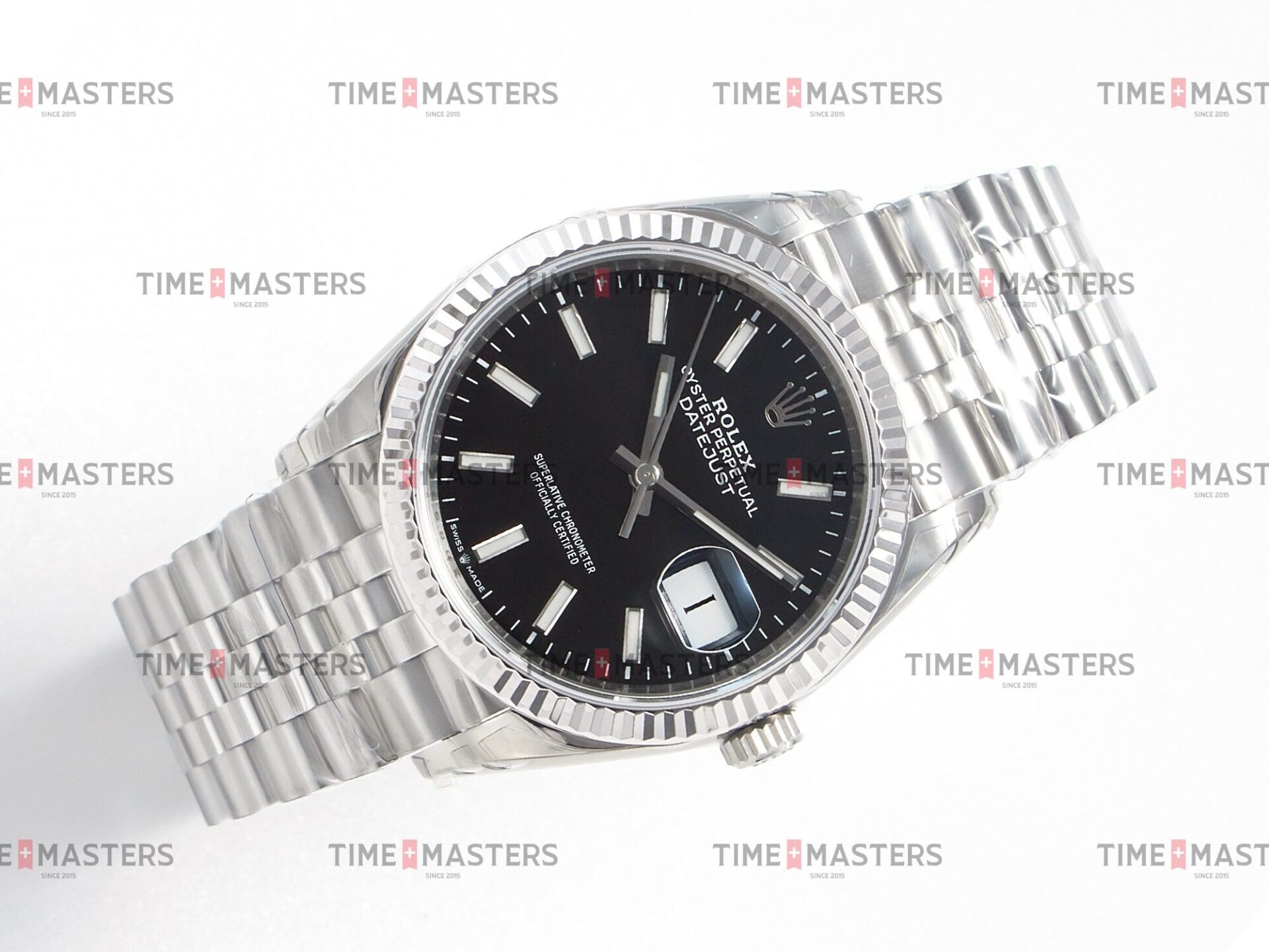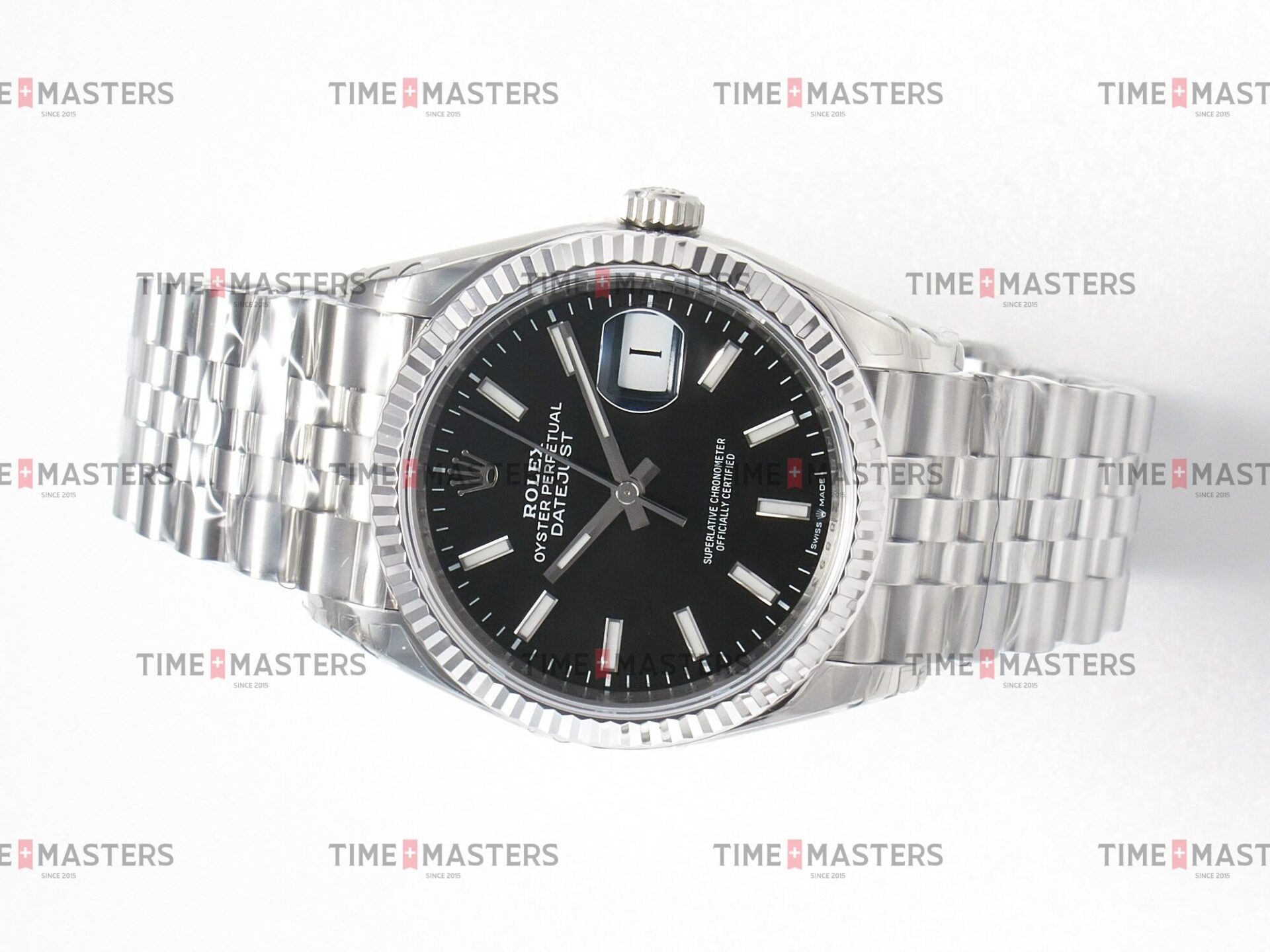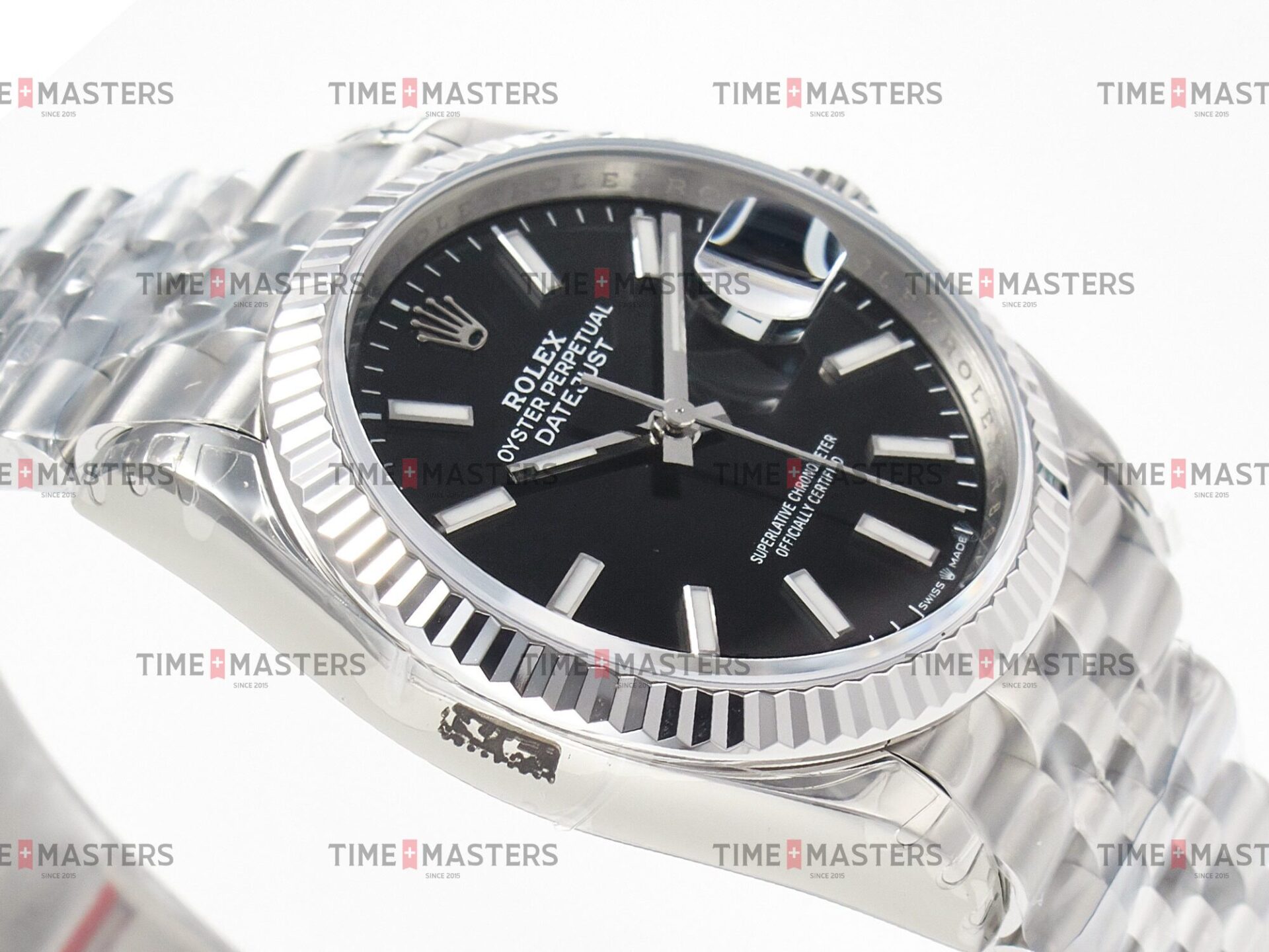 Rolex Datejust – 36 mm – פלדה רצועת ג'ובילי באזל חלק לוח שחור גימור קצה