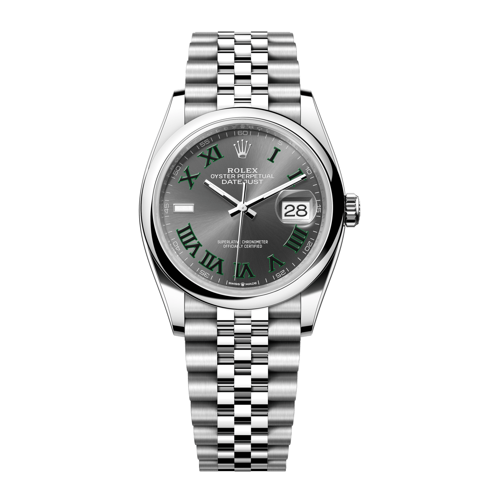 Rolex Datejust – 36 mm – פלדה רצועת ג'ובילי באזל חלק לוח ווימבלדון גימור שוויצרי