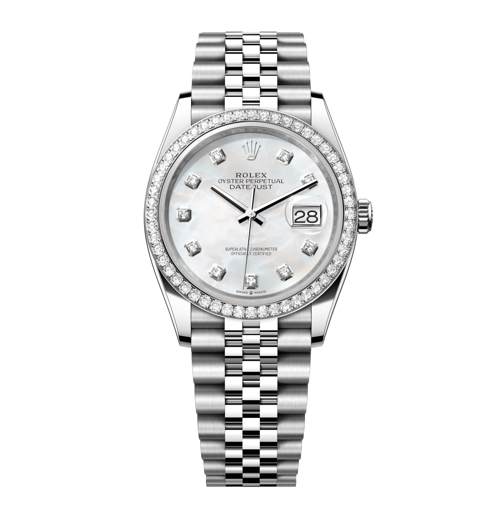 Rolex Datejust – 36 mm – פלדה רצועת ג'ובילי באזל יהלומים לוח סילבר יהלומים גימור קצה