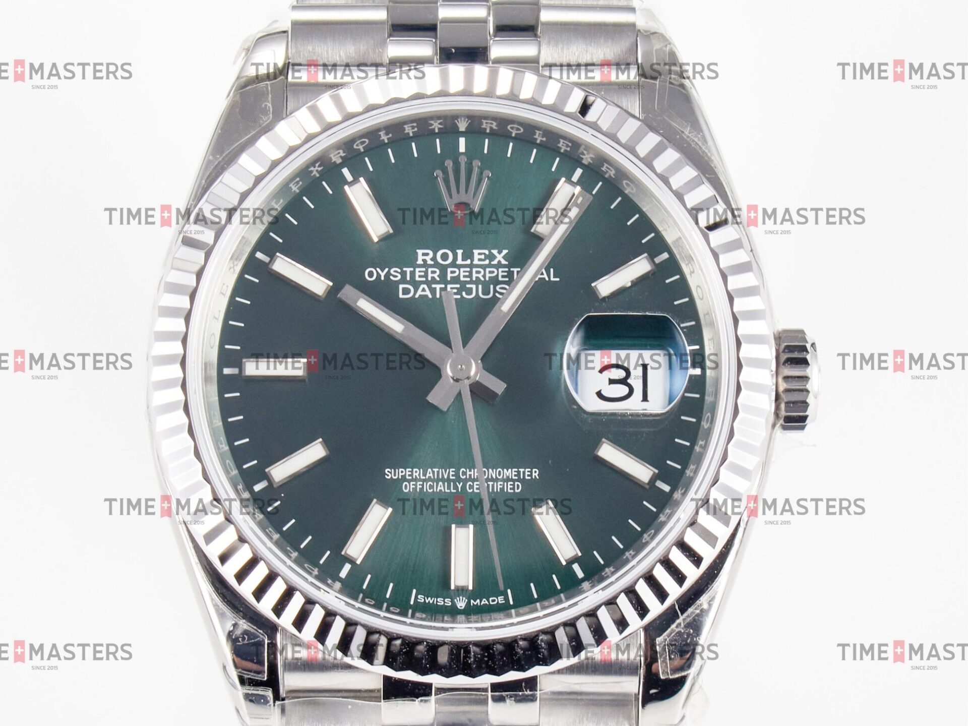 Rolex Datejust – 36 mm – פלדה רצועת ג'ובילי באזל משונן לוח ירוק גימור קצה
