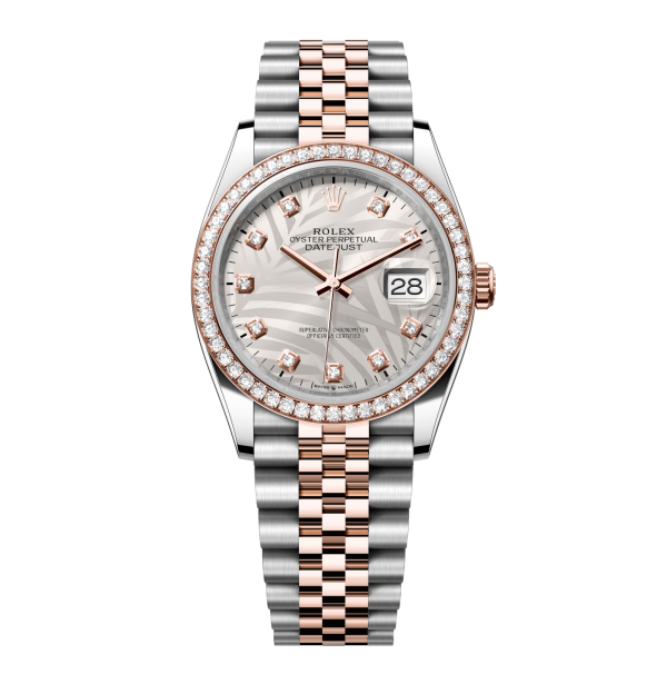 Rolex Datejust – 36 mm – טו טון רוז גולד רצועת ג'ובילי באזל יהלומים לוח סילבר יהלומים