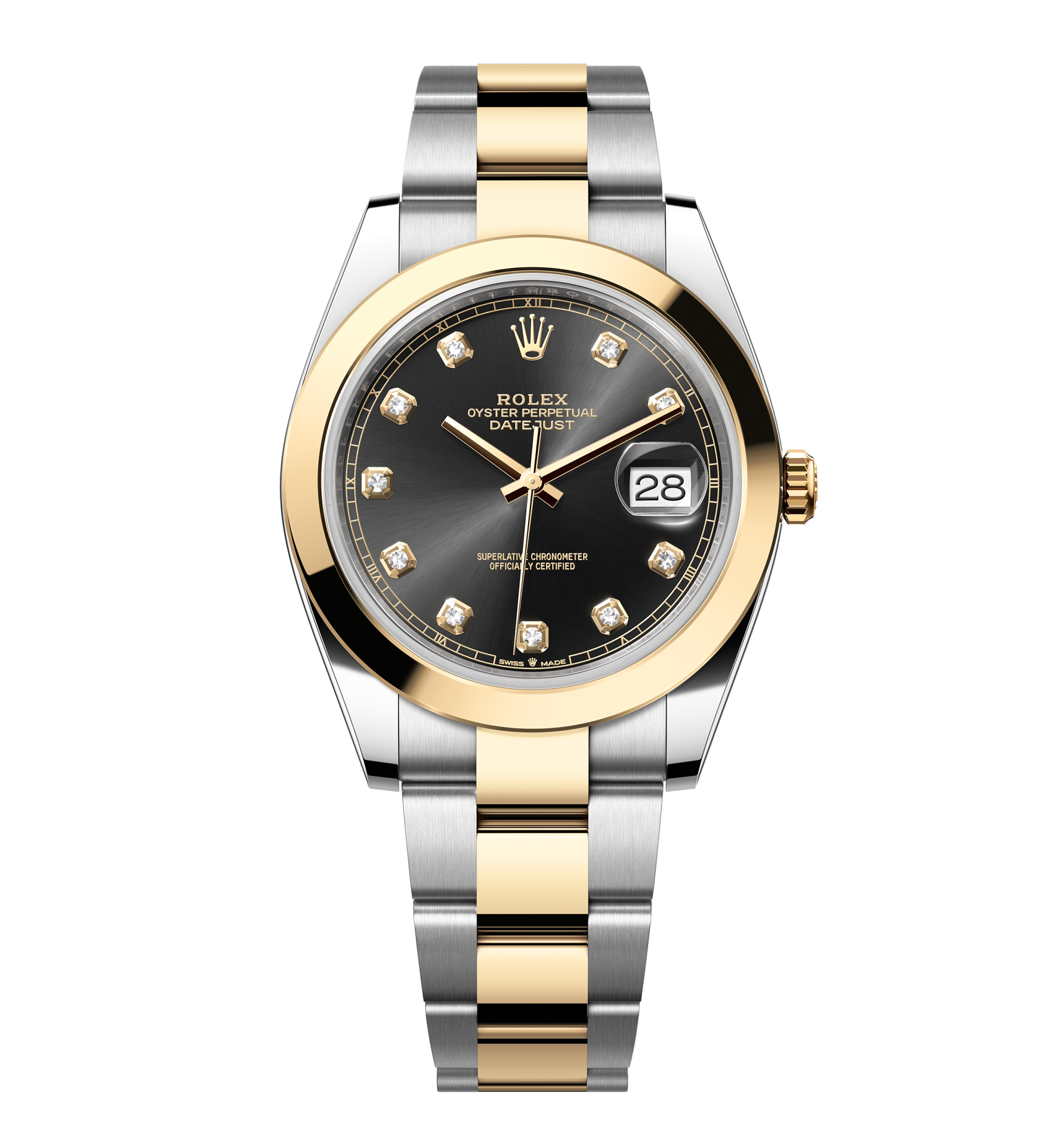 Rolex Datejust – 41 mm – טו טון זהב צהוב רצועת אויסטר באזל חלק לוח שחור יהלומים גימור שוויצרי