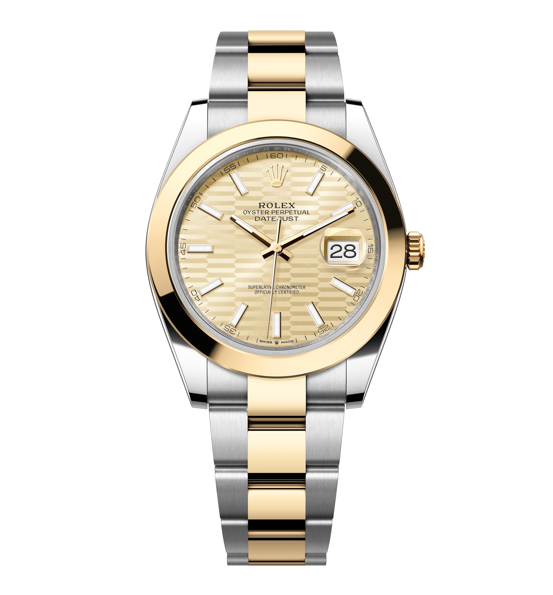 Rolex Datejust – 41 mm – טו טון זהב צהוב רצועת אויסטר באזל חלק לוח מוטיף זהב גימור קצה