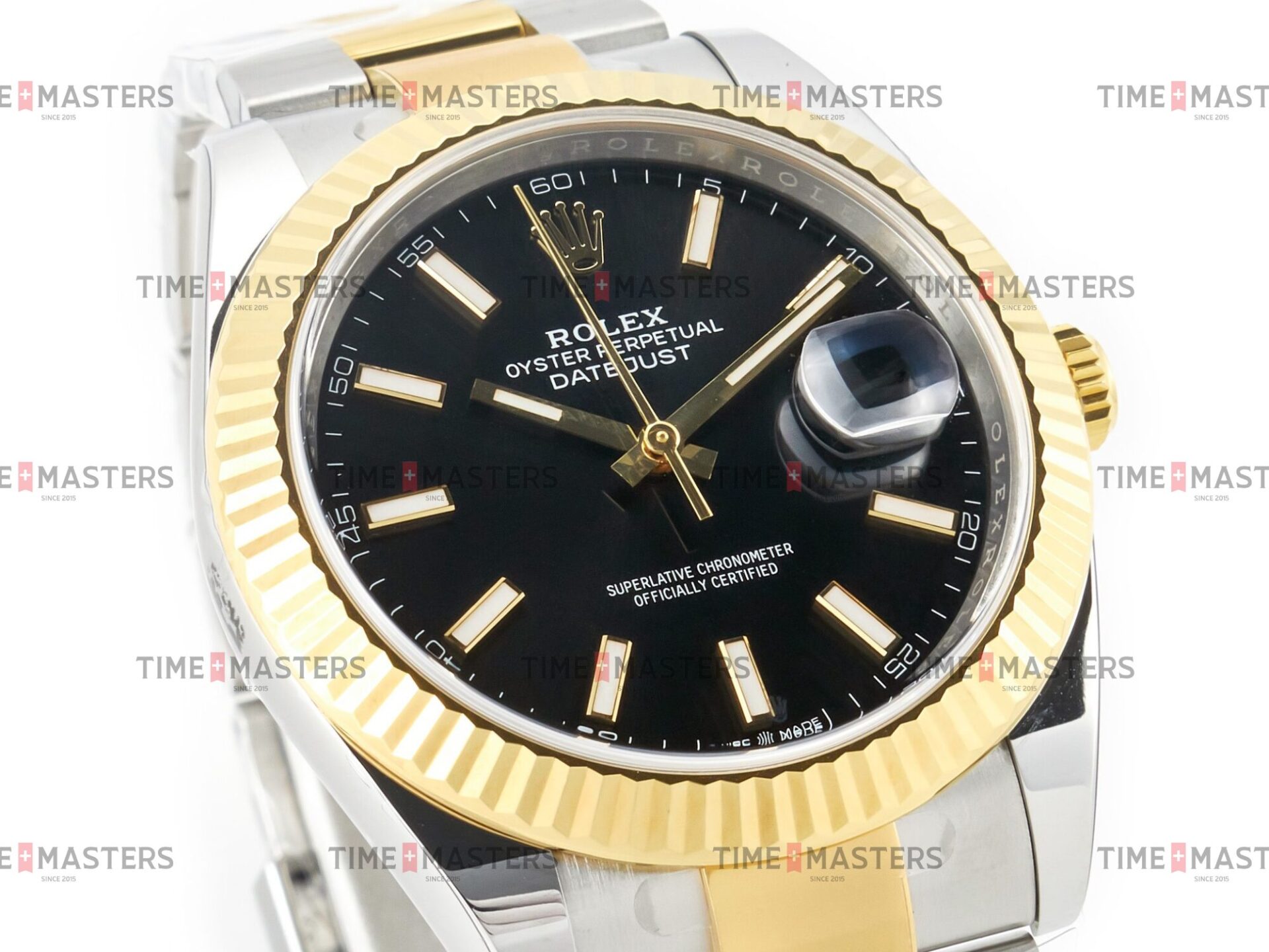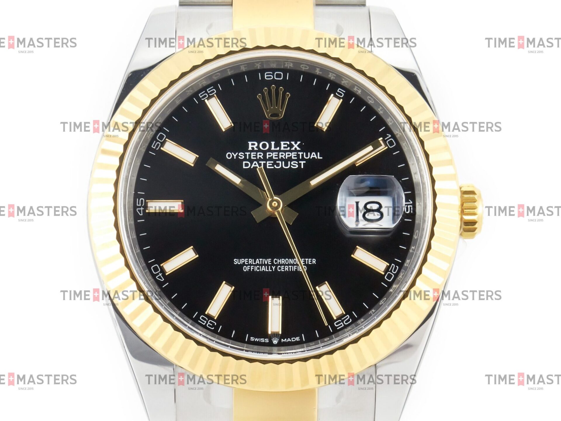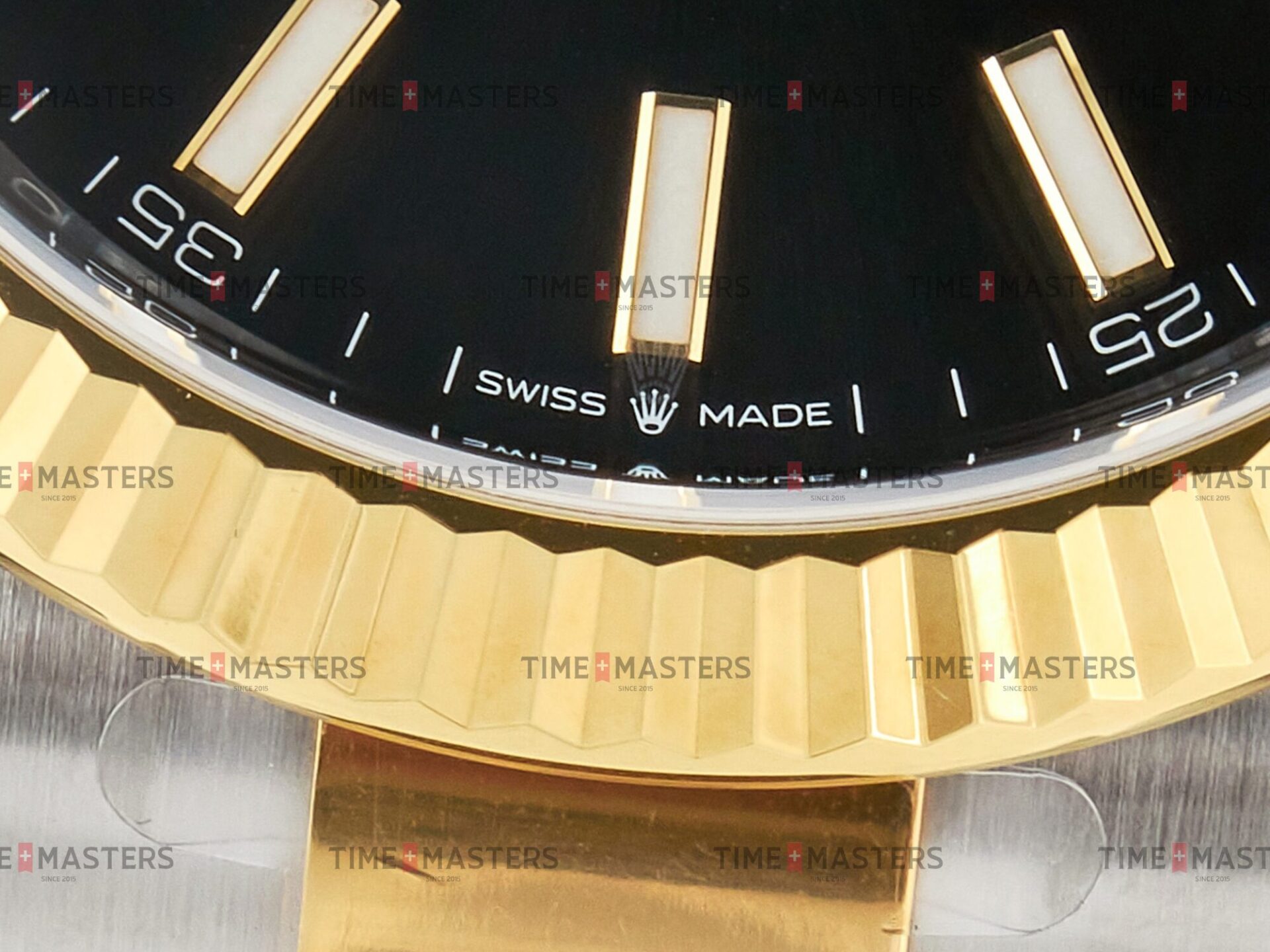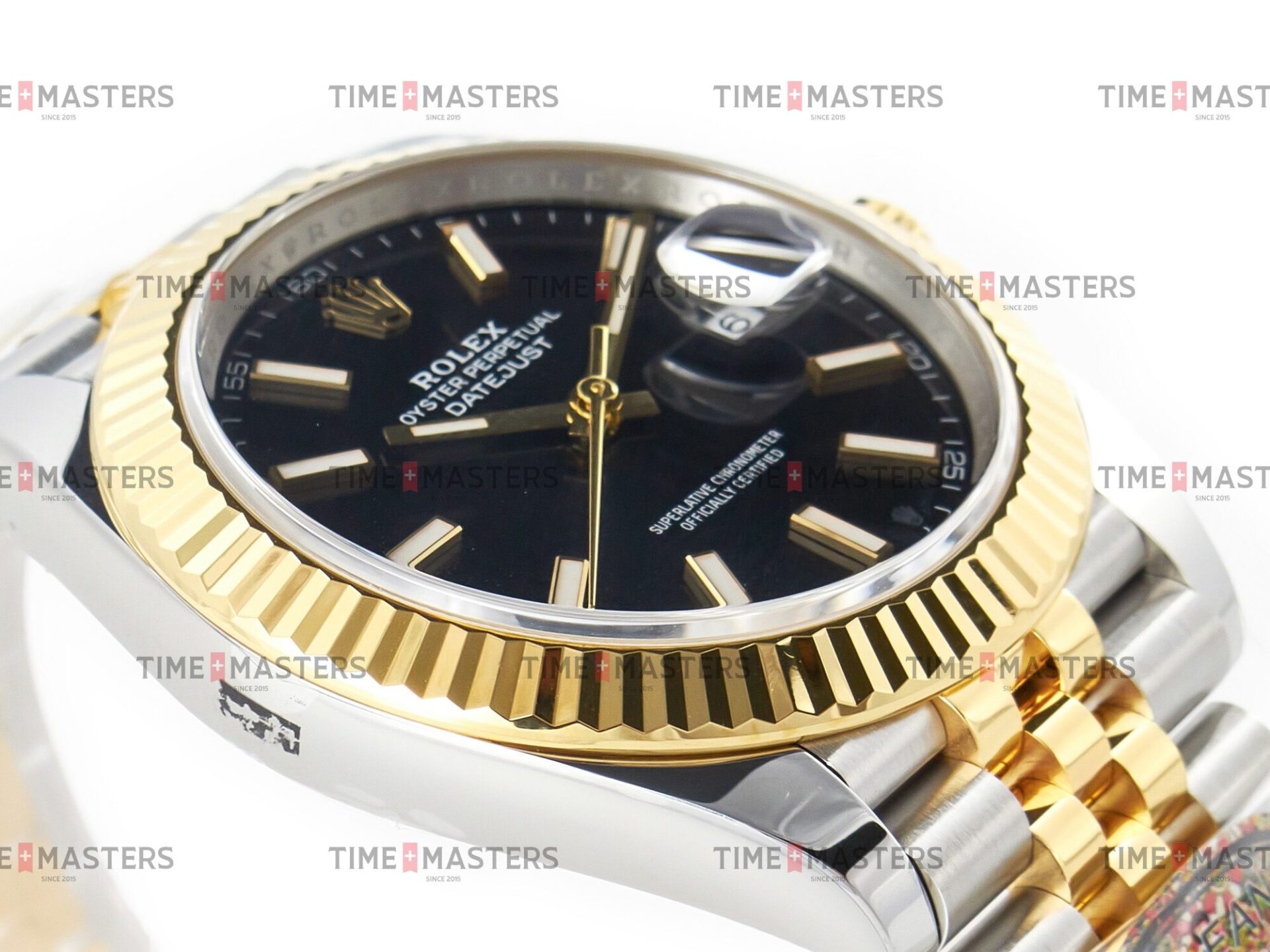 Rolex Datejust – 41 mm – טו טון זהב צהוב רצועת אויסטר באזל משונן לוח שחור גימור קצה