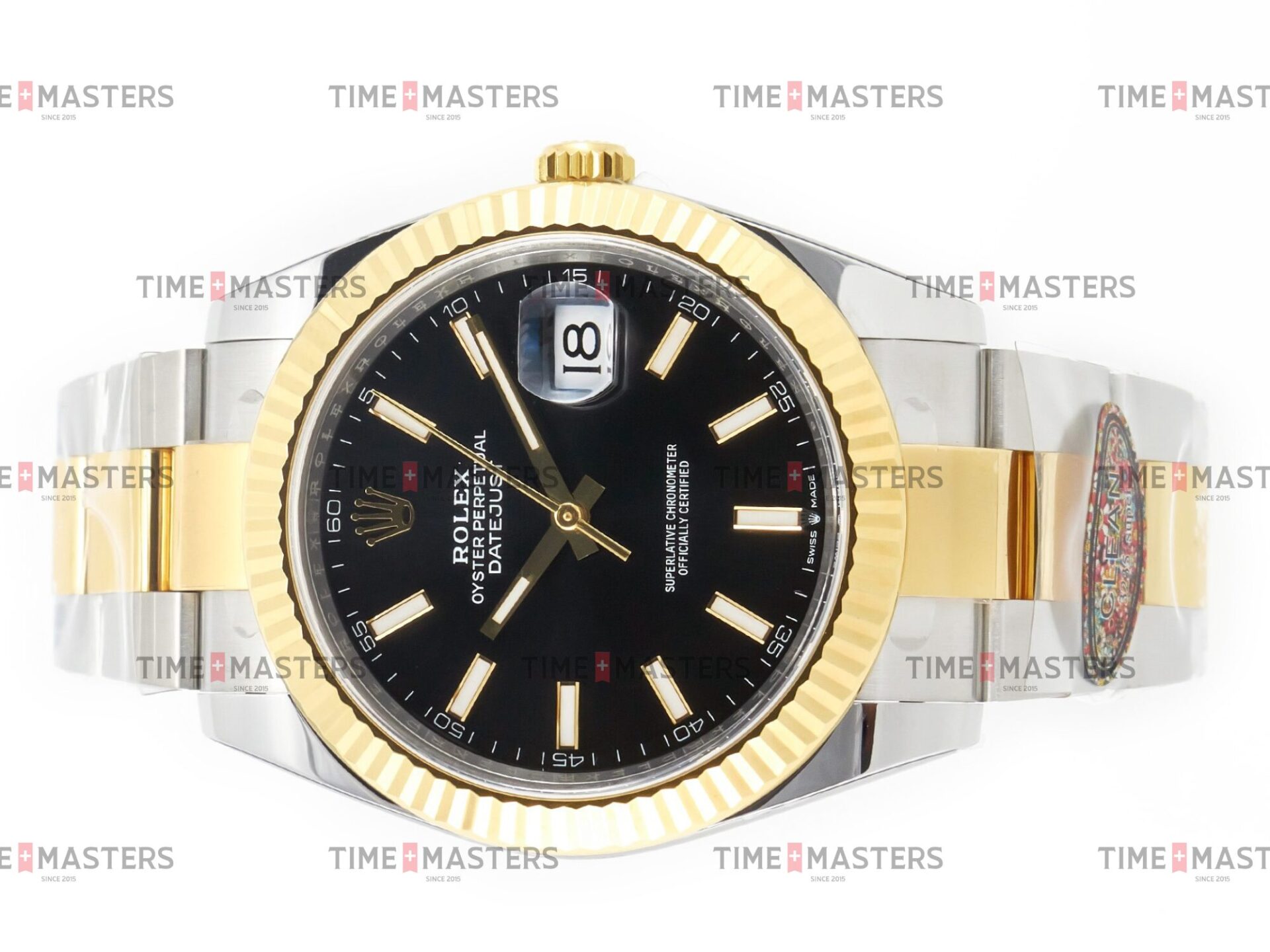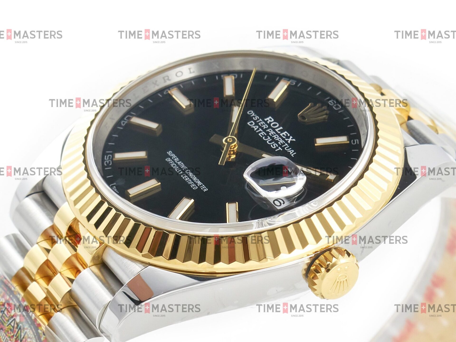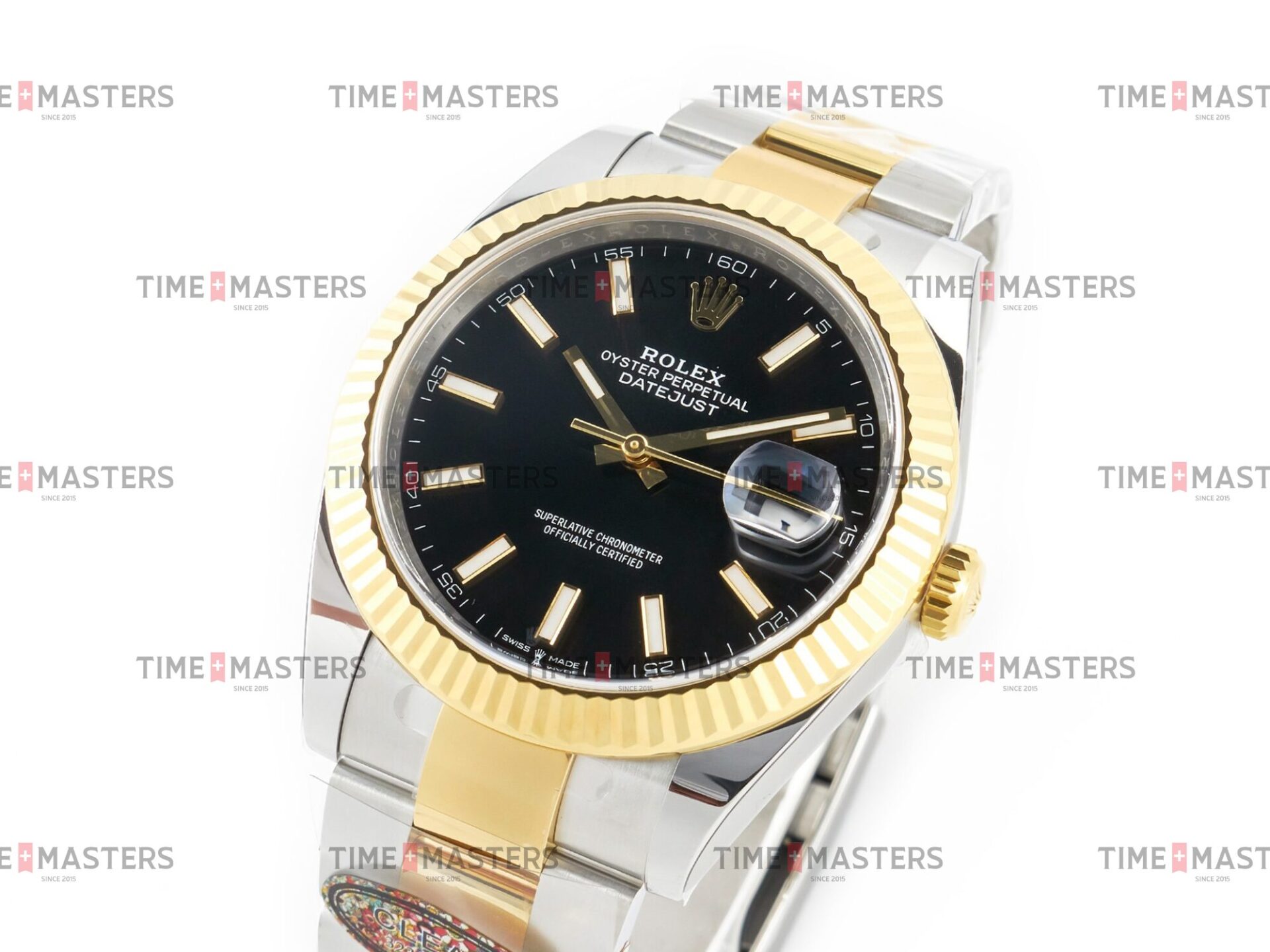 Rolex Datejust – 41 mm – טו טון זהב צהוב רצועת אויסטר באזל משונן לוח שחור גימור קצה