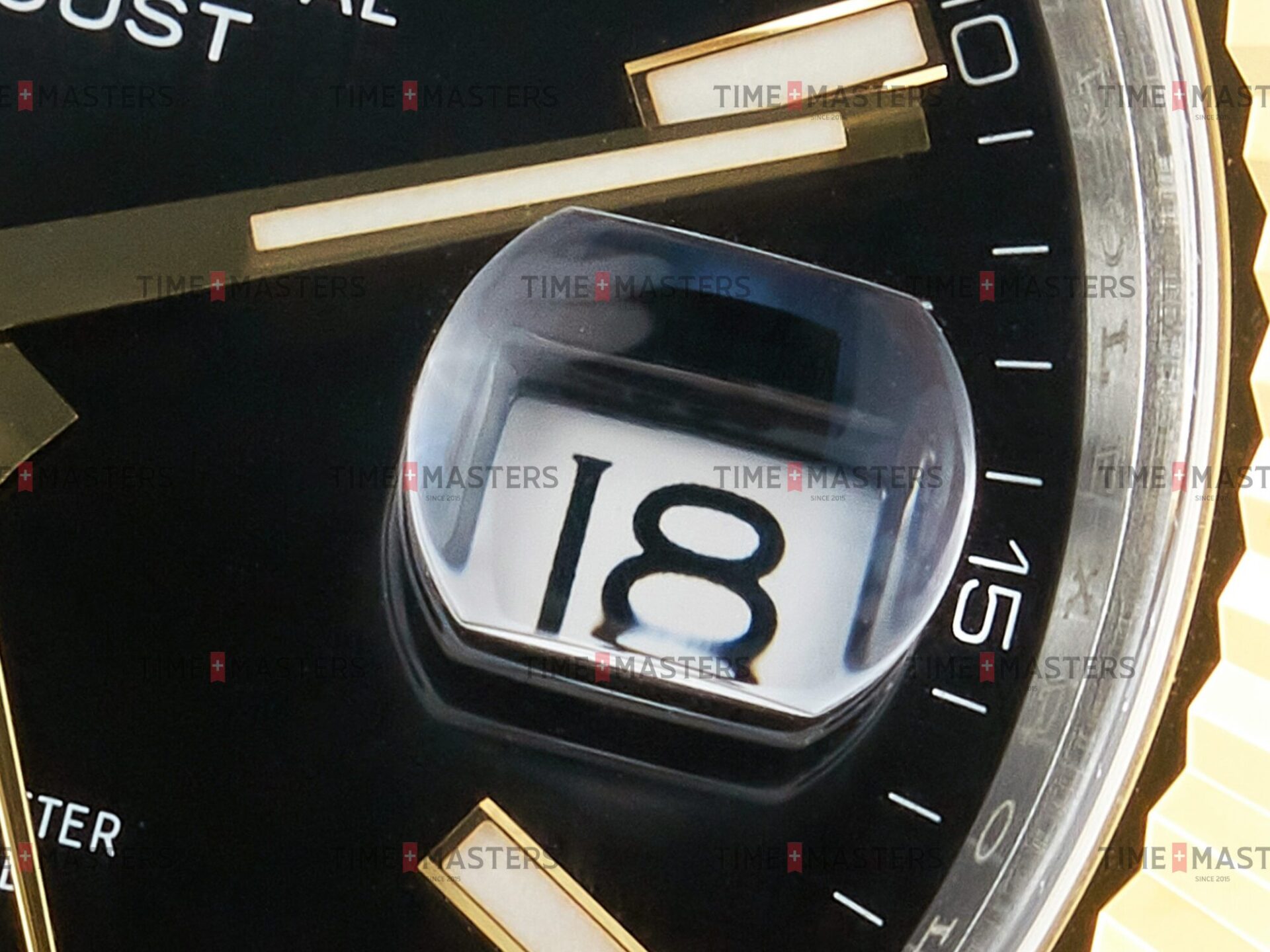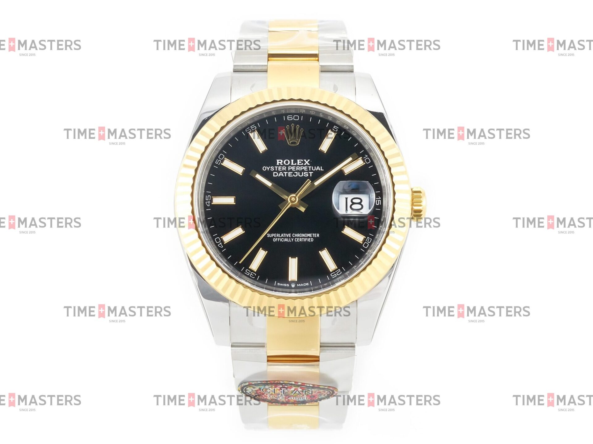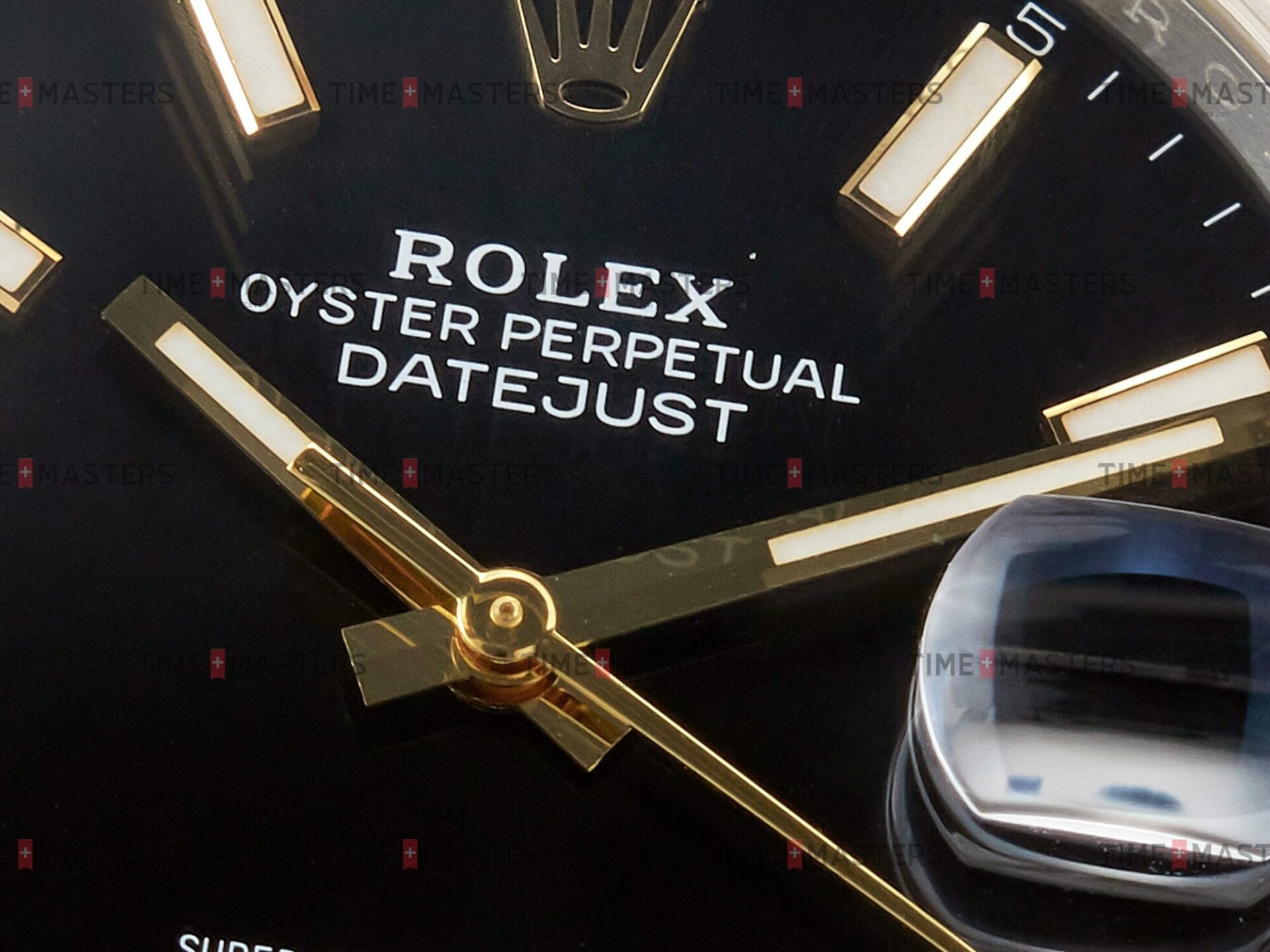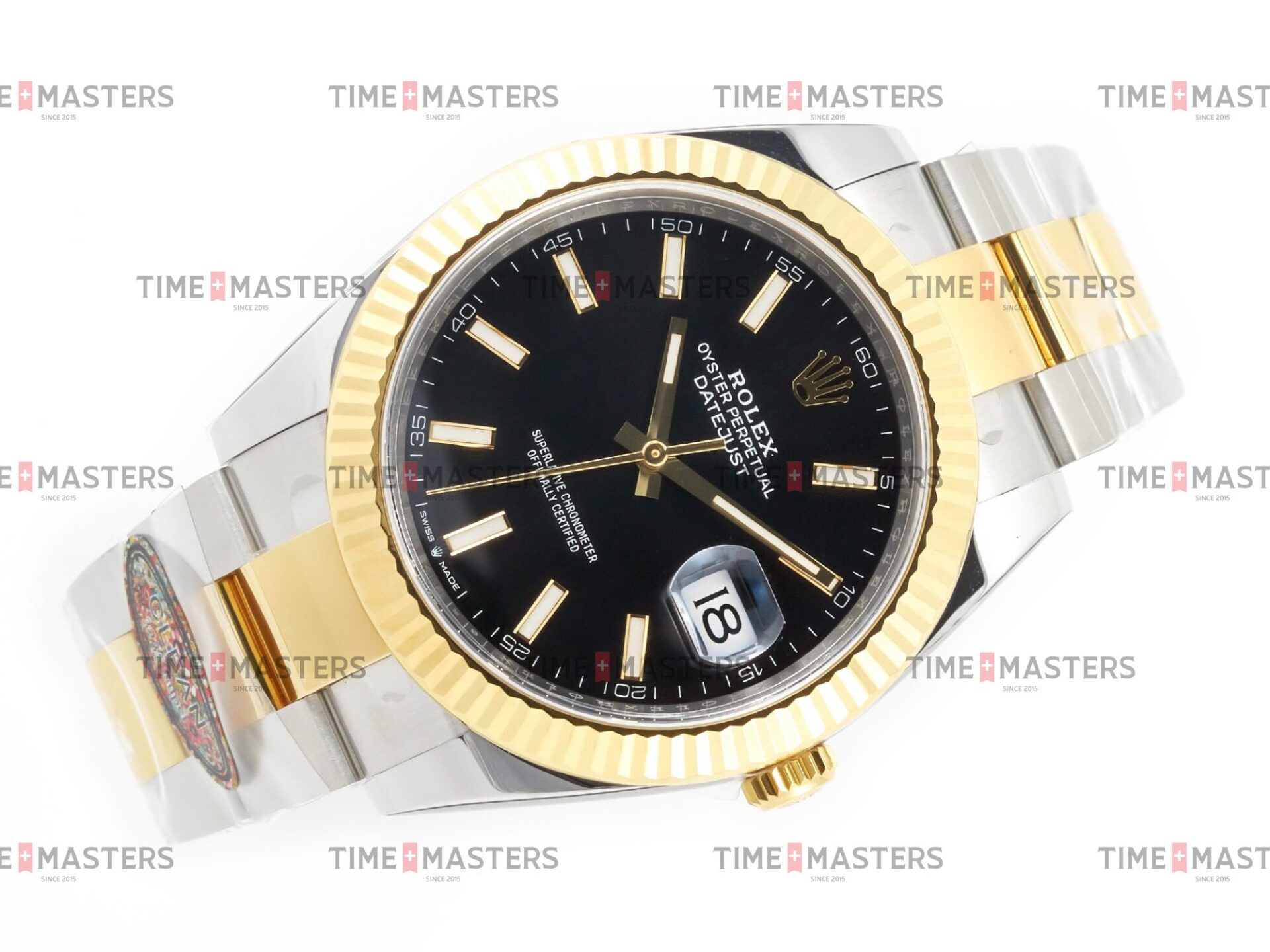 Rolex Datejust – 41 mm – טו טון זהב צהוב רצועת אויסטר באזל משונן לוח שחור גימור קצה