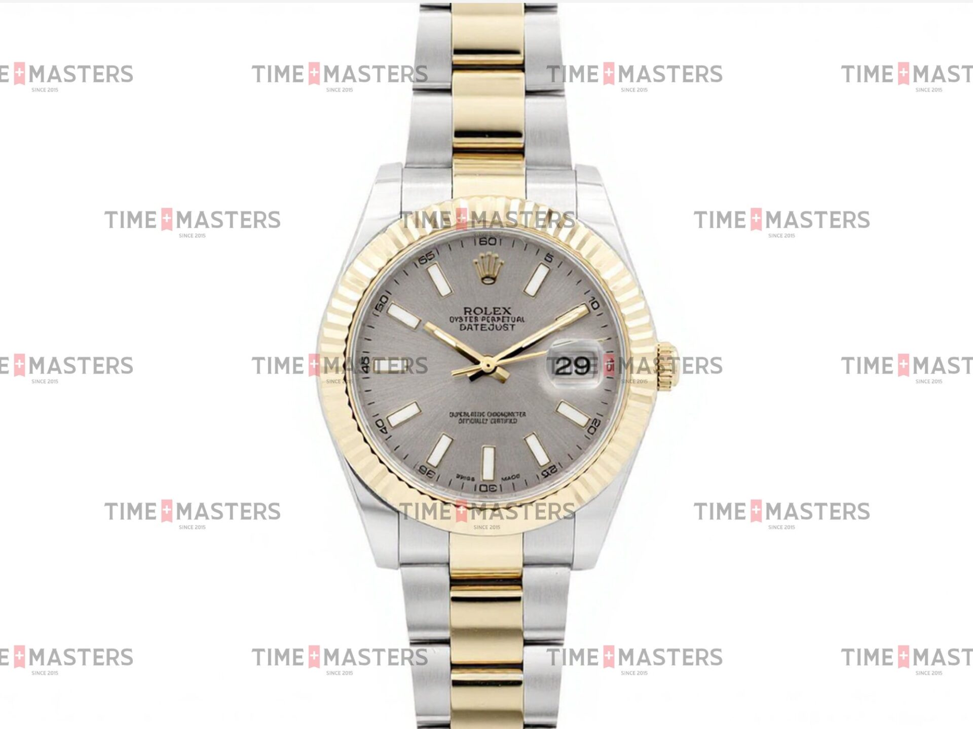 Rolex Datejust – 41 mm – טו טון זהב צהוב רצועת אויסטר באזל משונן לוח סילבר גימור קצה