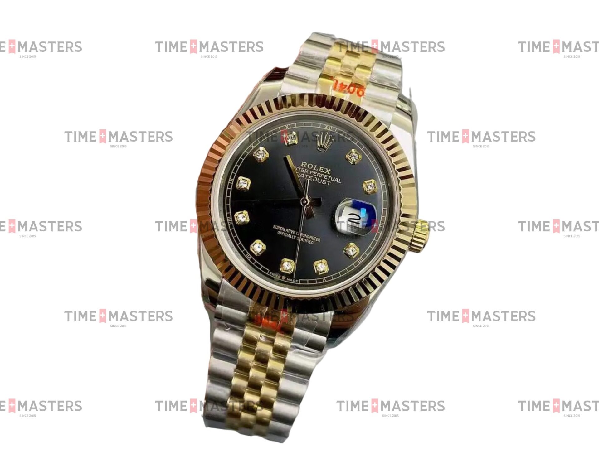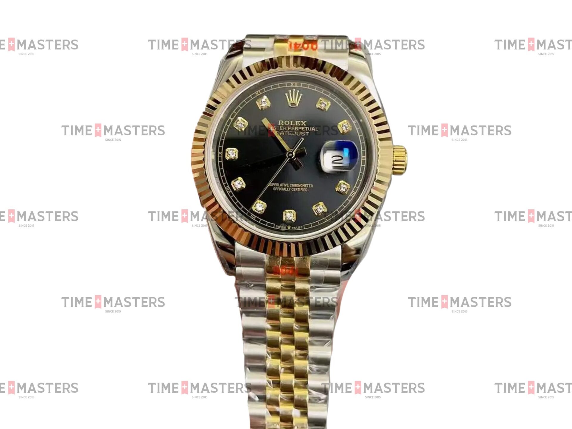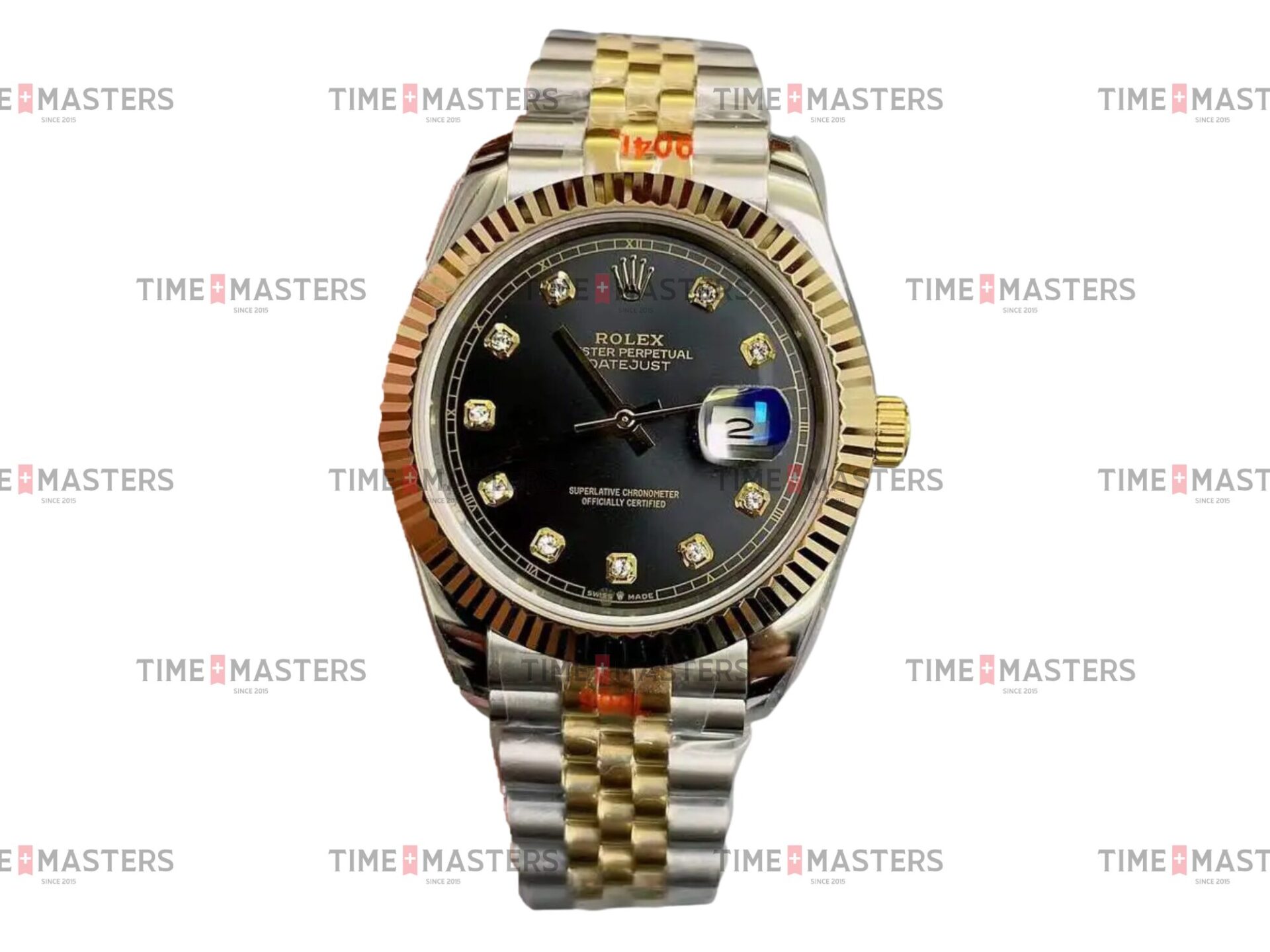 Rolex Datejust – 41 mm – טו טון זהב צהוב רצועת ג'ובילי באזל משונן לוח שחור עם יהלומים גימור שוויצרי