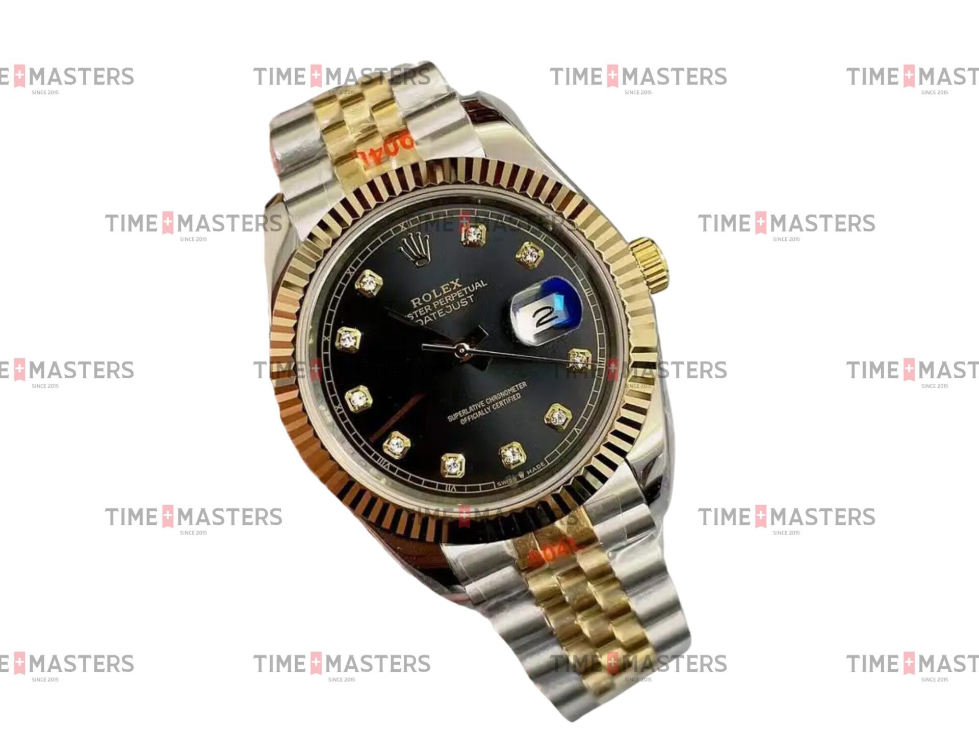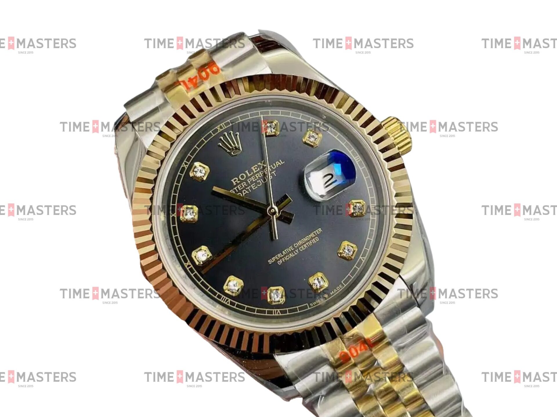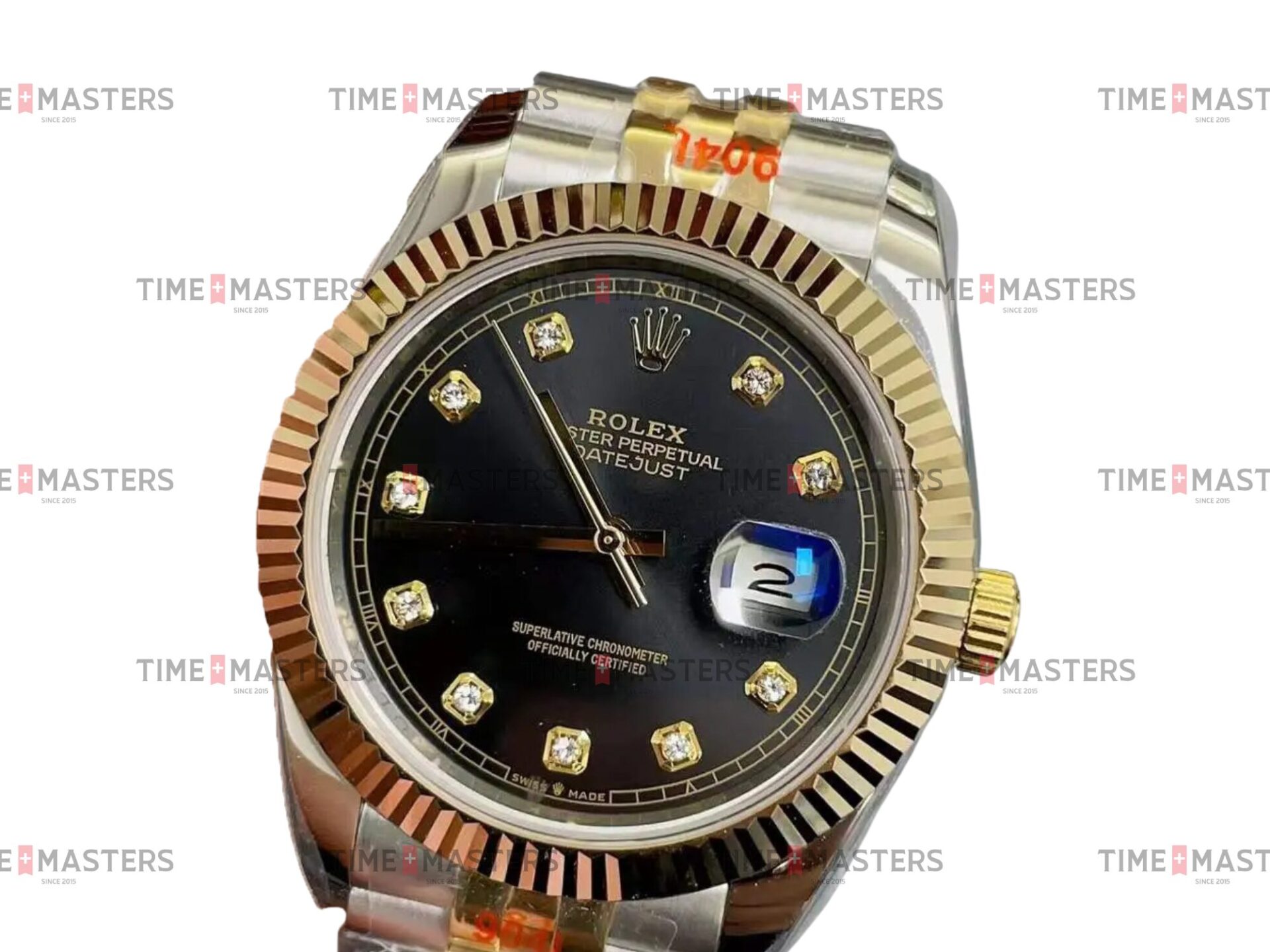 Rolex Datejust – 41 mm – טו טון זהב צהוב רצועת ג'ובילי באזל משונן לוח שחור עם יהלומים גימור שוויצרי