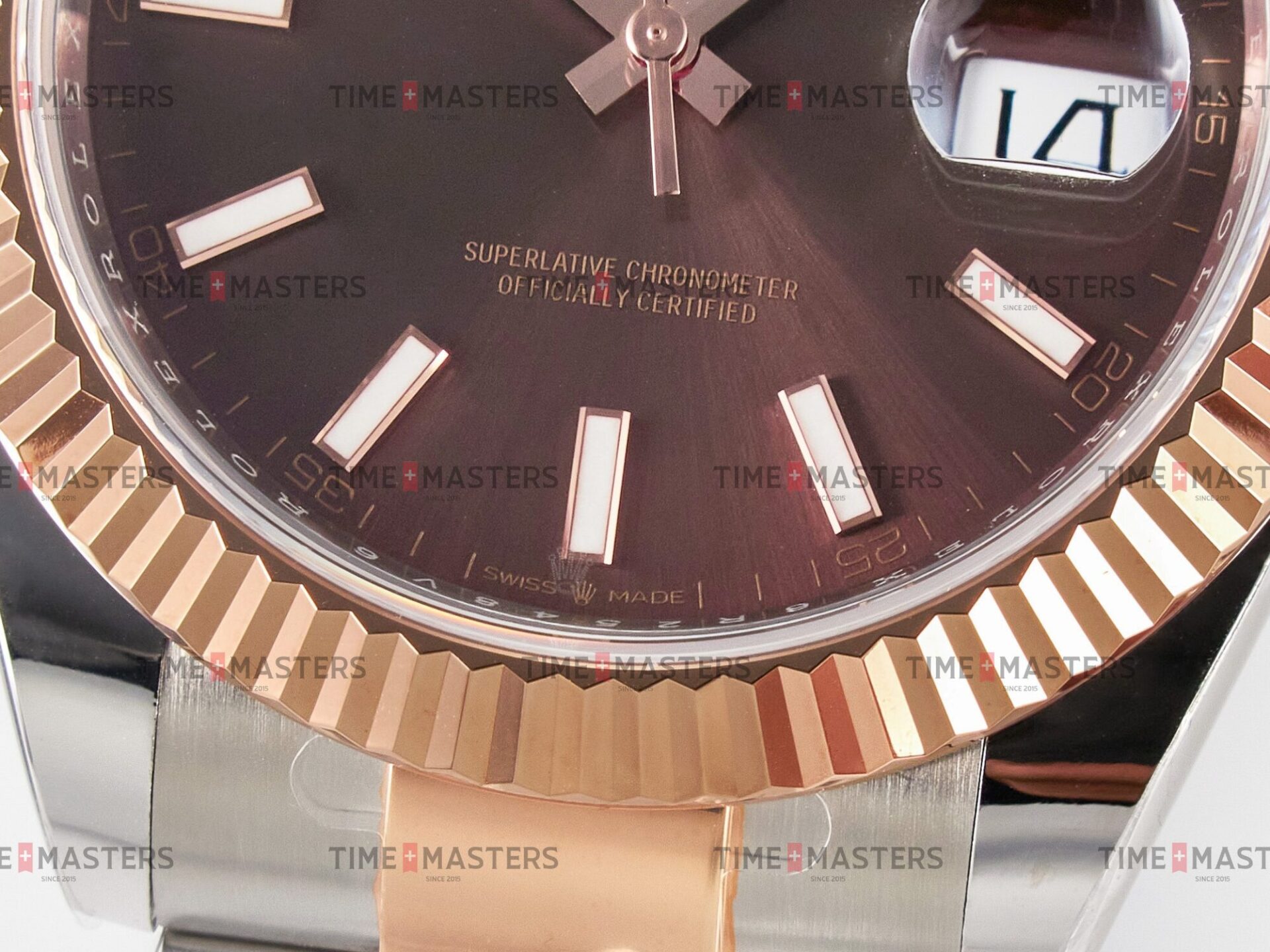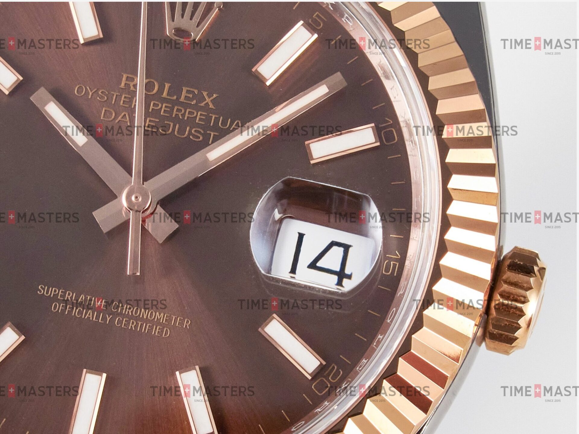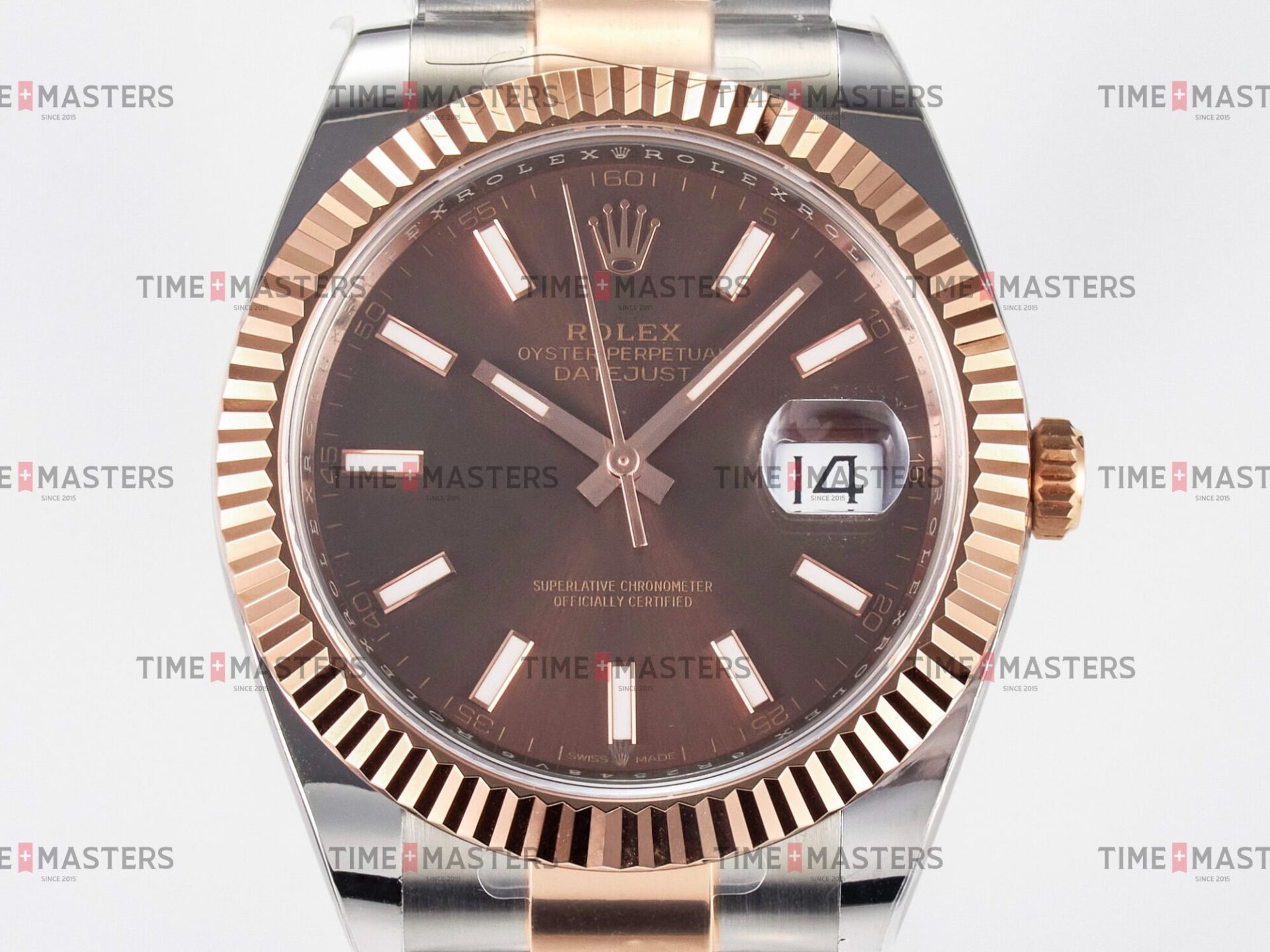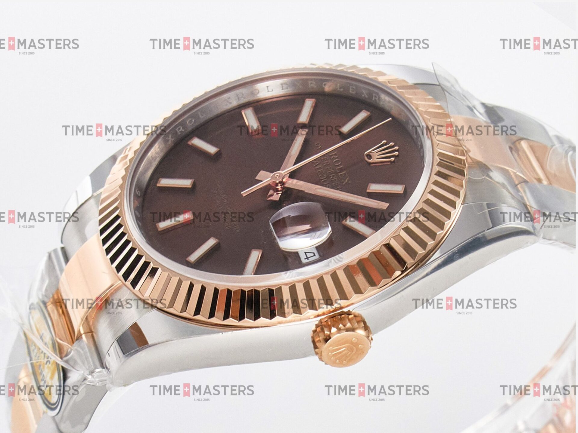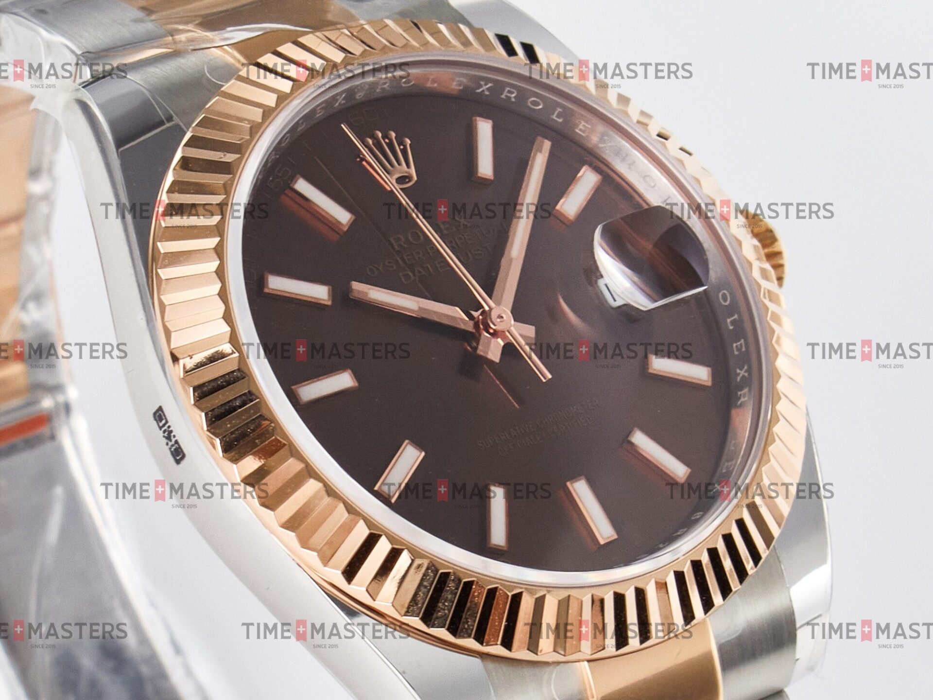 Rolex Datejust – 41 mm – טו טון רוז גולד רצועת אויסטר באזל משונן לוח שוקולד גימור קצה