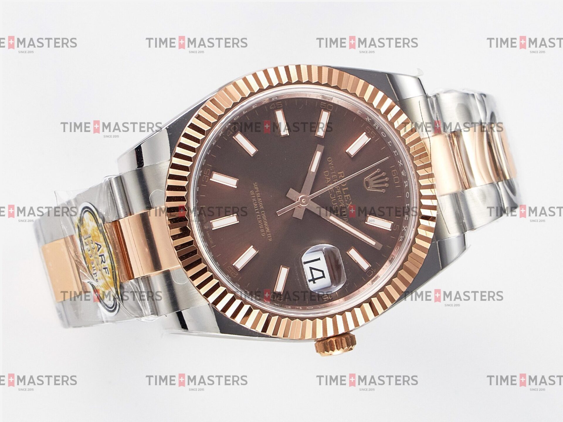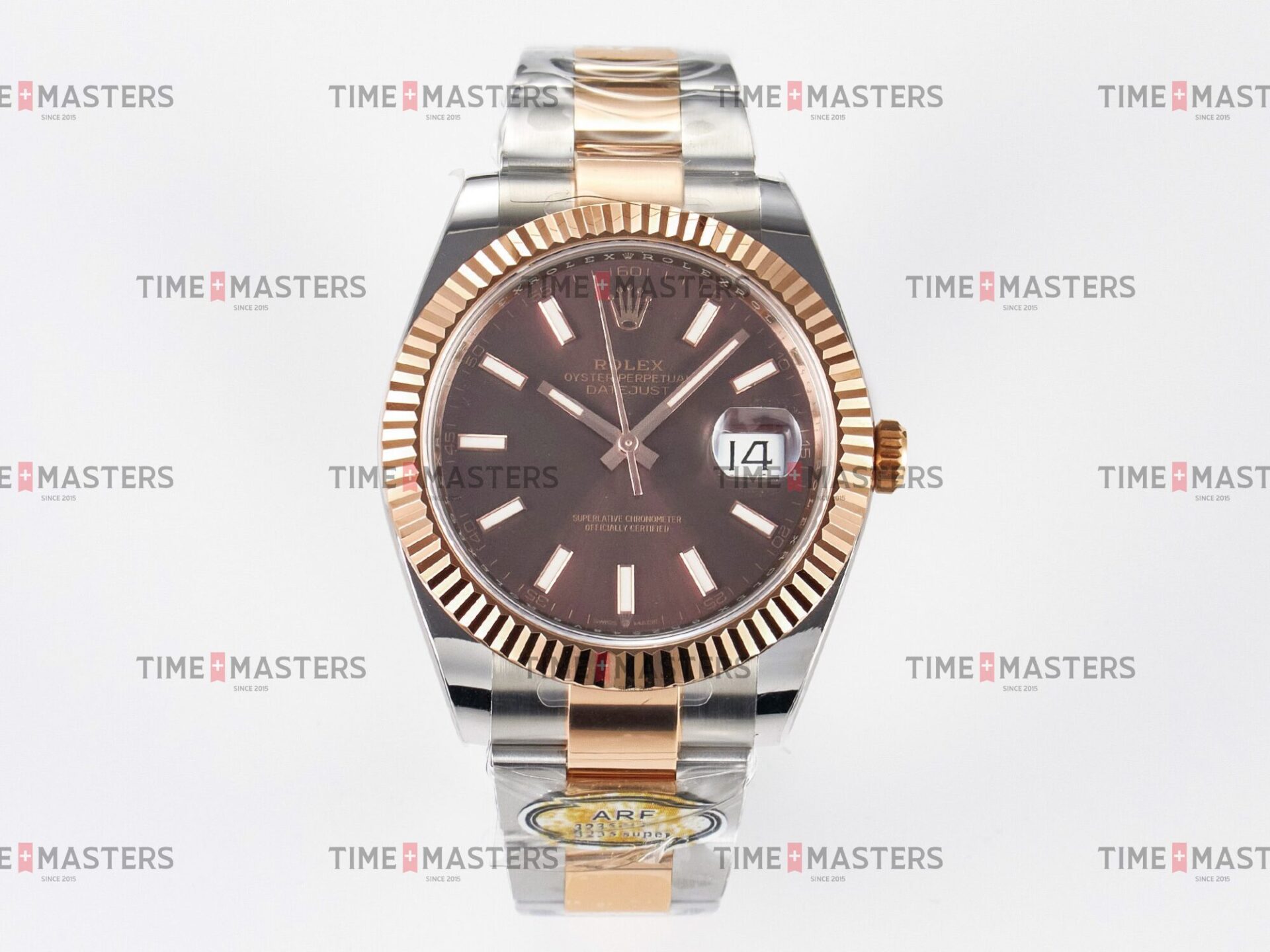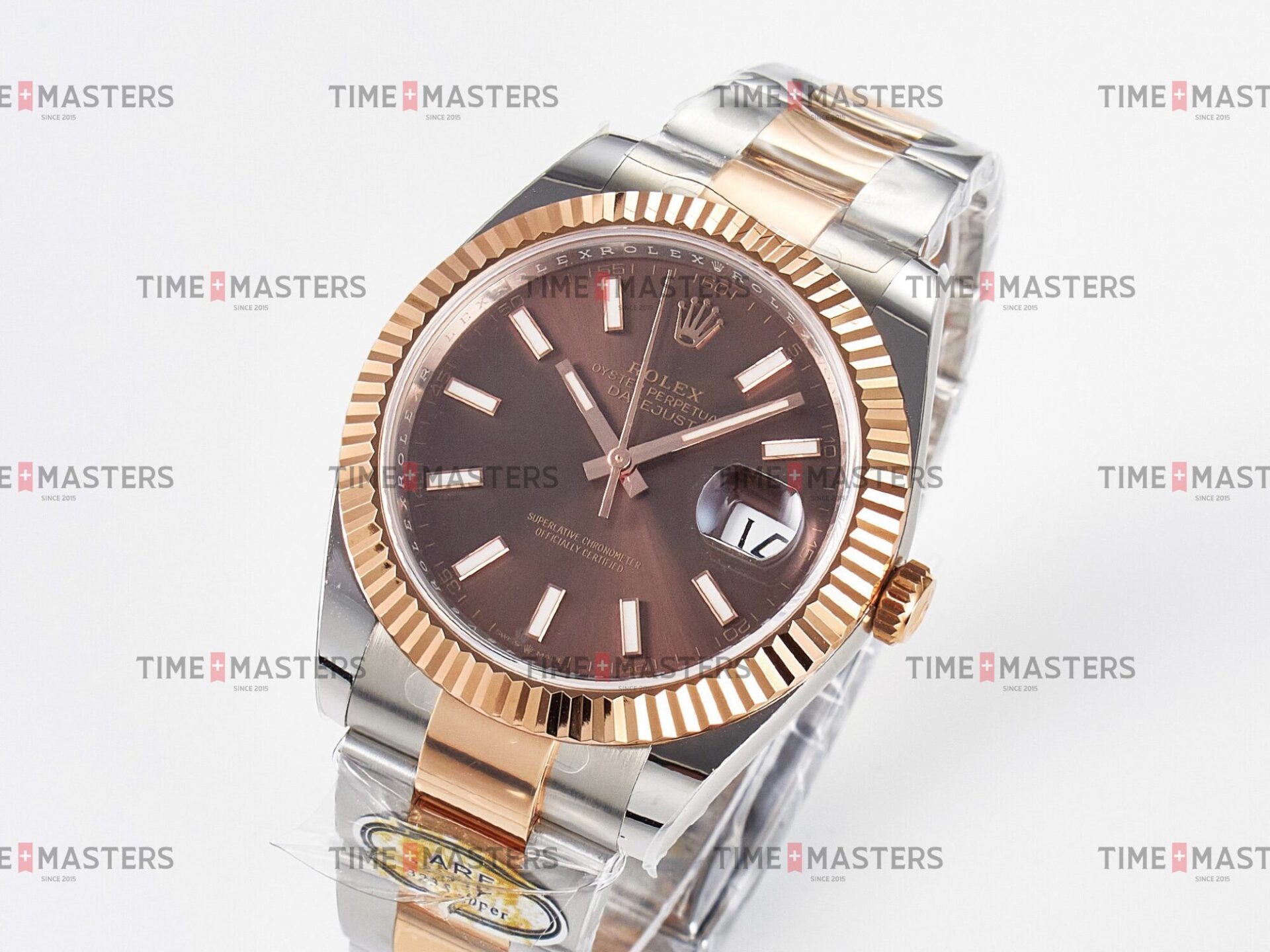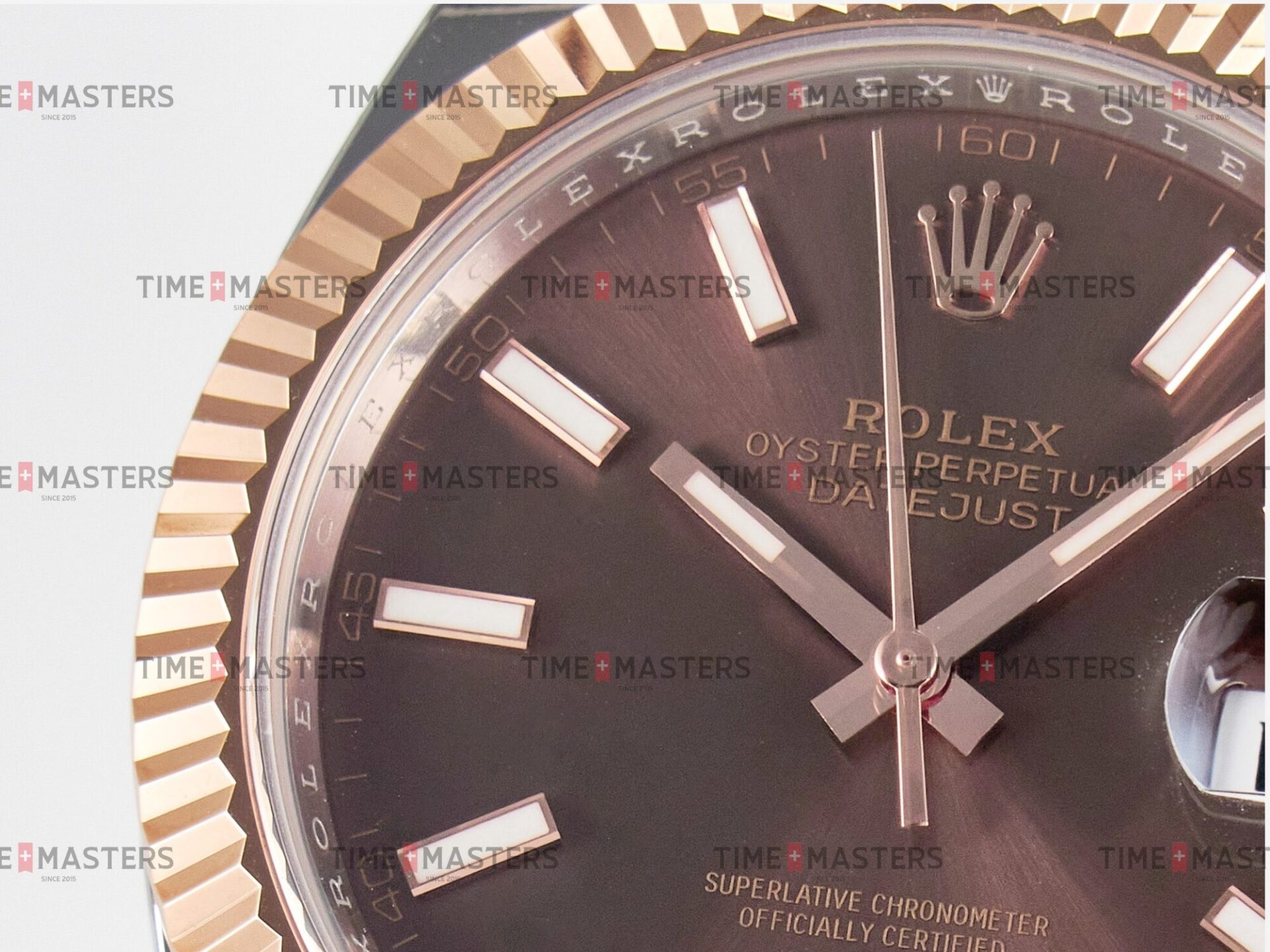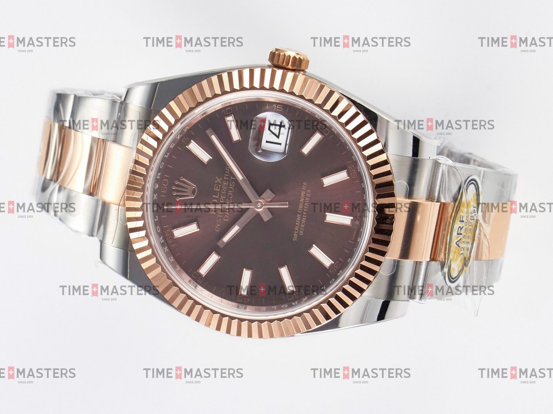 Rolex Datejust – 41 mm – טו טון רוז גולד רצועת אויסטר באזל משונן לוח שוקולד גימור קצה