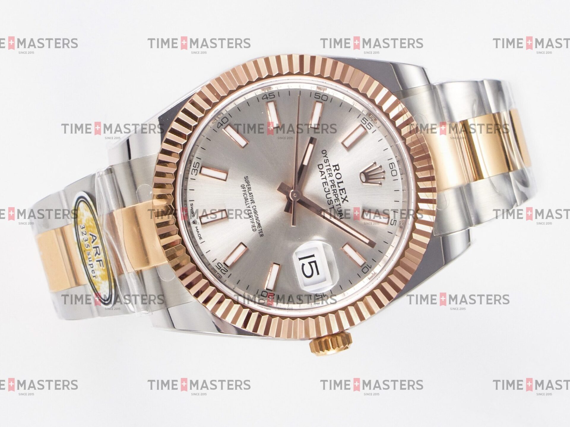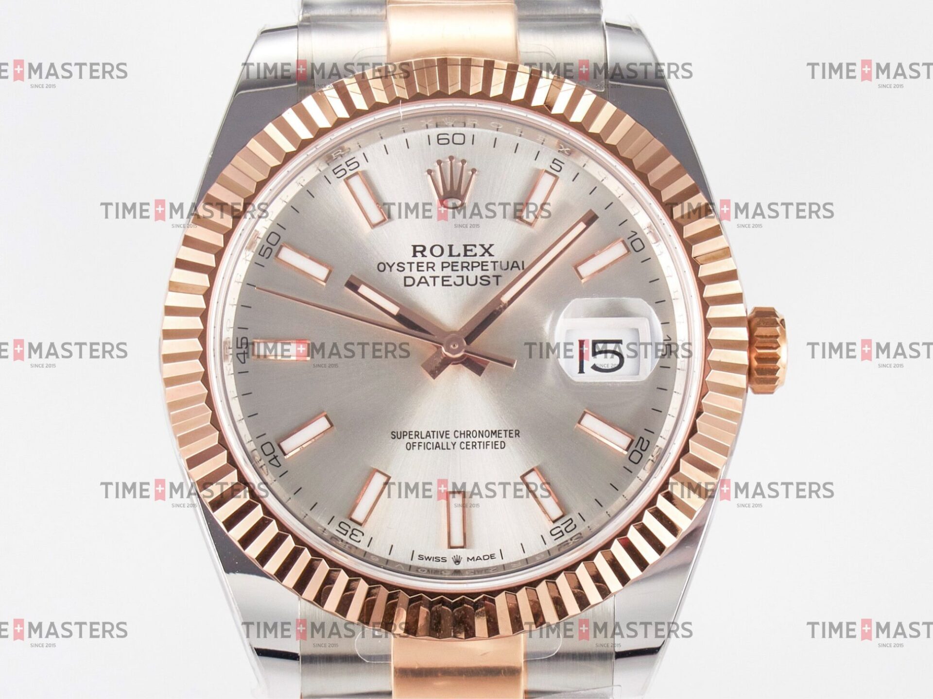 Rolex Datejust – 41 mm – טו טון רוז גולד רצועת אויסטר באזל משונן לוח סאנדסט גימור קצה