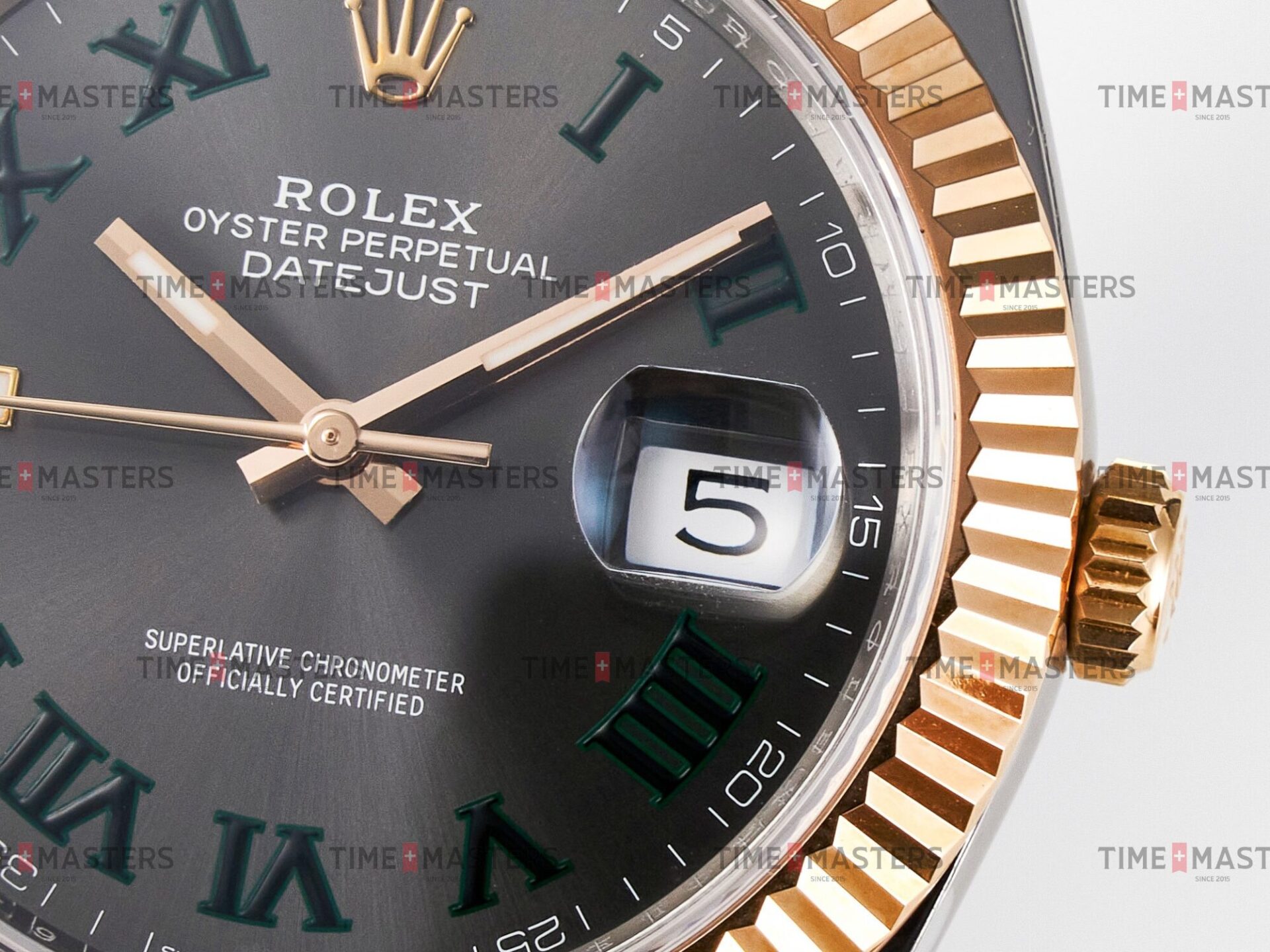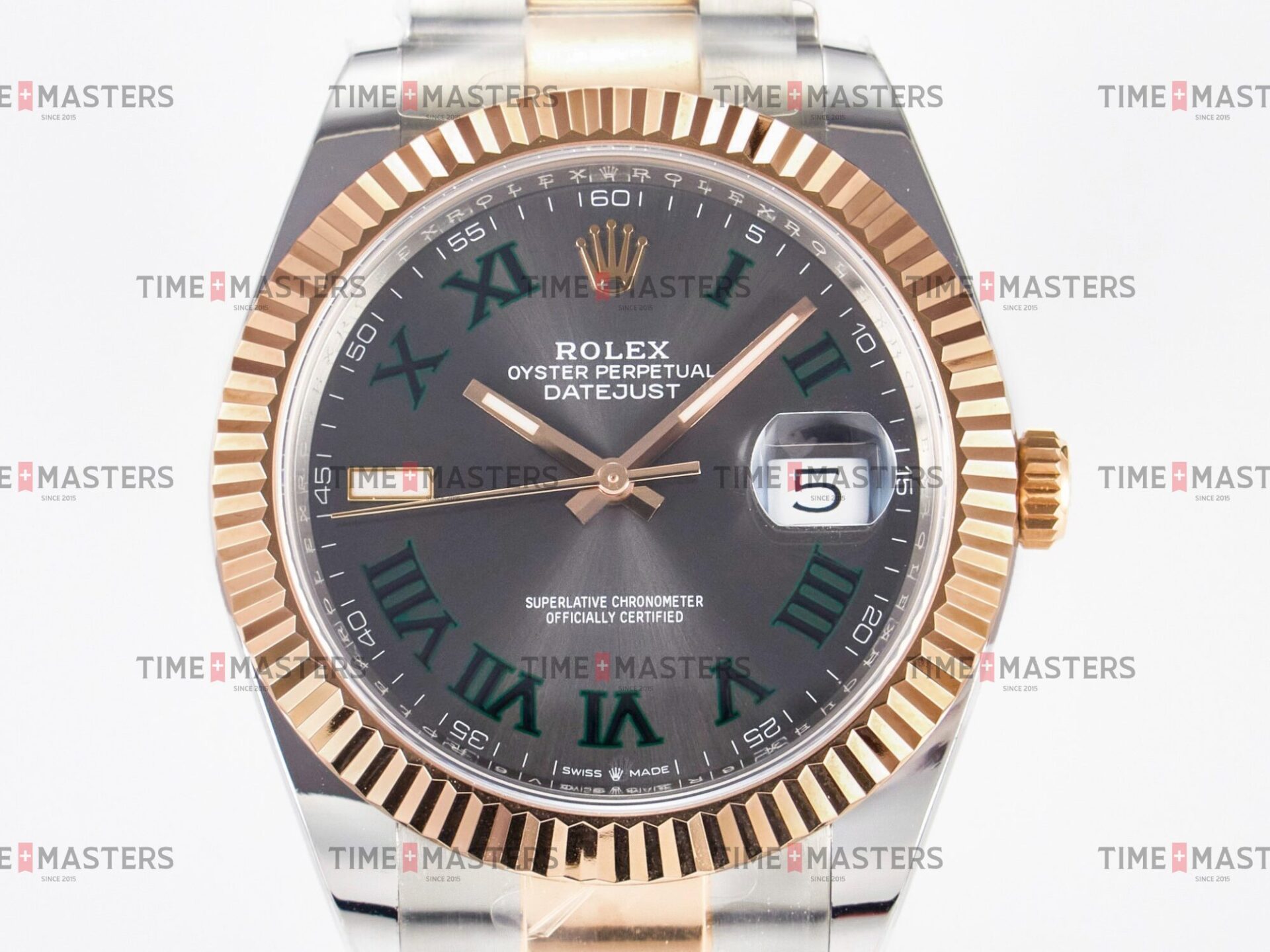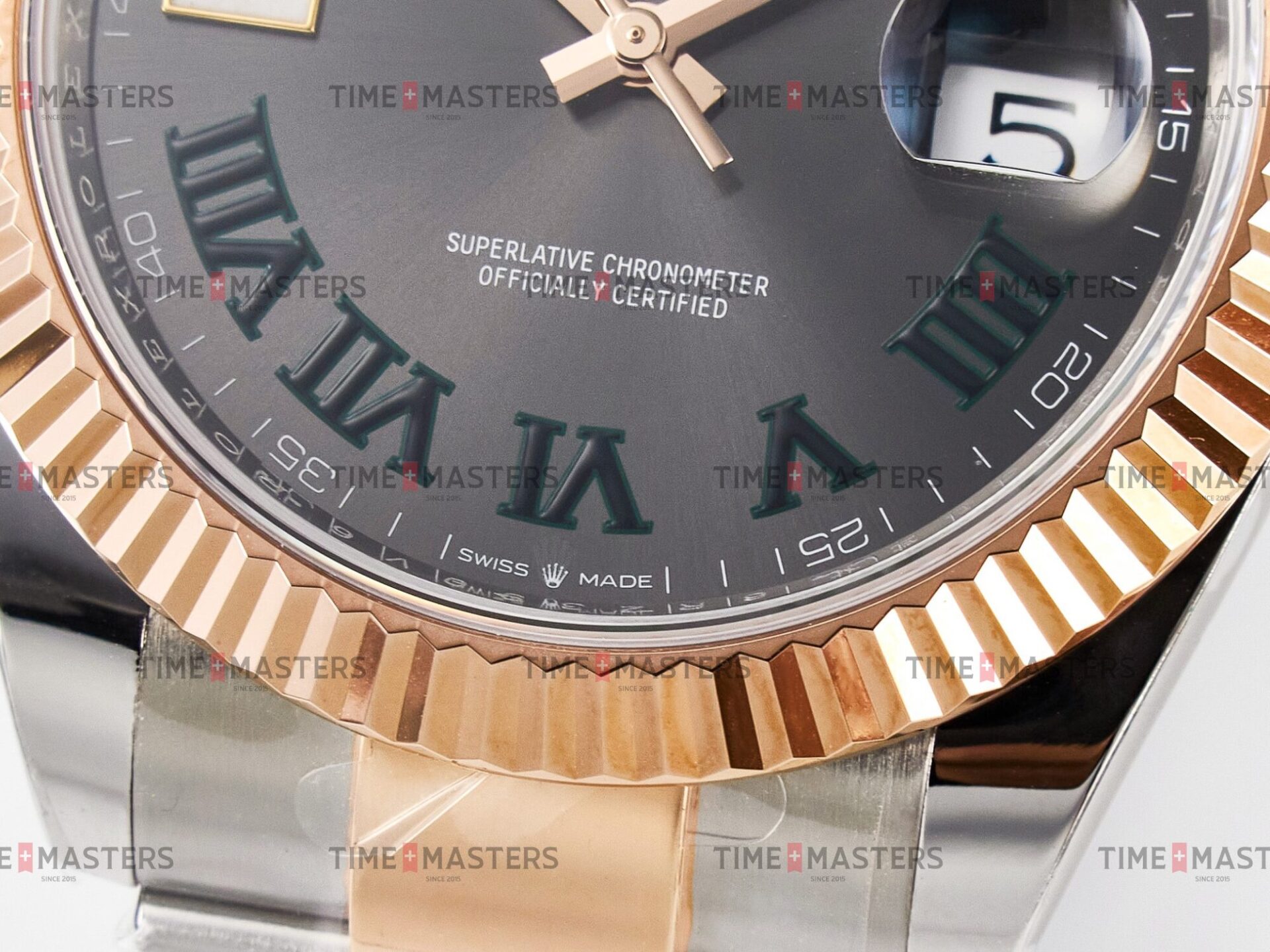 Rolex Datejust – 41 mm – טו טון רוז גולד רצועת אויסטר באזל משונן לוח ווימבלדון גימור קצה