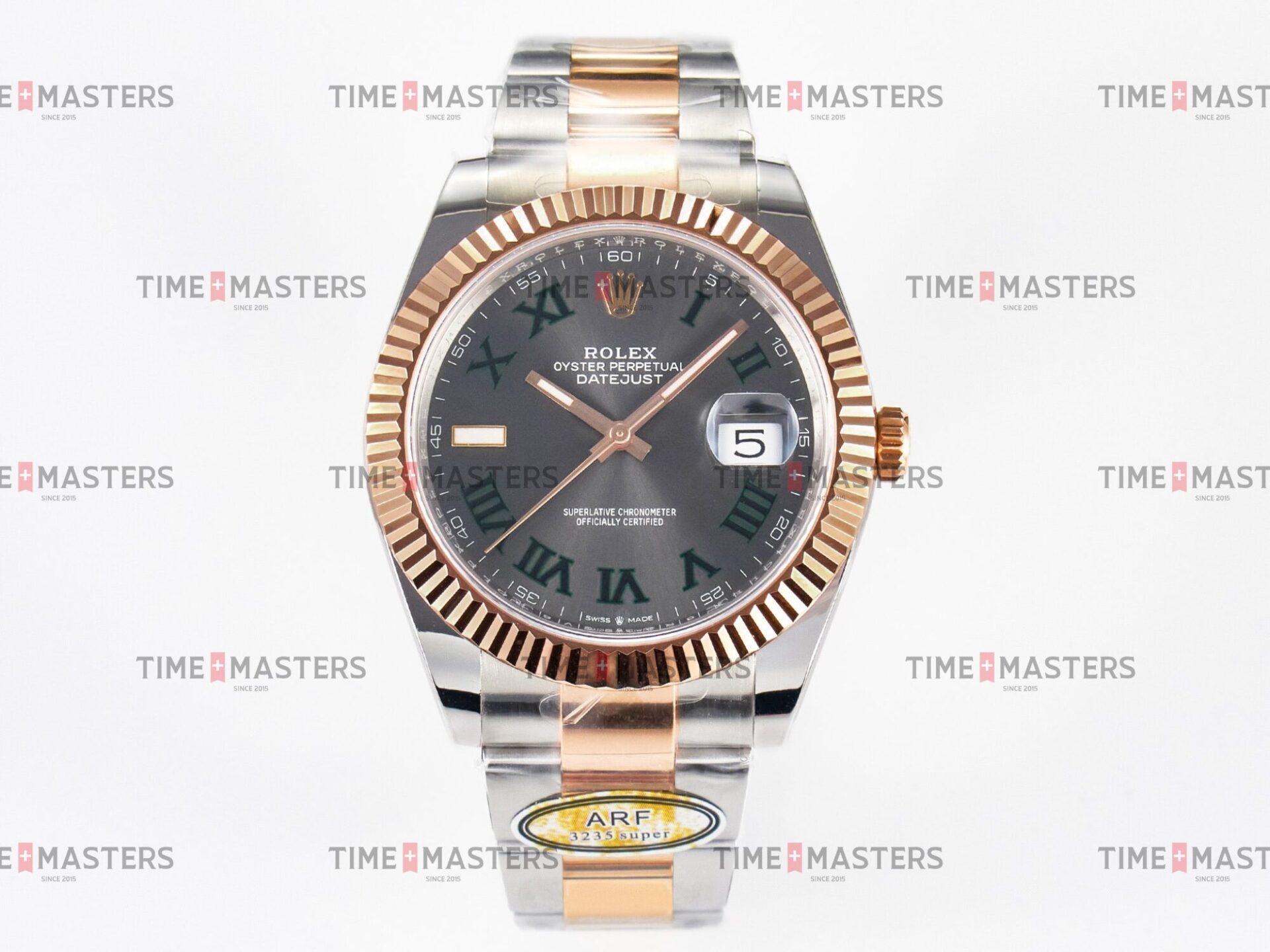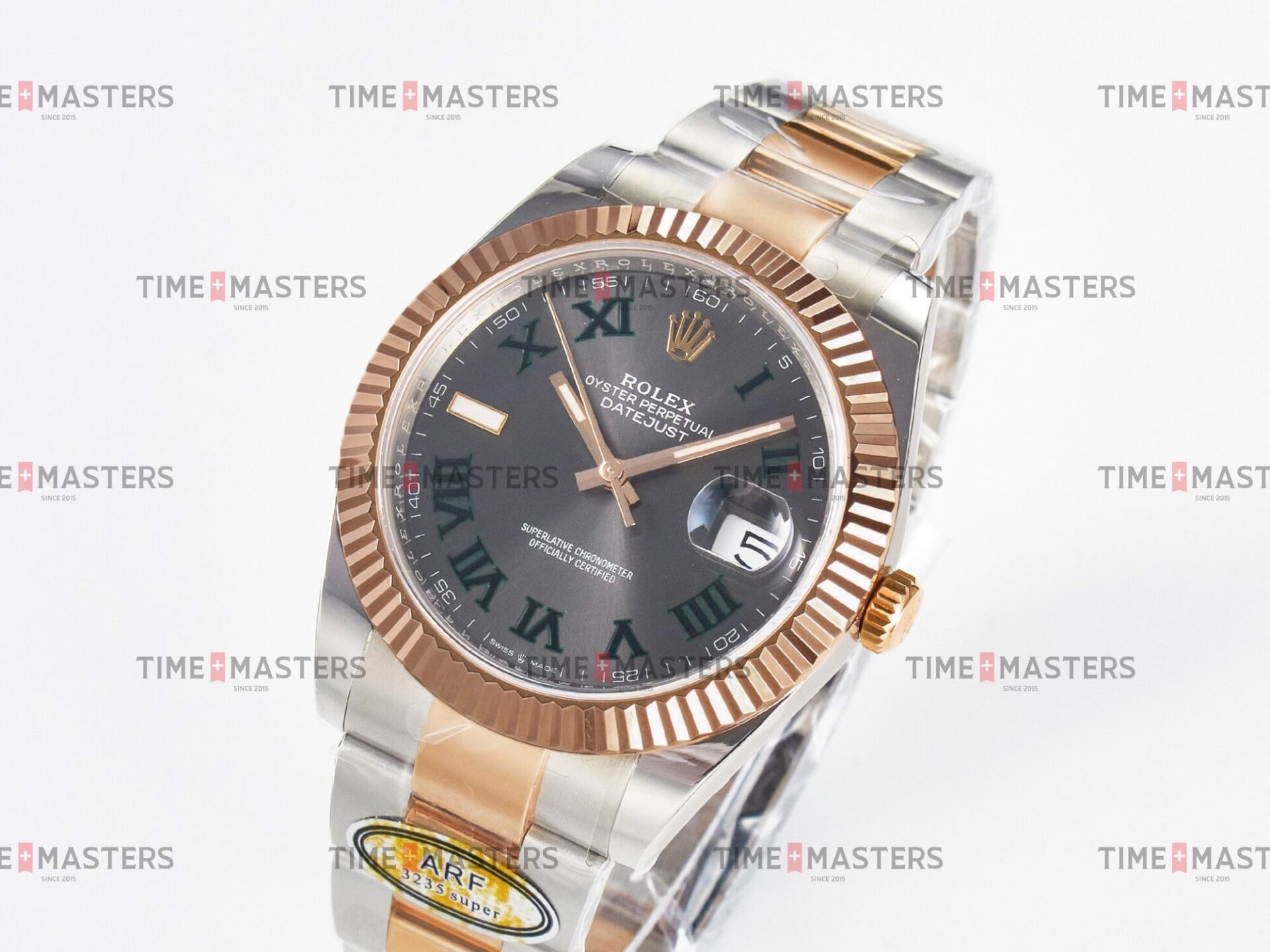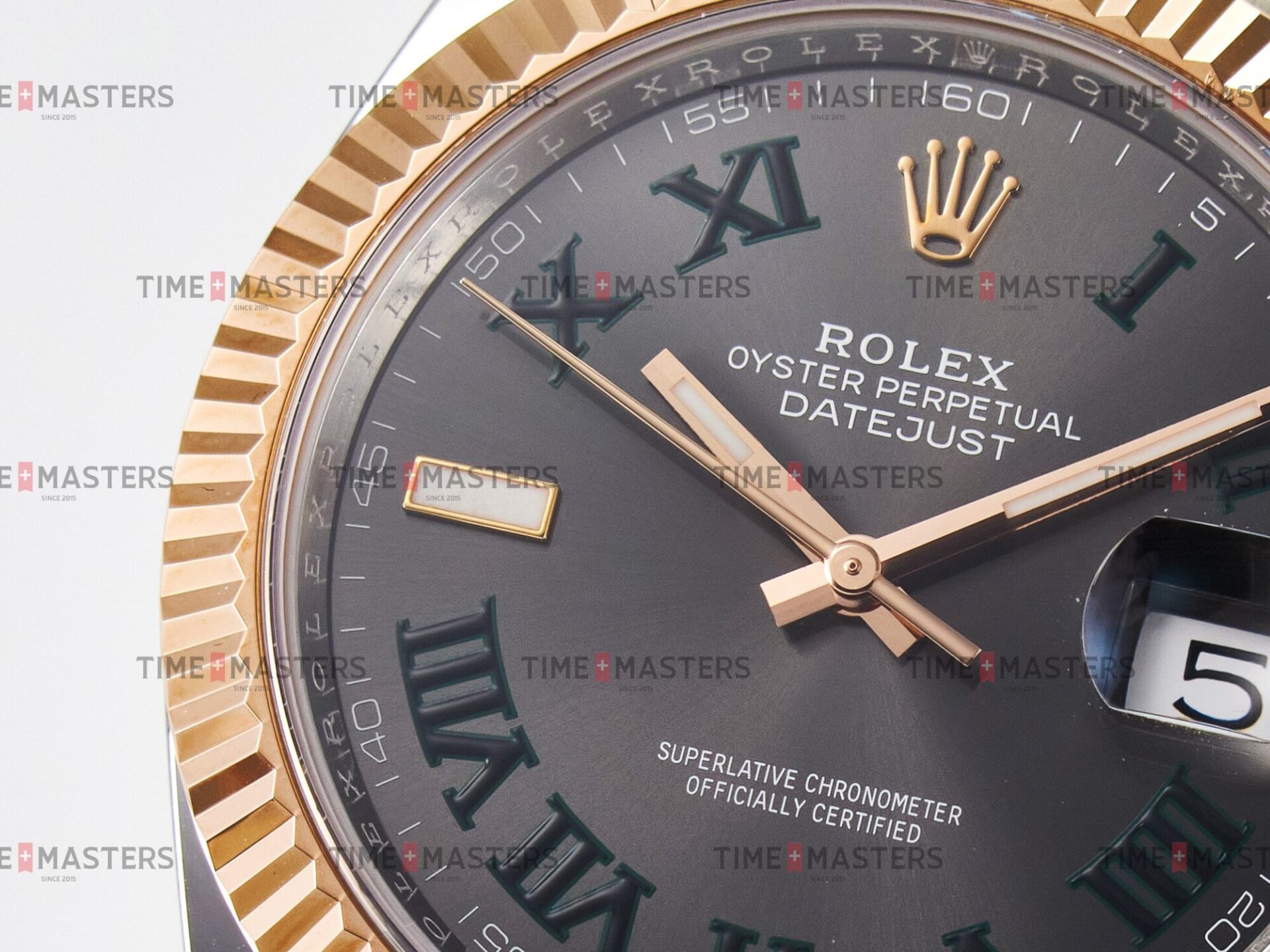 Rolex Datejust – 41 mm – טו טון רוז גולד רצועת אויסטר באזל משונן לוח ווימבלדון גימור קצה