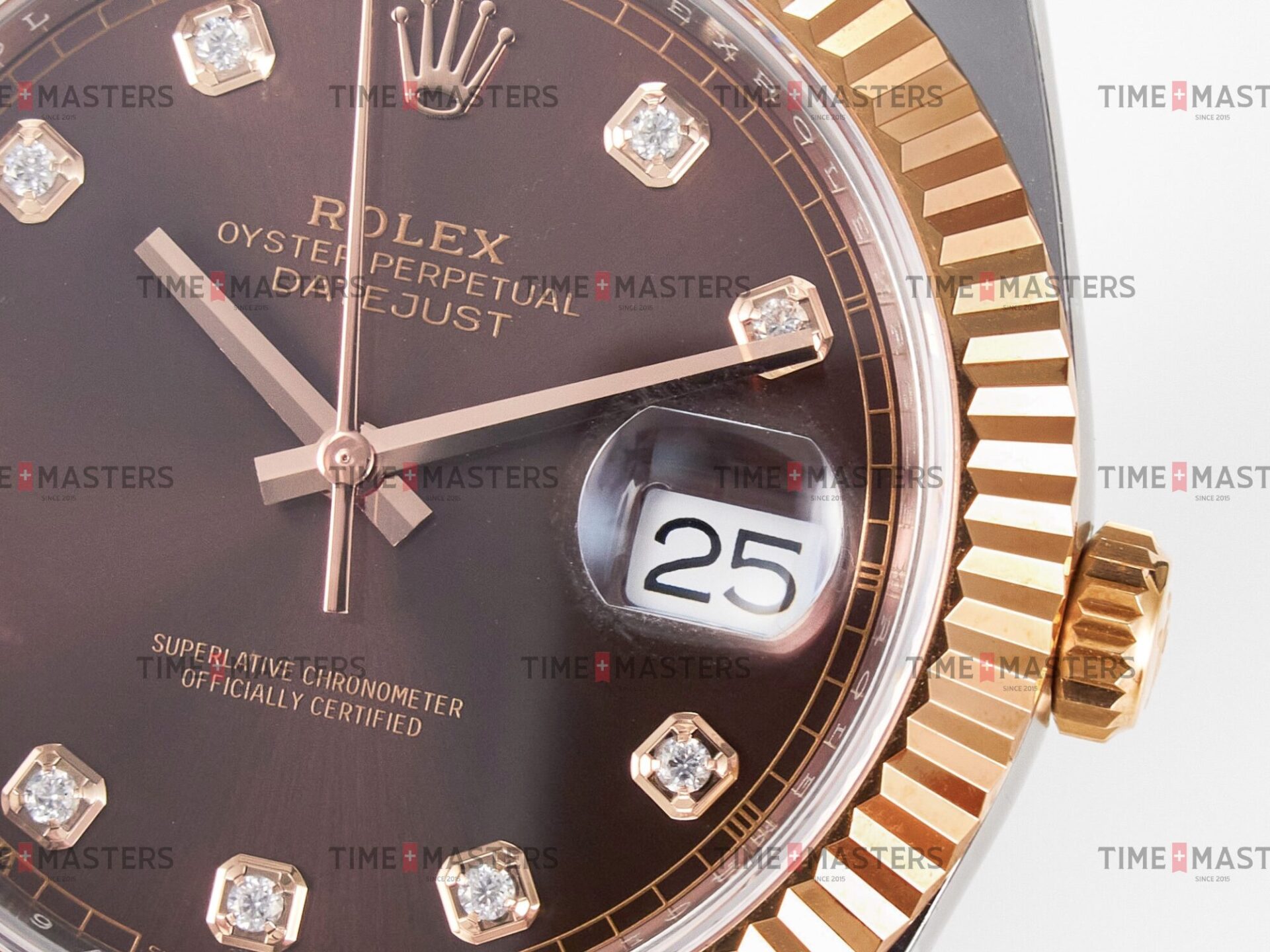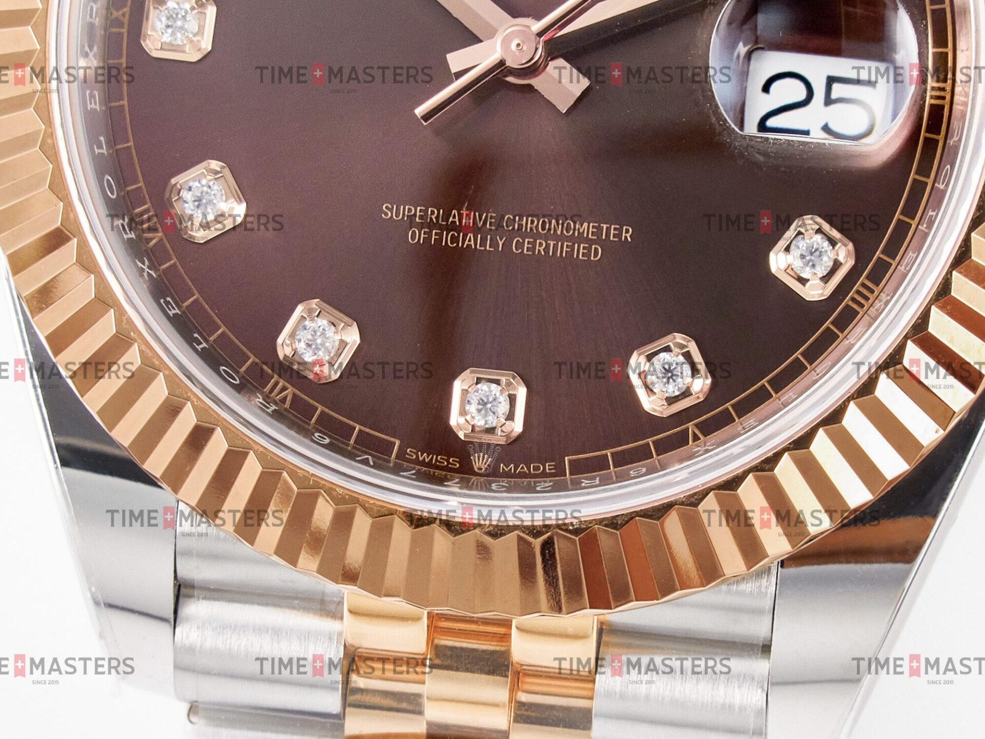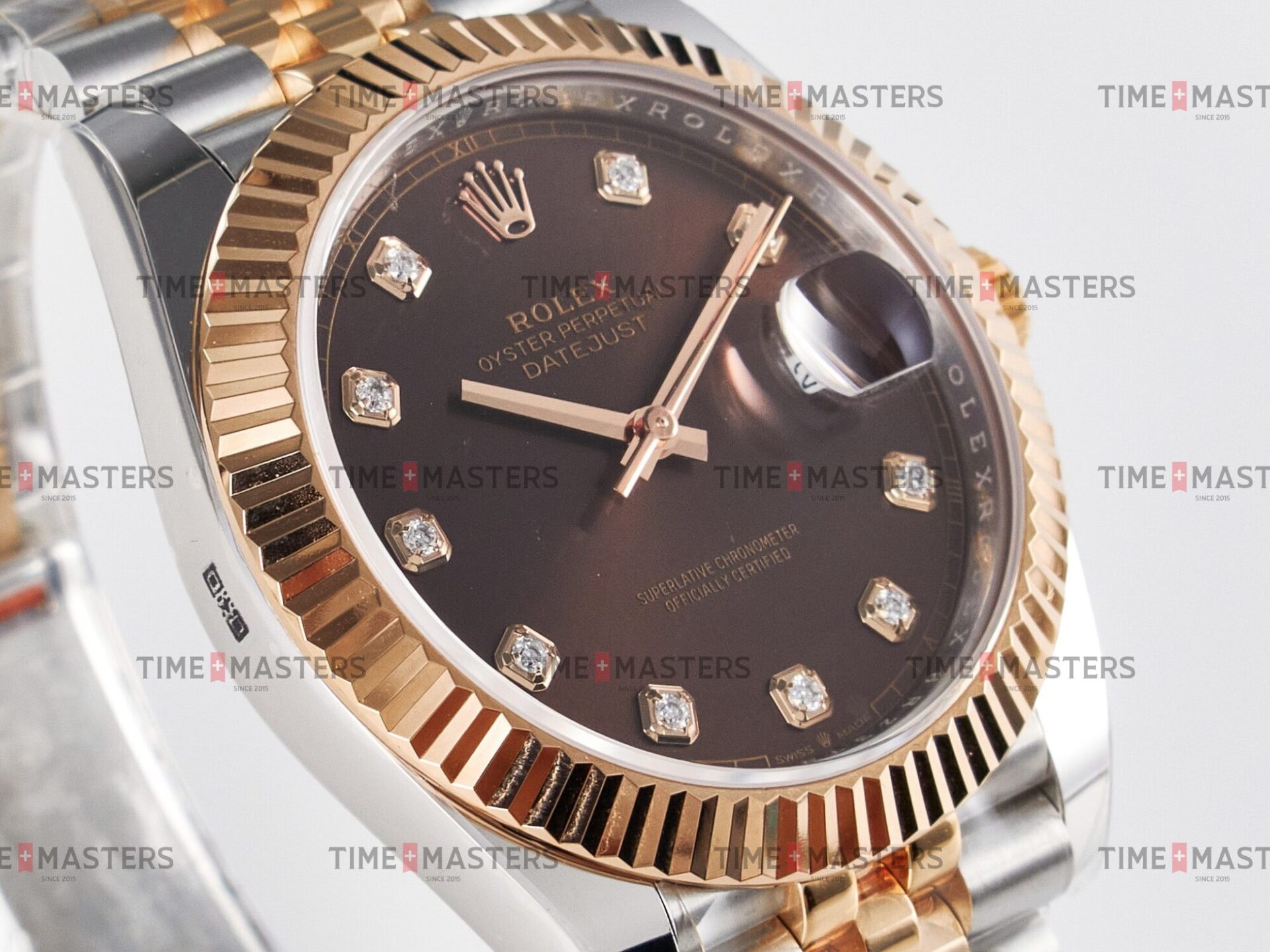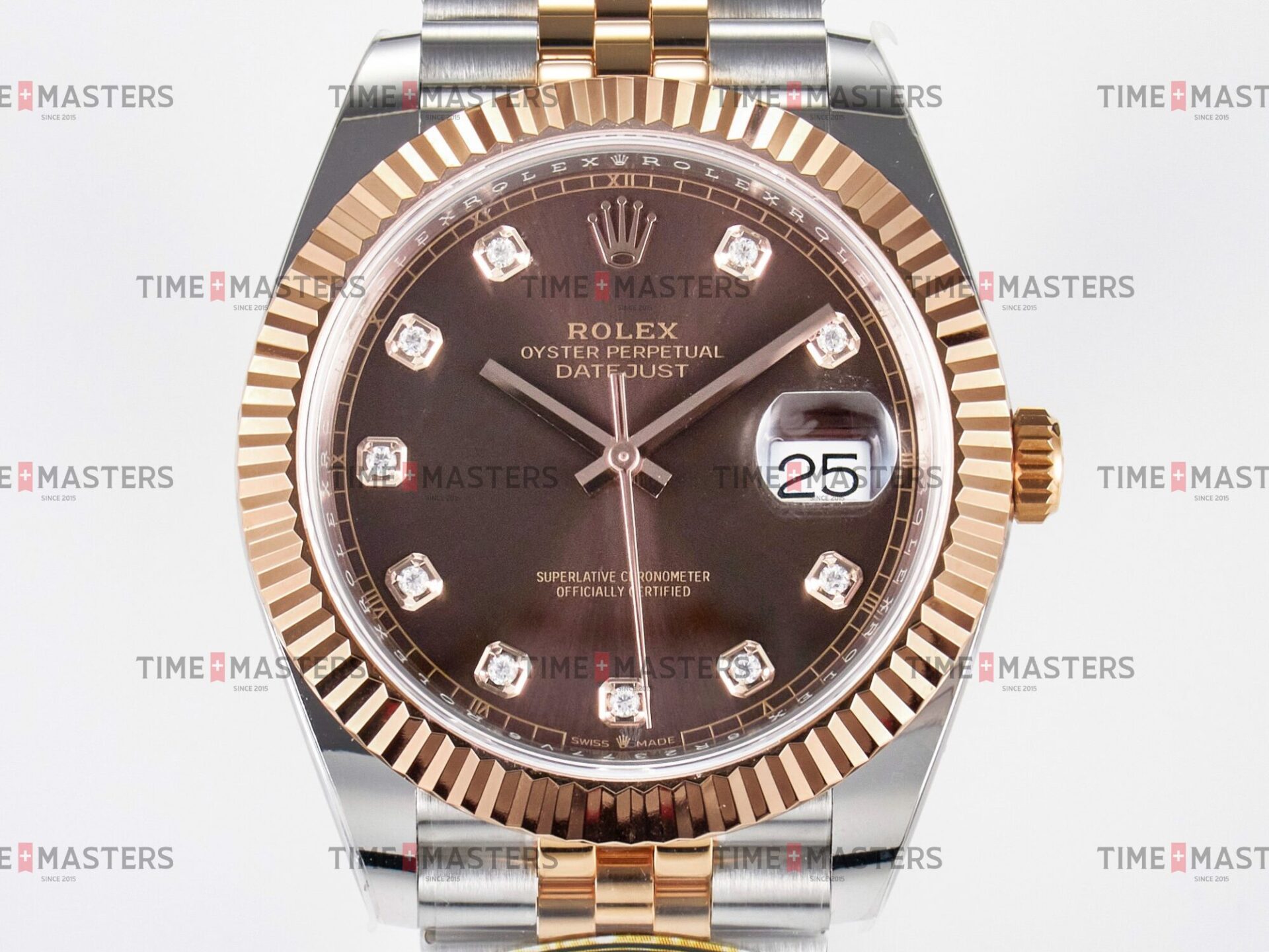 Rolex Datejust – 41 mm – טו טון רוז גולד רצועת ג'ובילי באזל משונן לוח שוקולד יהלומים גימור קצה