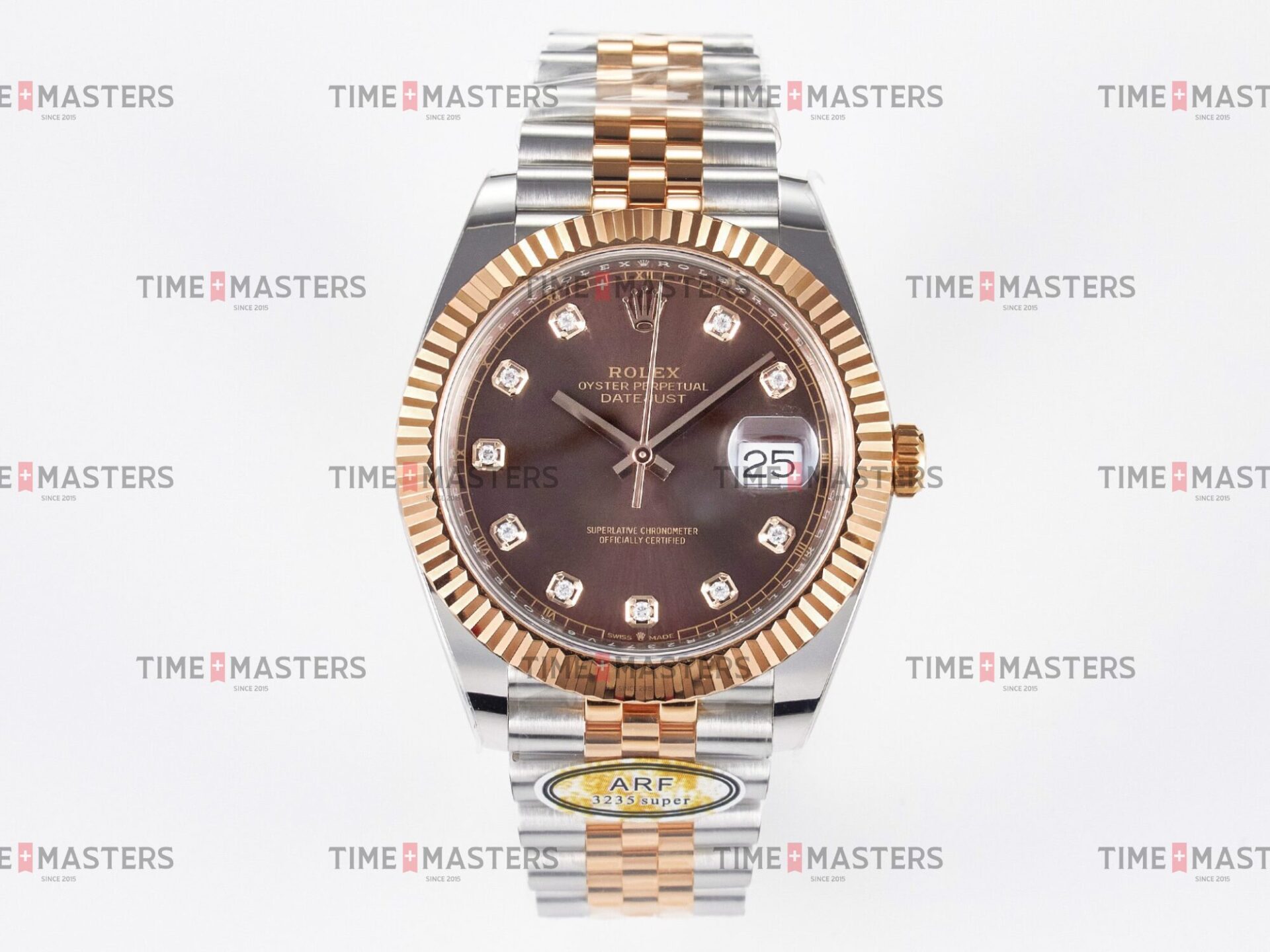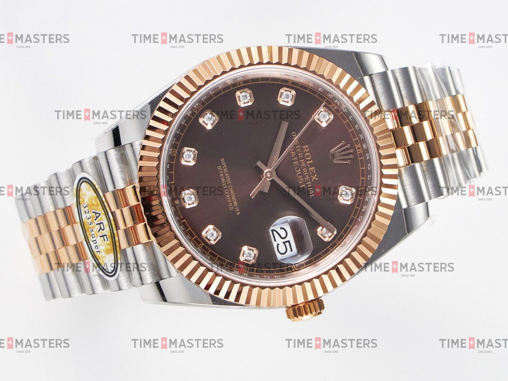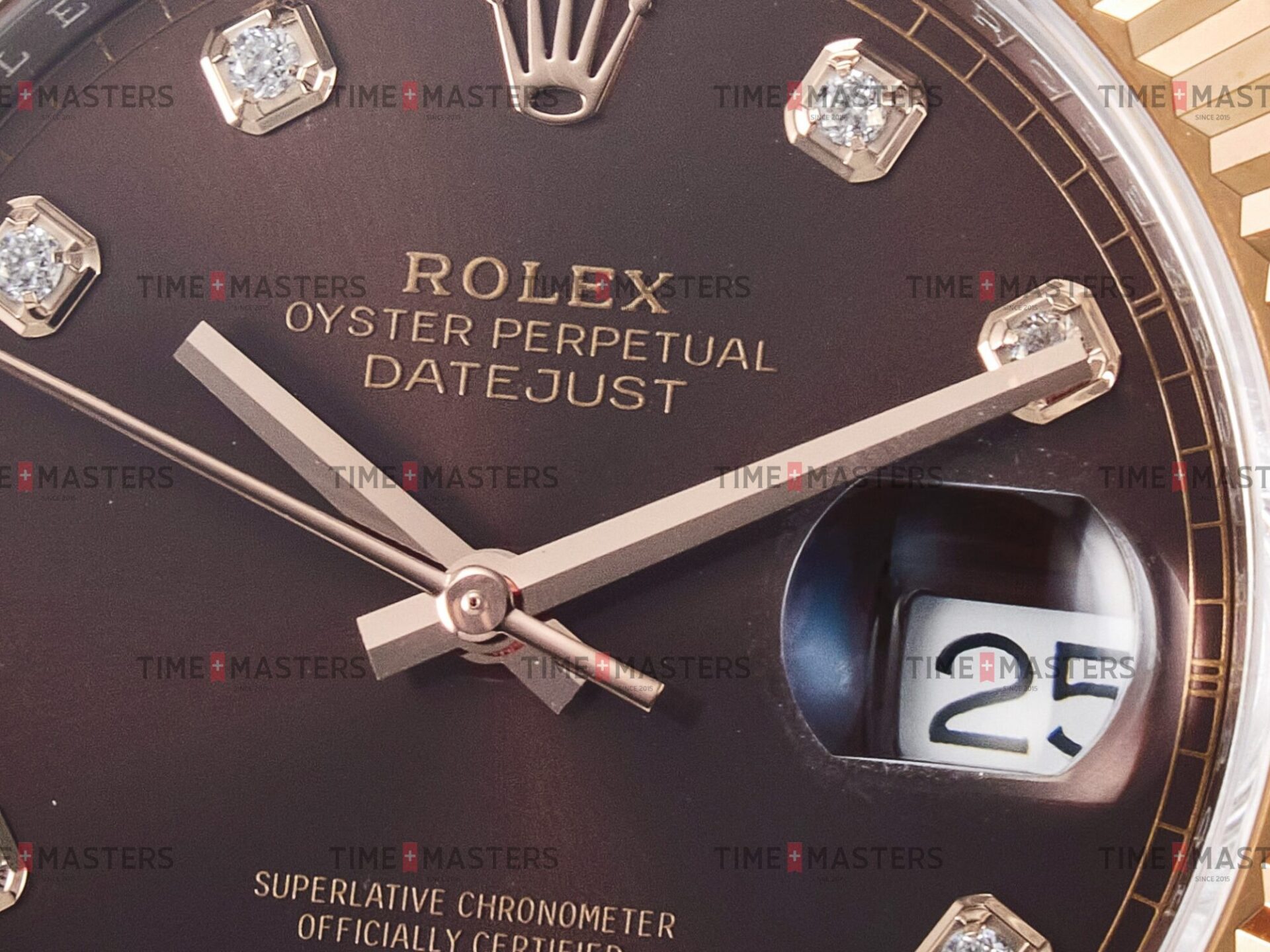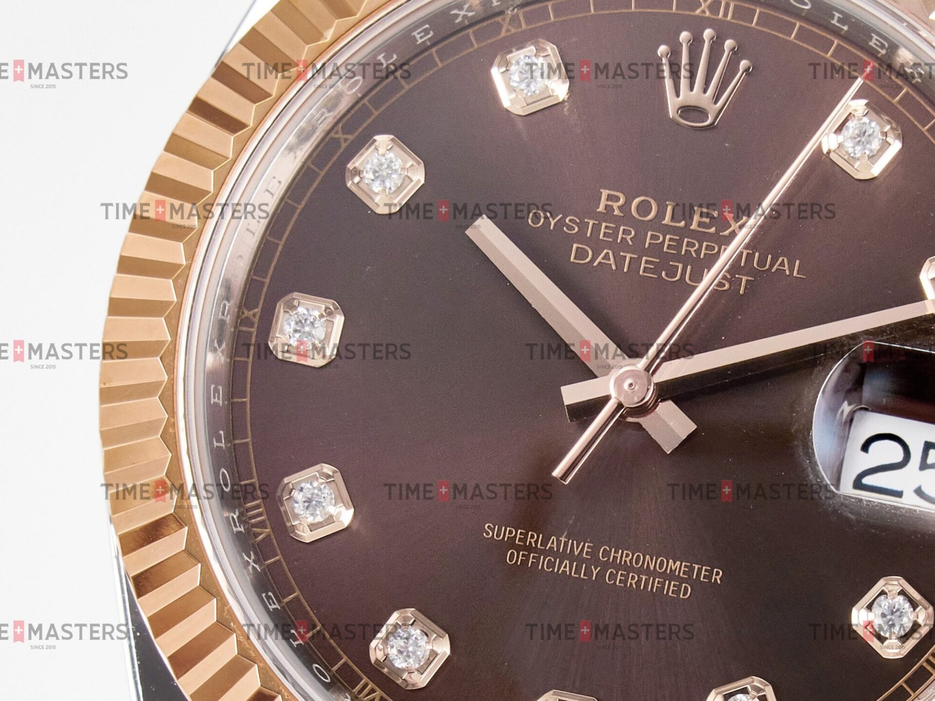 Rolex Datejust – 41 mm – טו טון רוז גולד רצועת ג'ובילי באזל משונן לוח שוקולד יהלומים גימור קצה