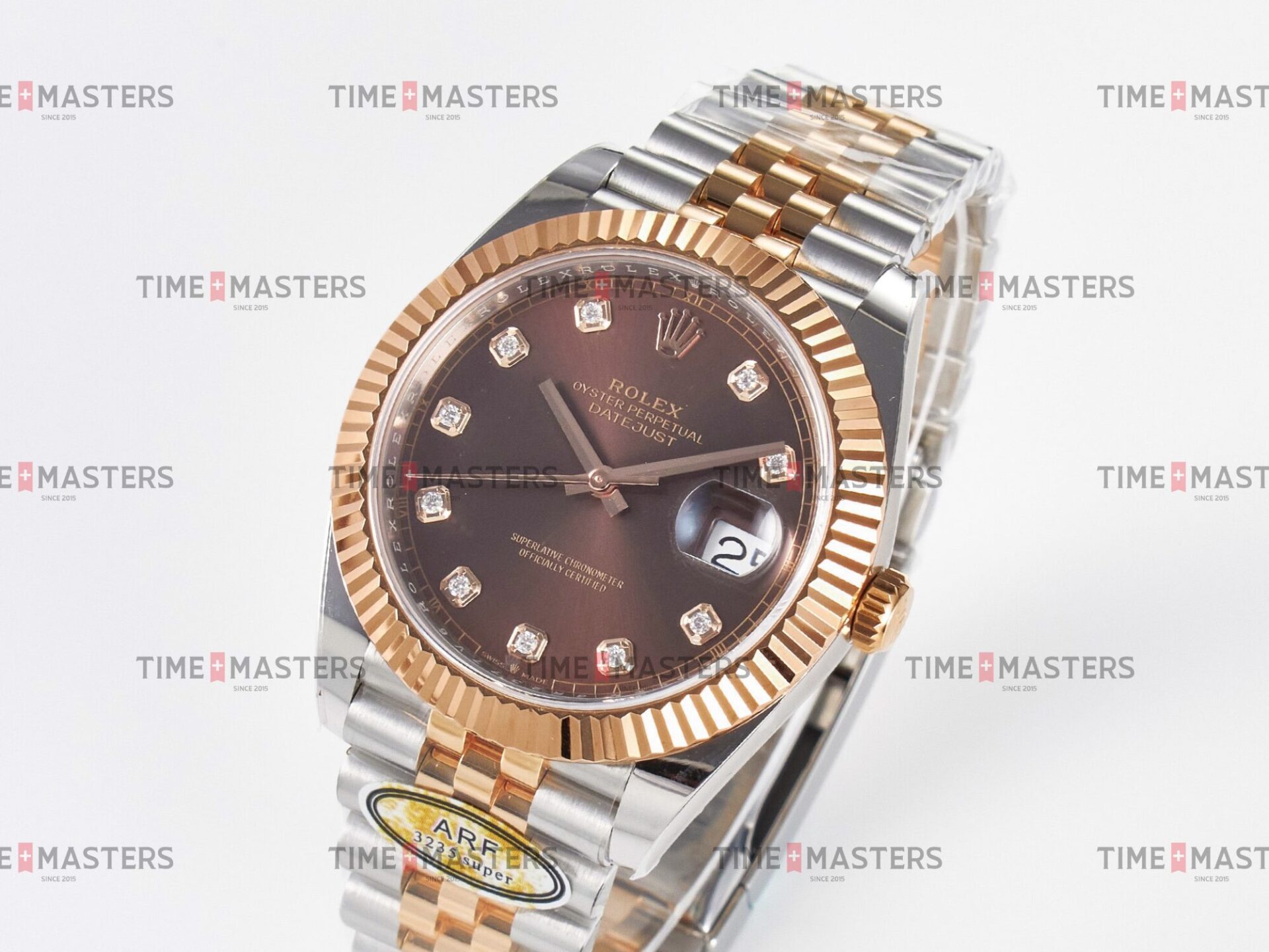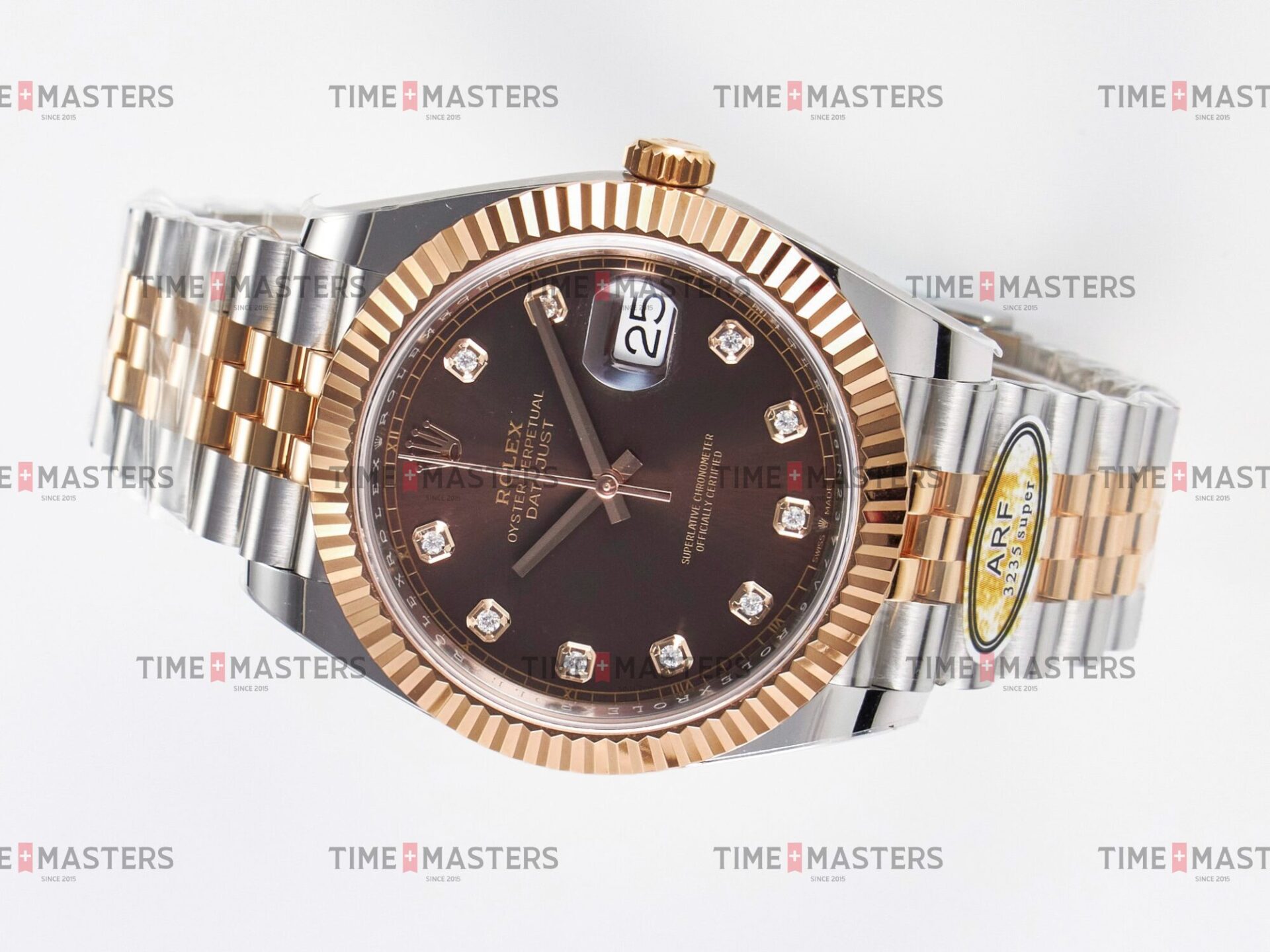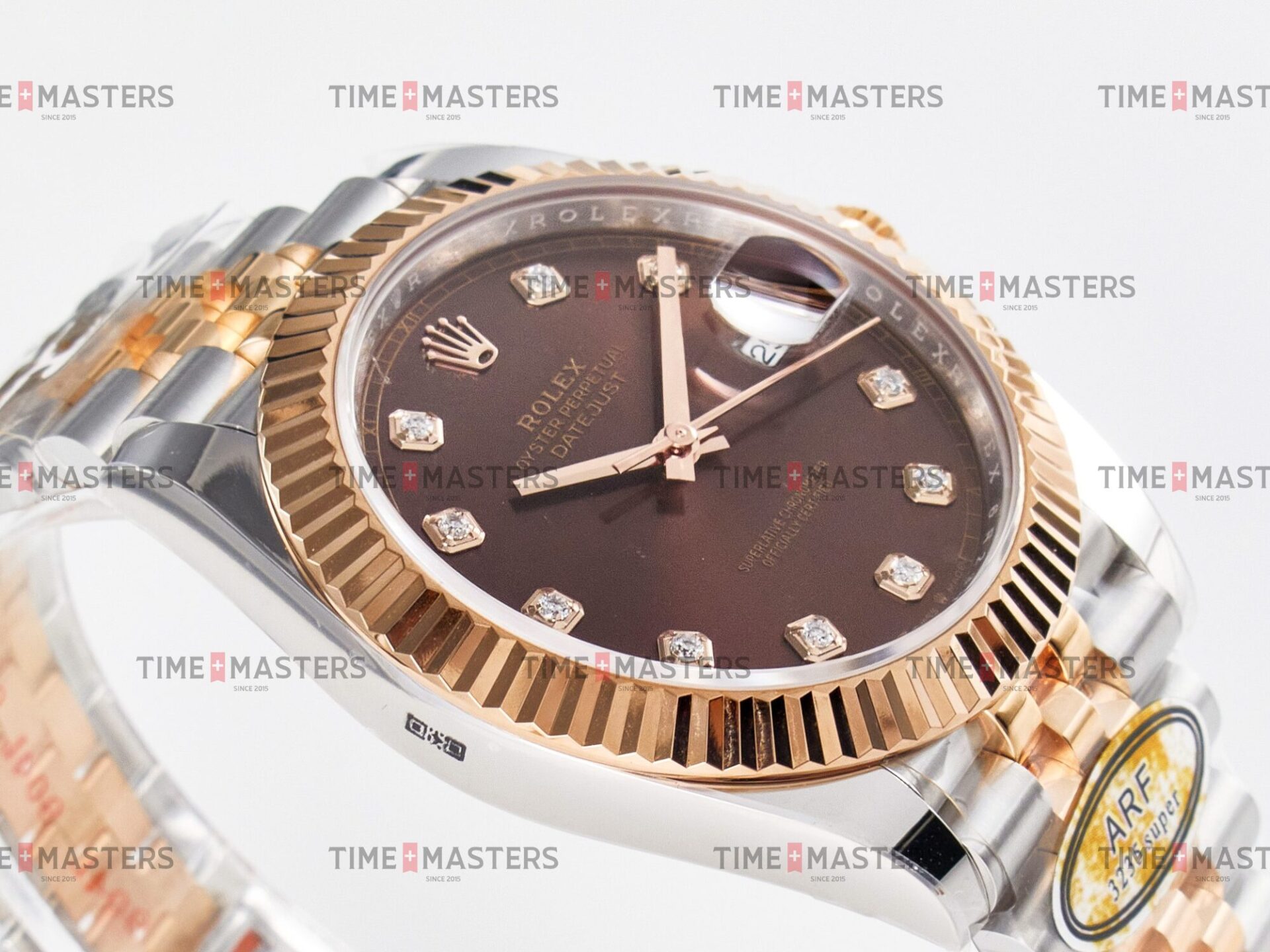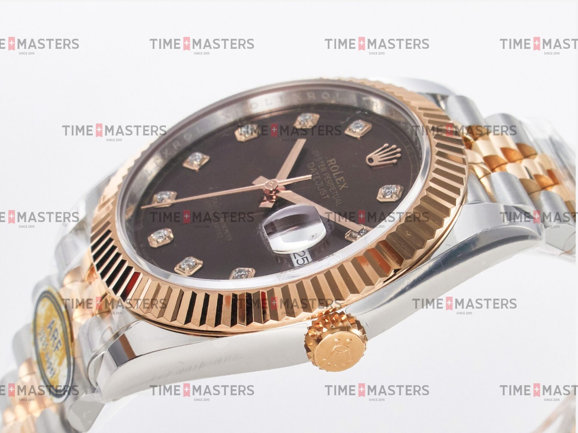 Rolex Datejust – 41 mm – טו טון רוז גולד רצועת ג'ובילי באזל משונן לוח שוקולד יהלומים גימור קצה