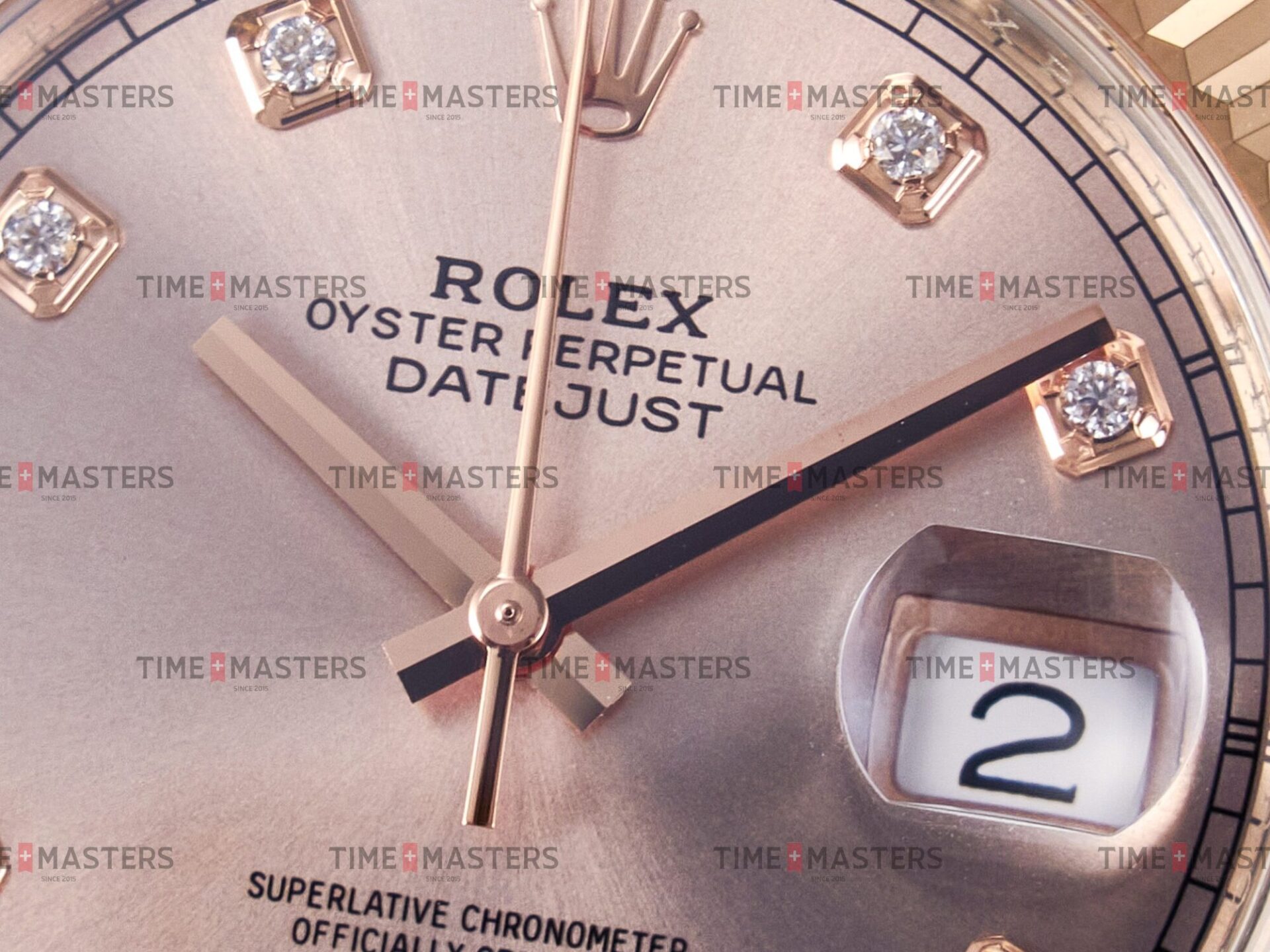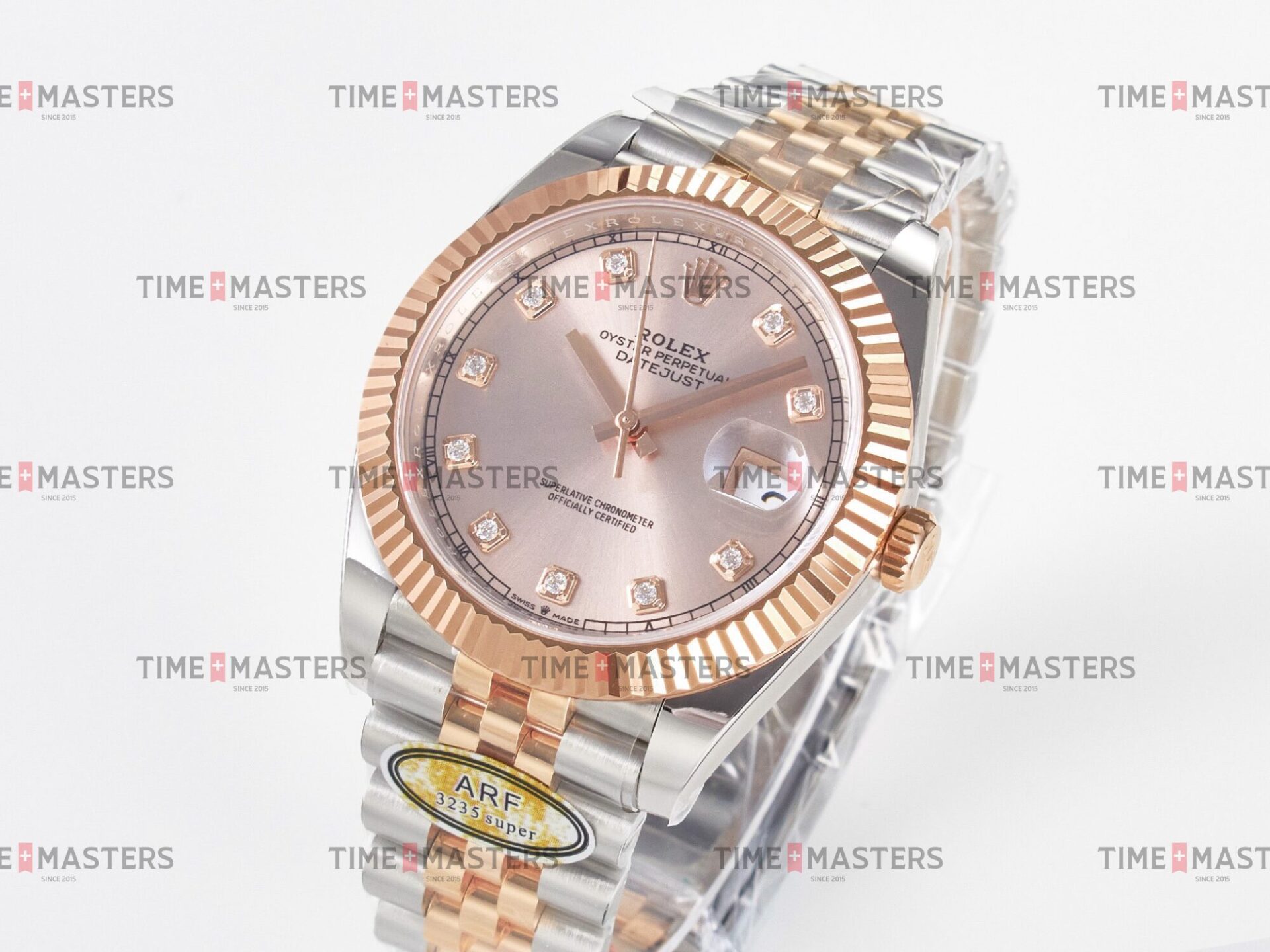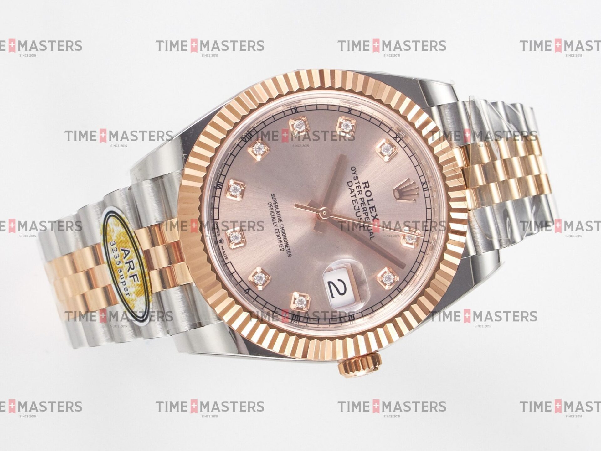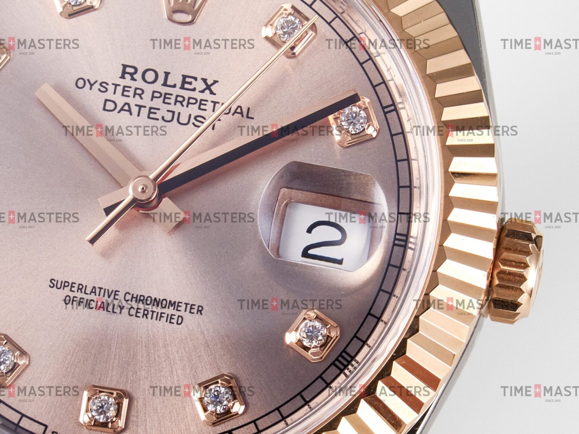 Rolex Datejust – 41 mm – טו טון רוז גולד רצועת ג'ובילי באזל משונן לוח סאנדסט יהלומים גימור קצה