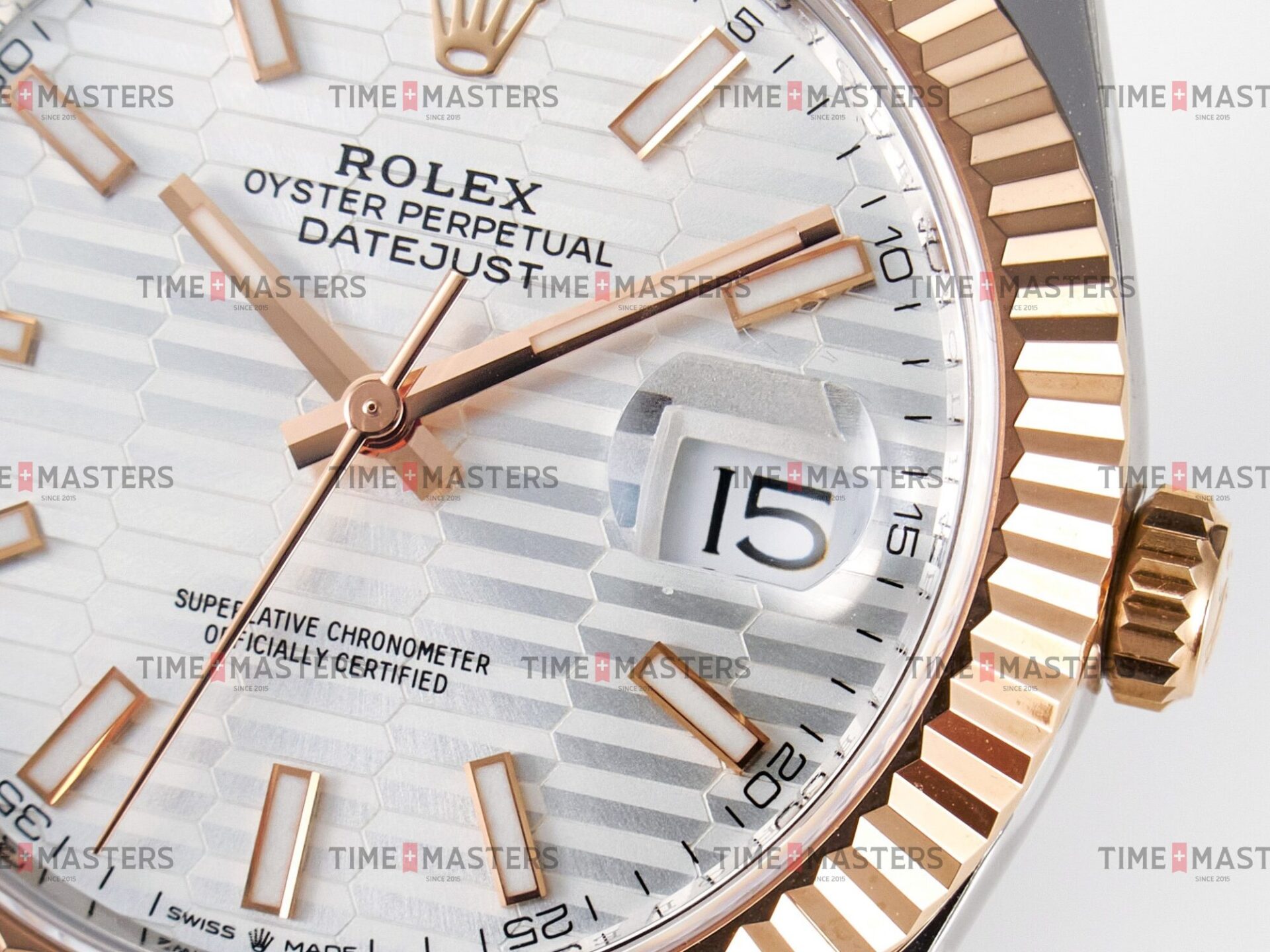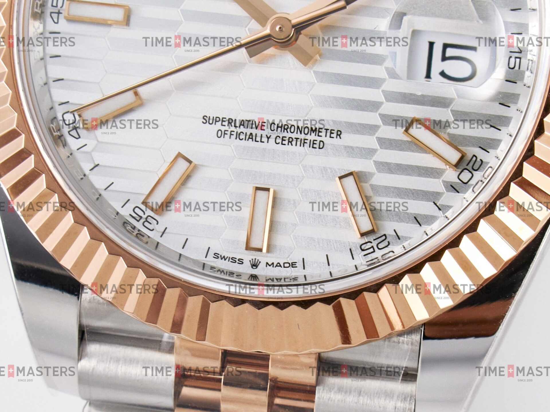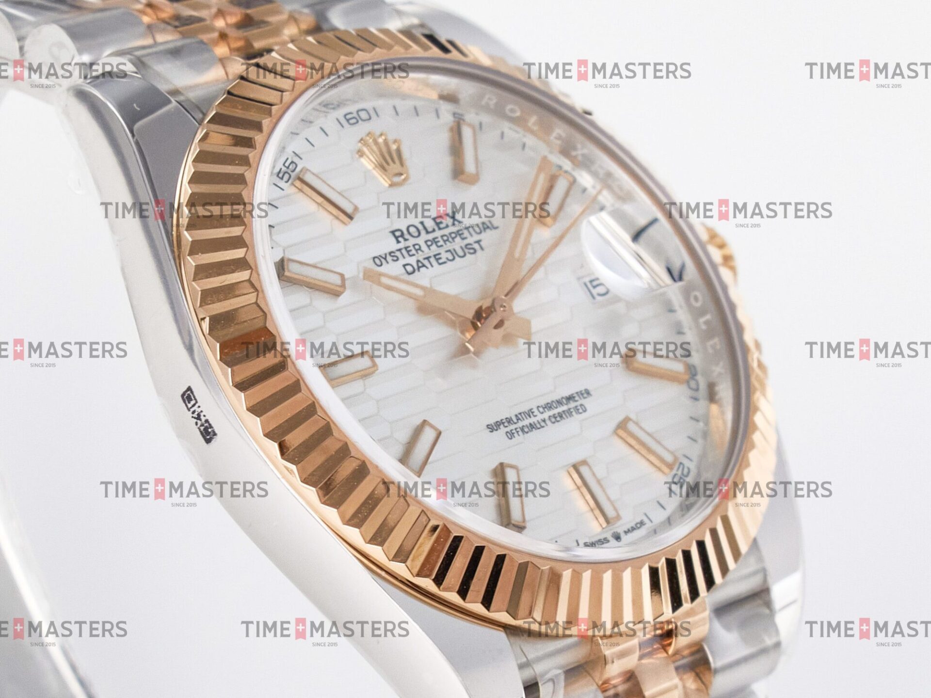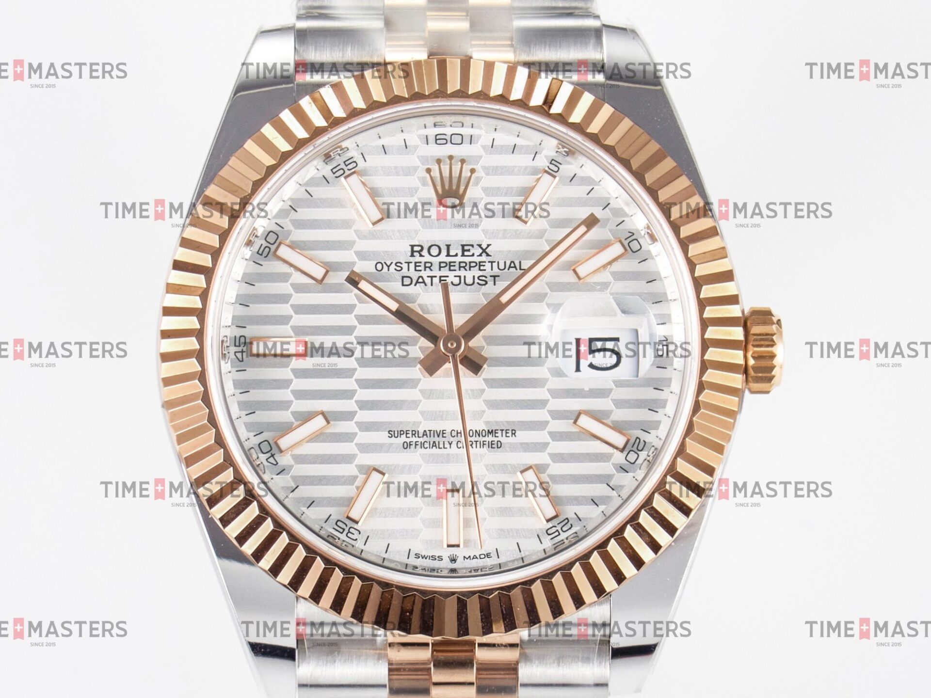 Rolex Datejust – 41 mm – טו טון רוז גולד רצועת ג'ובילי באזל משונן לוח מוטיף סילבר גימור קצה