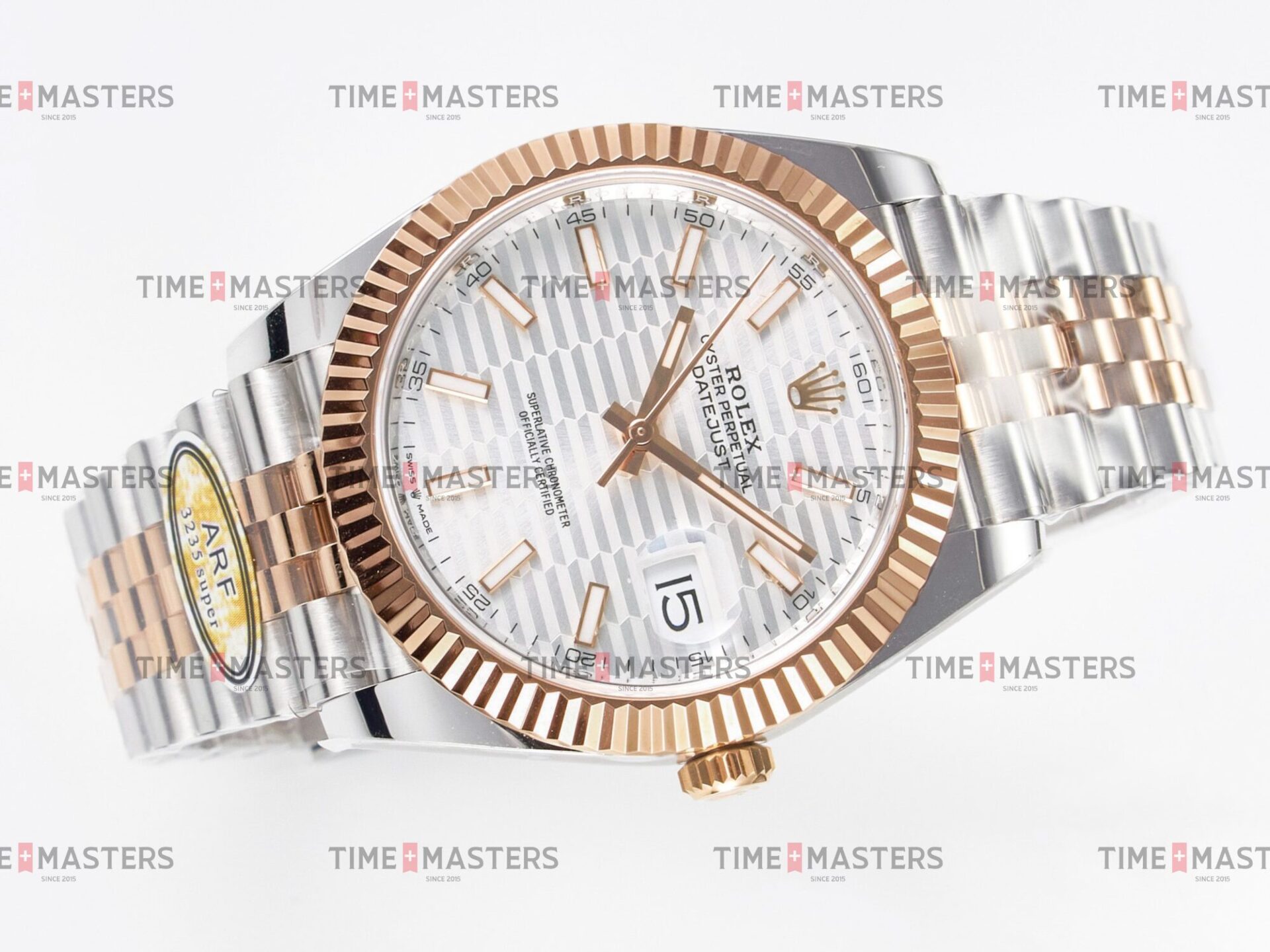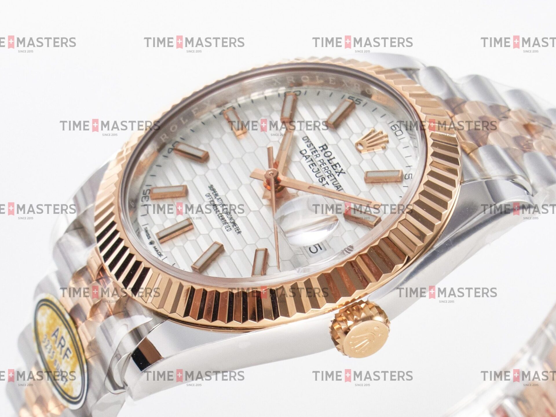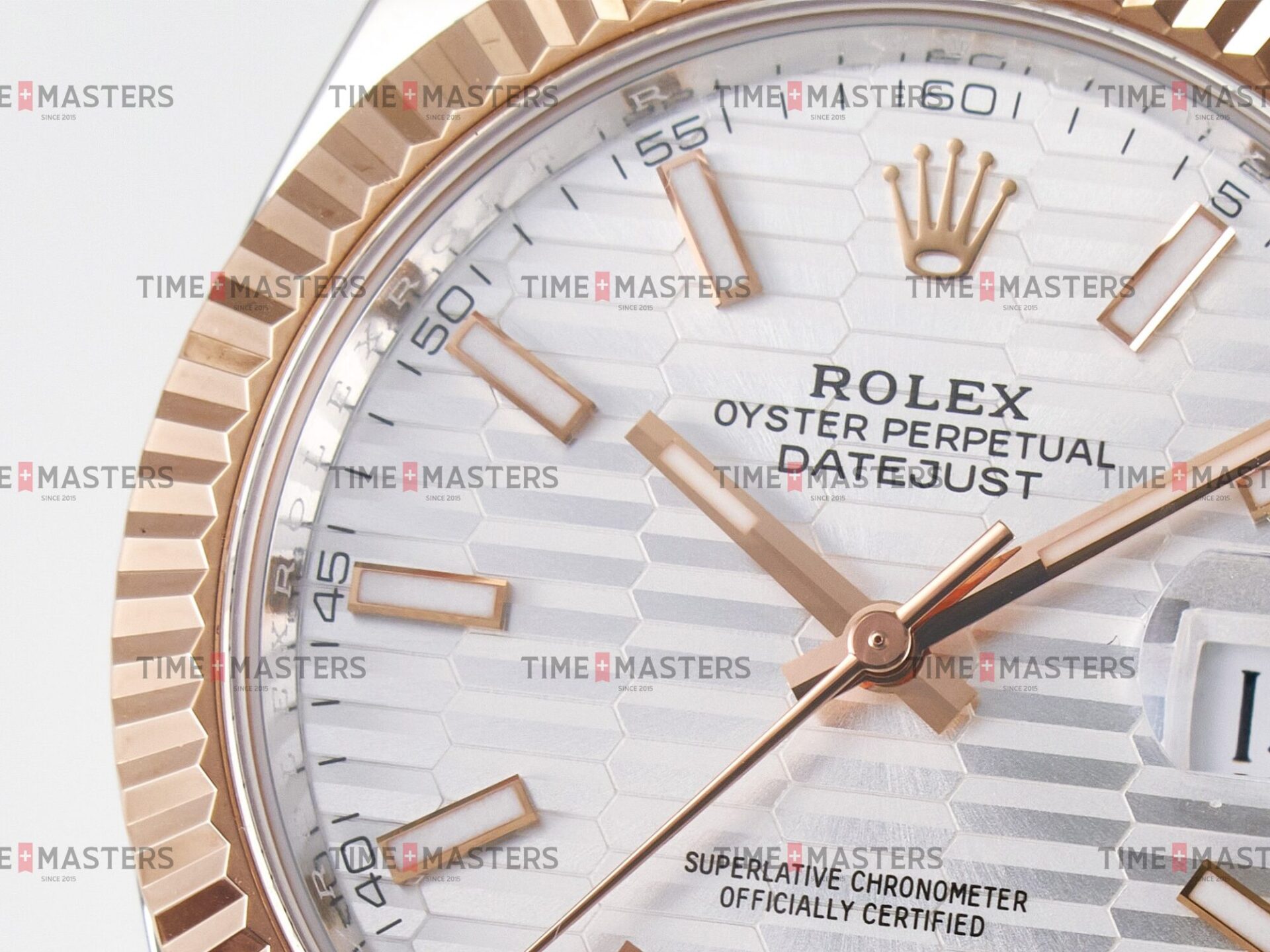 Rolex Datejust – 41 mm – טו טון רוז גולד רצועת ג'ובילי באזל משונן לוח מוטיף סילבר גימור קצה
