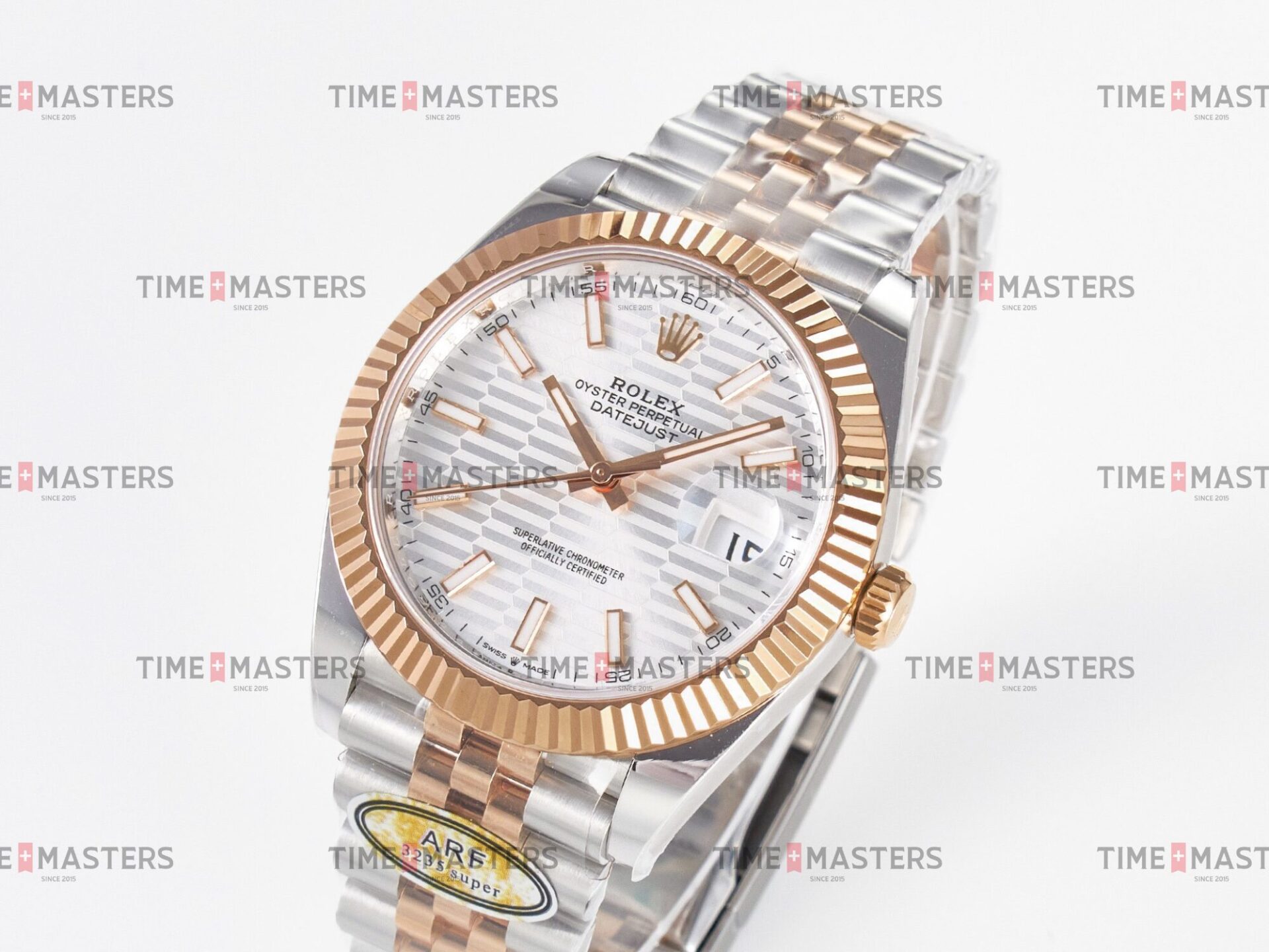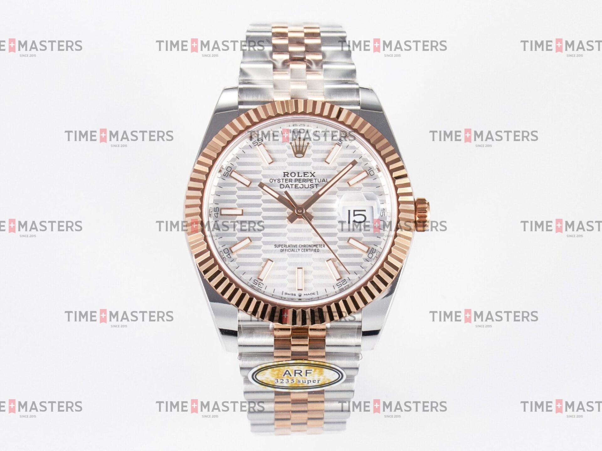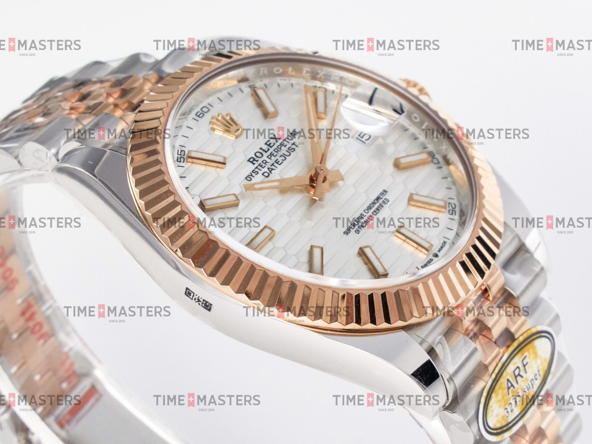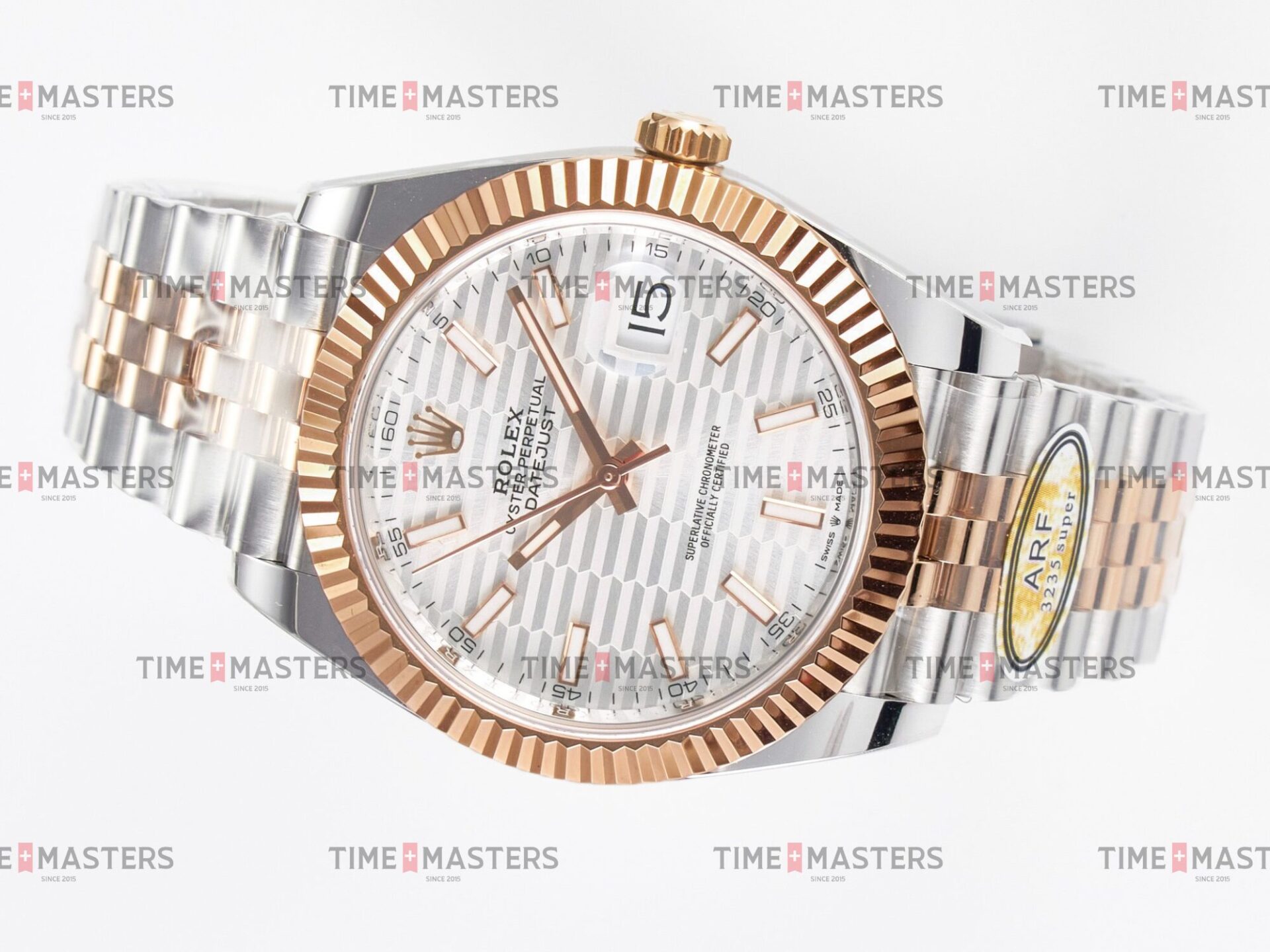 Rolex Datejust – 41 mm – טו טון רוז גולד רצועת ג'ובילי באזל משונן לוח מוטיף סילבר גימור קצה
