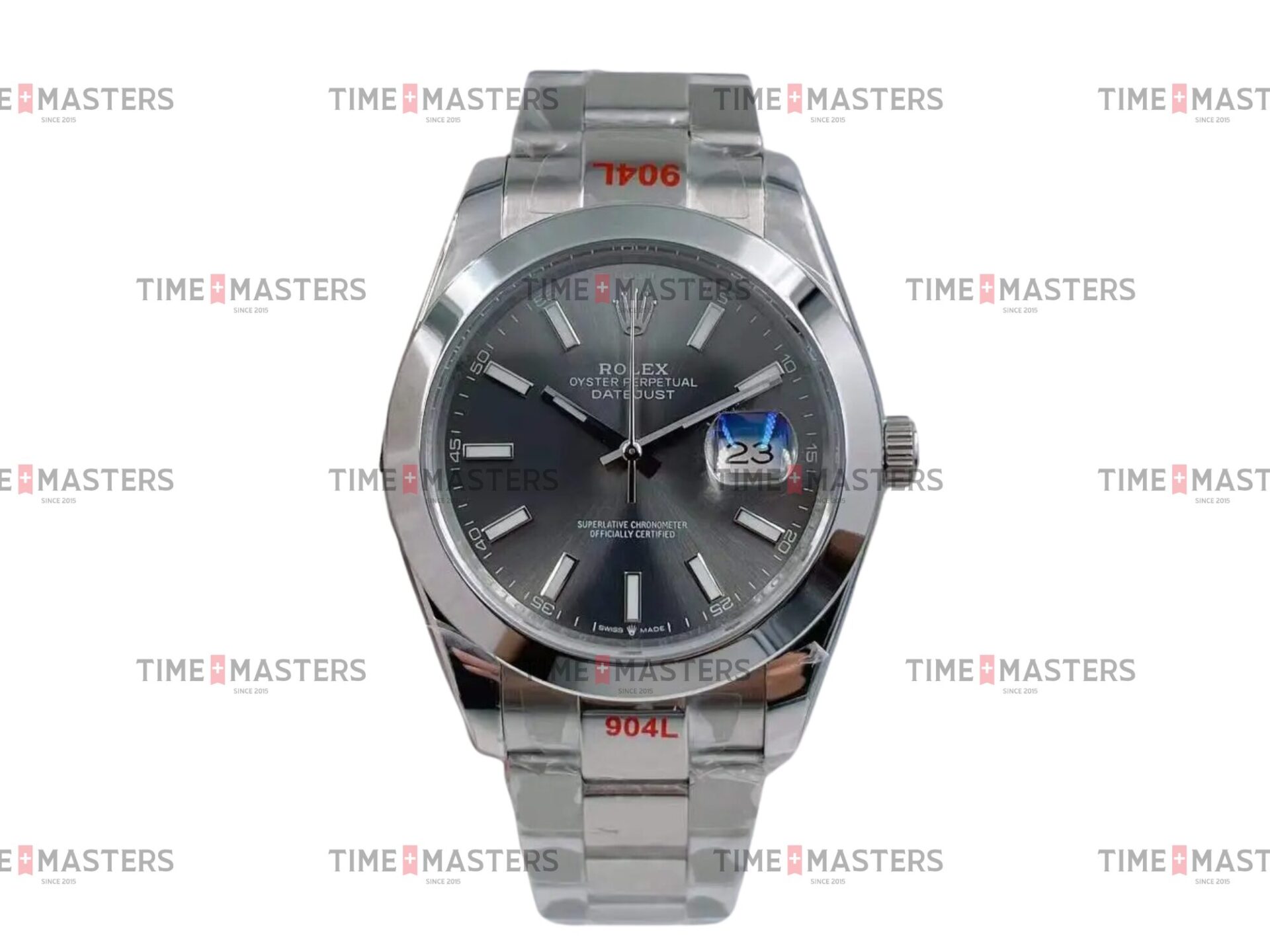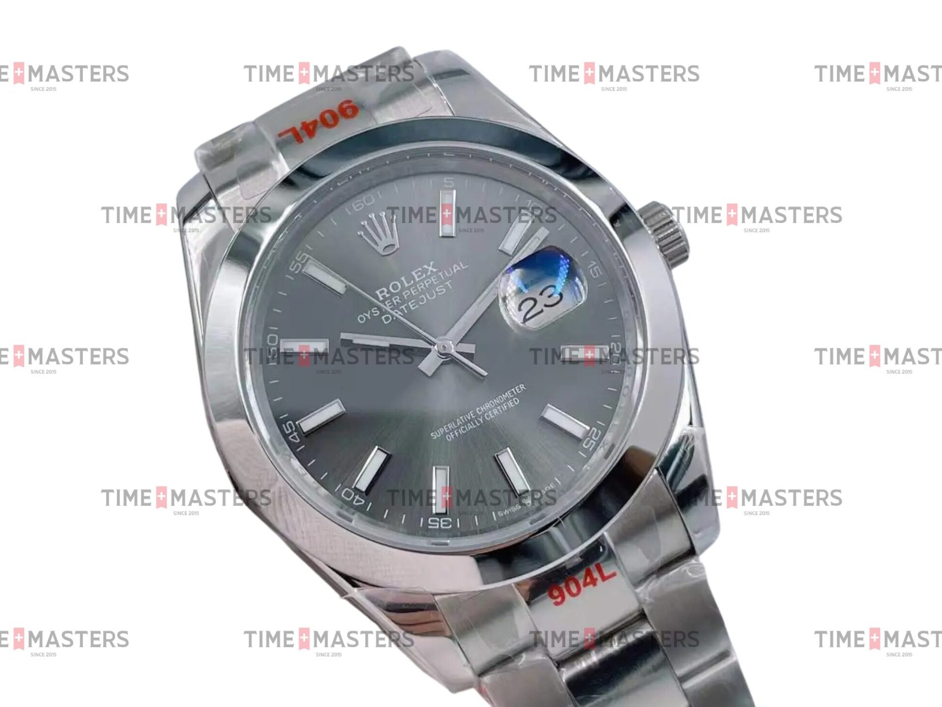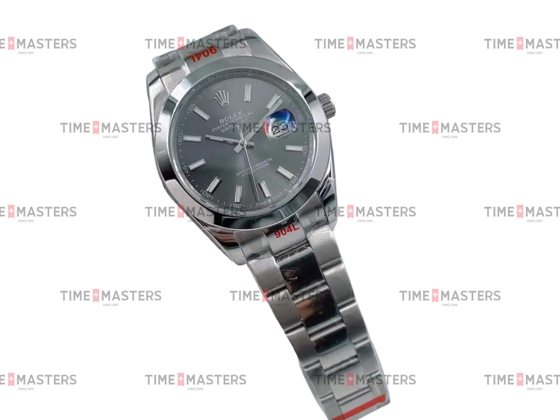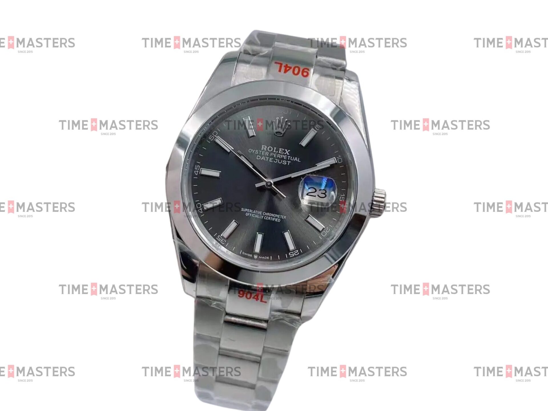 Rolex Datejust – 41 mm – סילבר רצועת אויסטר באזל חלק לוח שחור גימור שוויצרי
