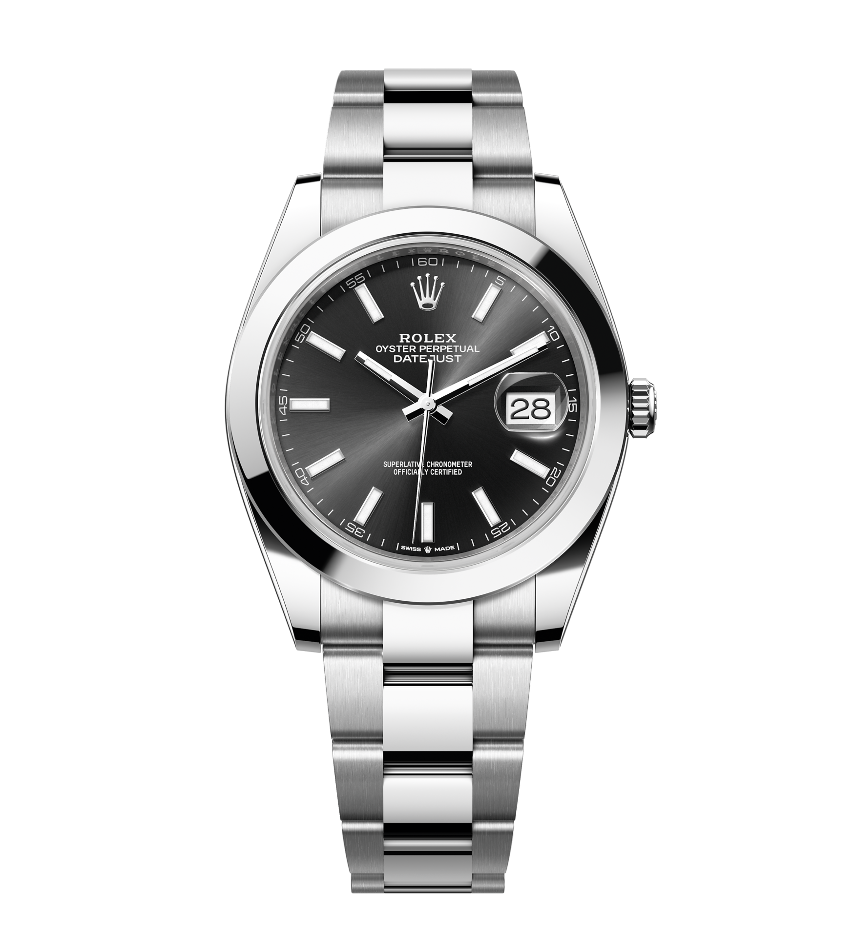 Rolex Datejust – 41 mm – פלדה רצועת אויסטר באזל חלק לוח שחור גימור קצה