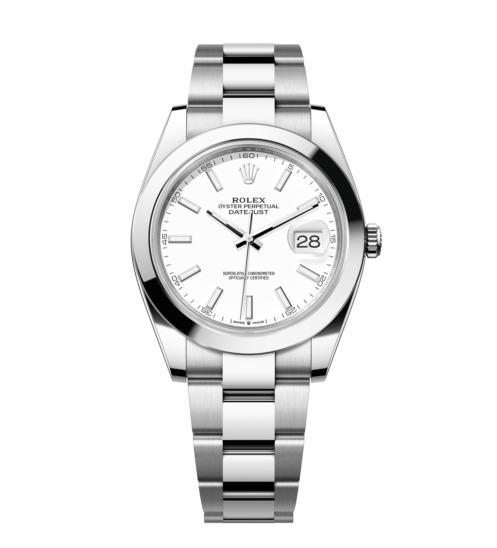 Rolex Datejust – 41 mm – פלדה רצועת אויסטר באזל חלק לוח לבן גימור קצה