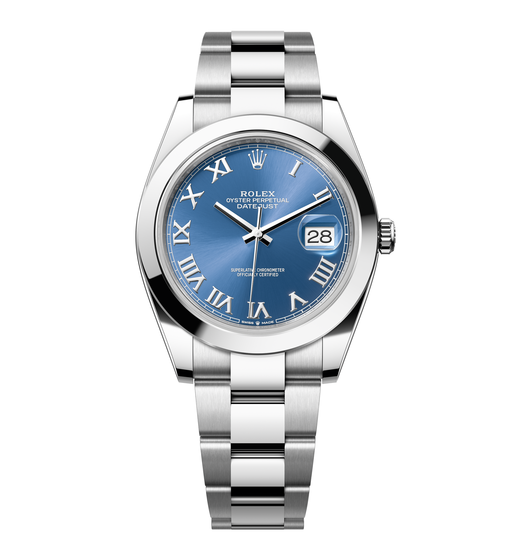 Rolex Datejust – 41 mm – פלדה רצועת אויסטר באזל חלק לוח כחול רומי גימור קצה