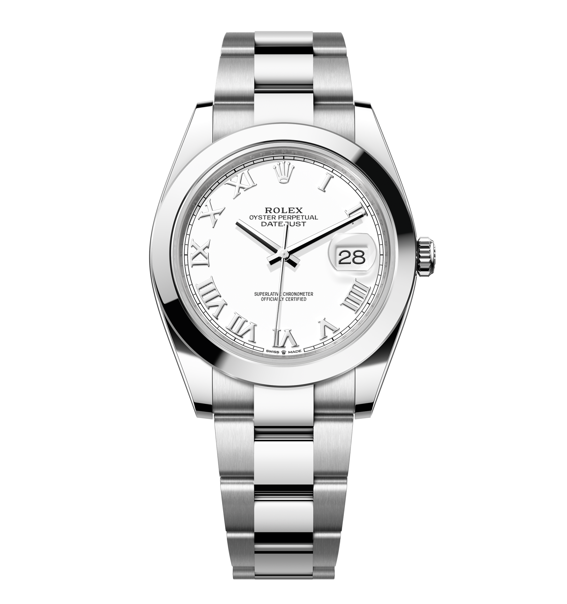 Rolex Datejust – 41 mm – פלדה רצועת אויסטר באזל חלק לוח לבן רומי גימור שוויצרי
