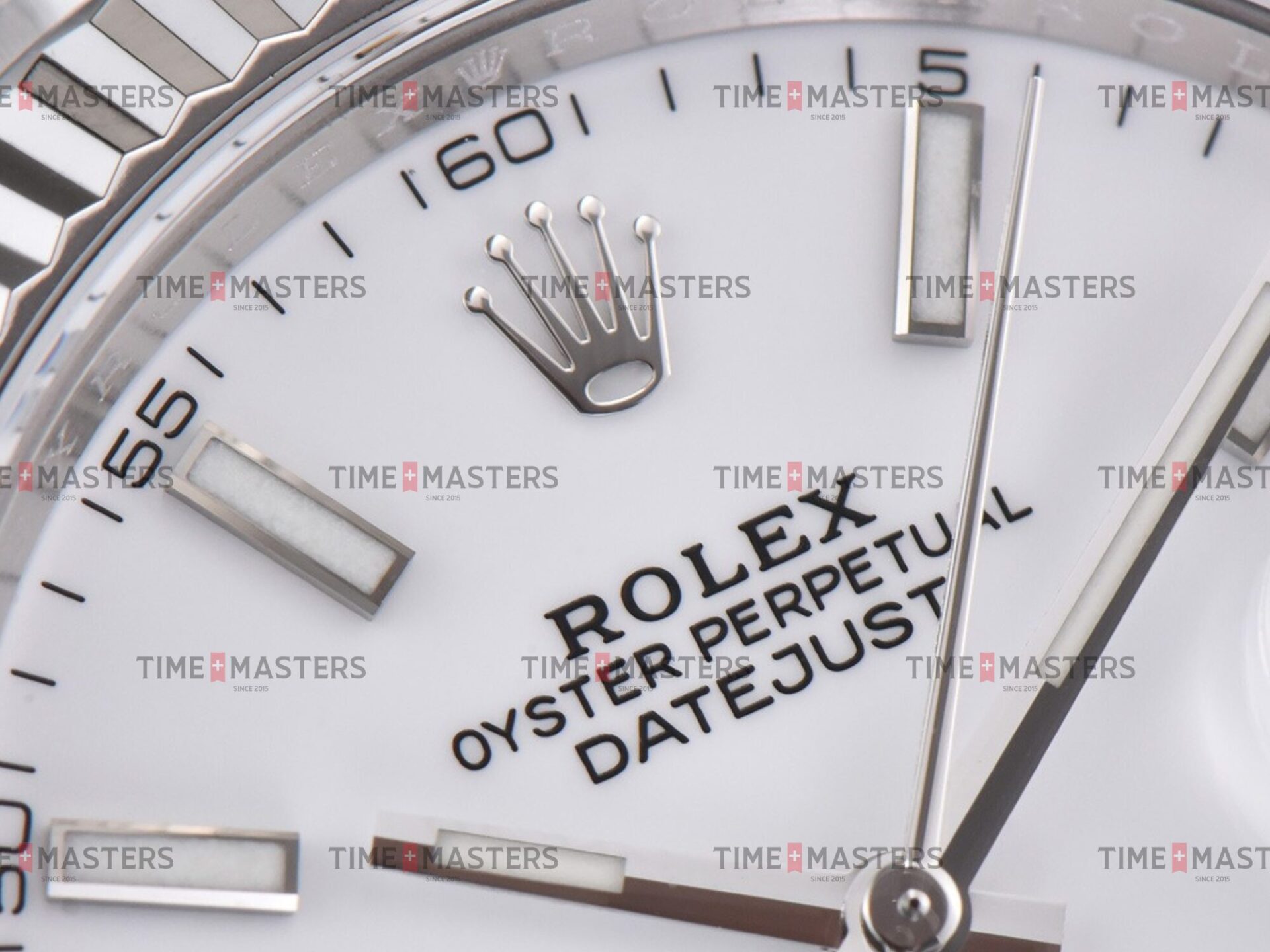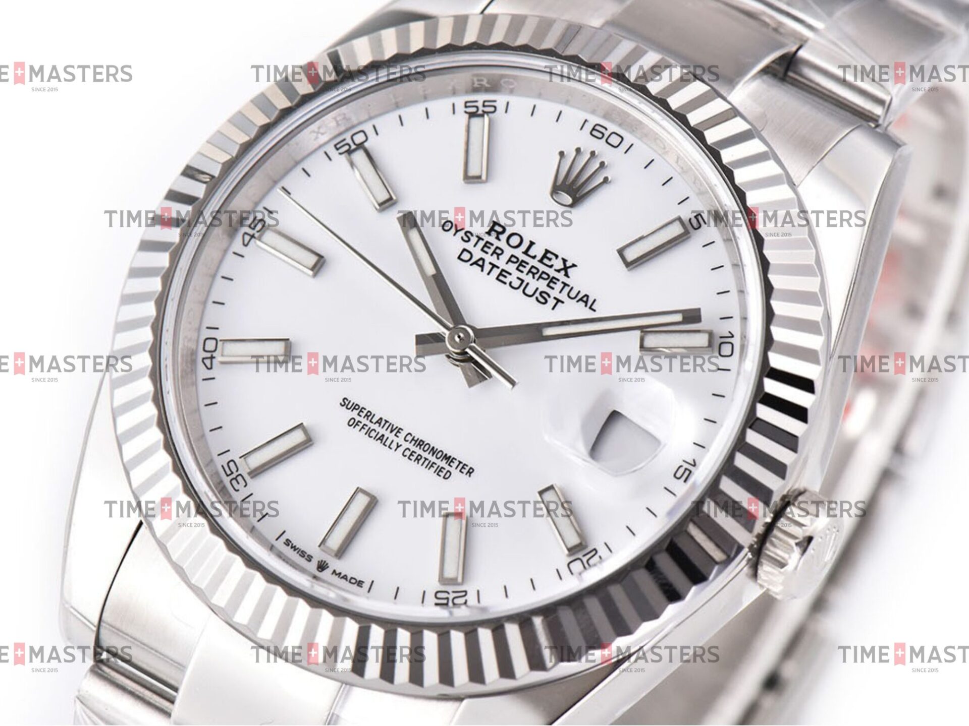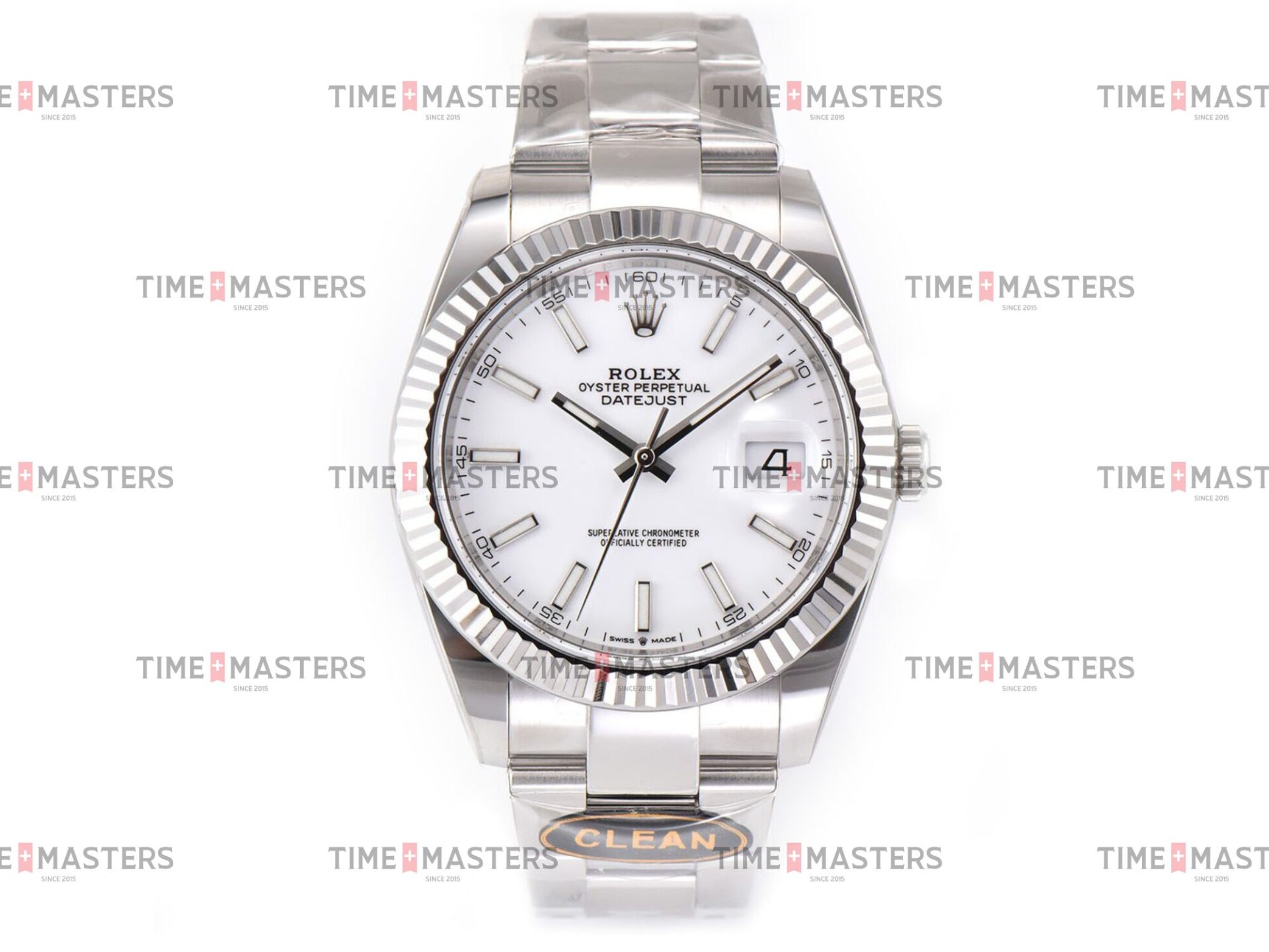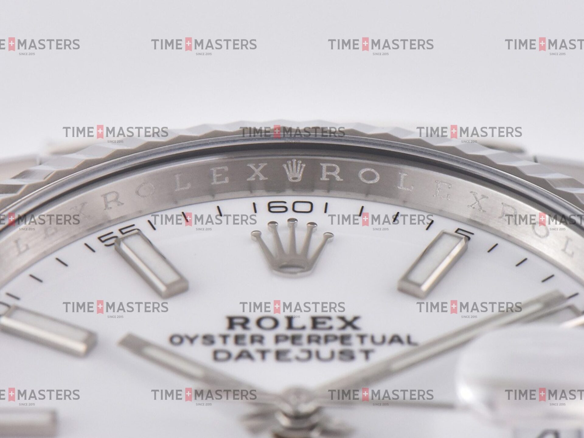 Rolex Datejust – 41 mm – פלדה רצועת אויסטר באזל משונן לוח לבן גימור קצה